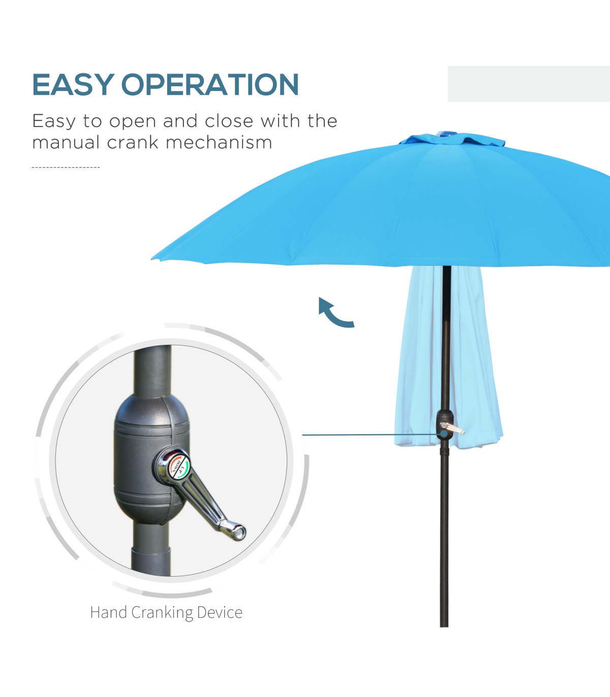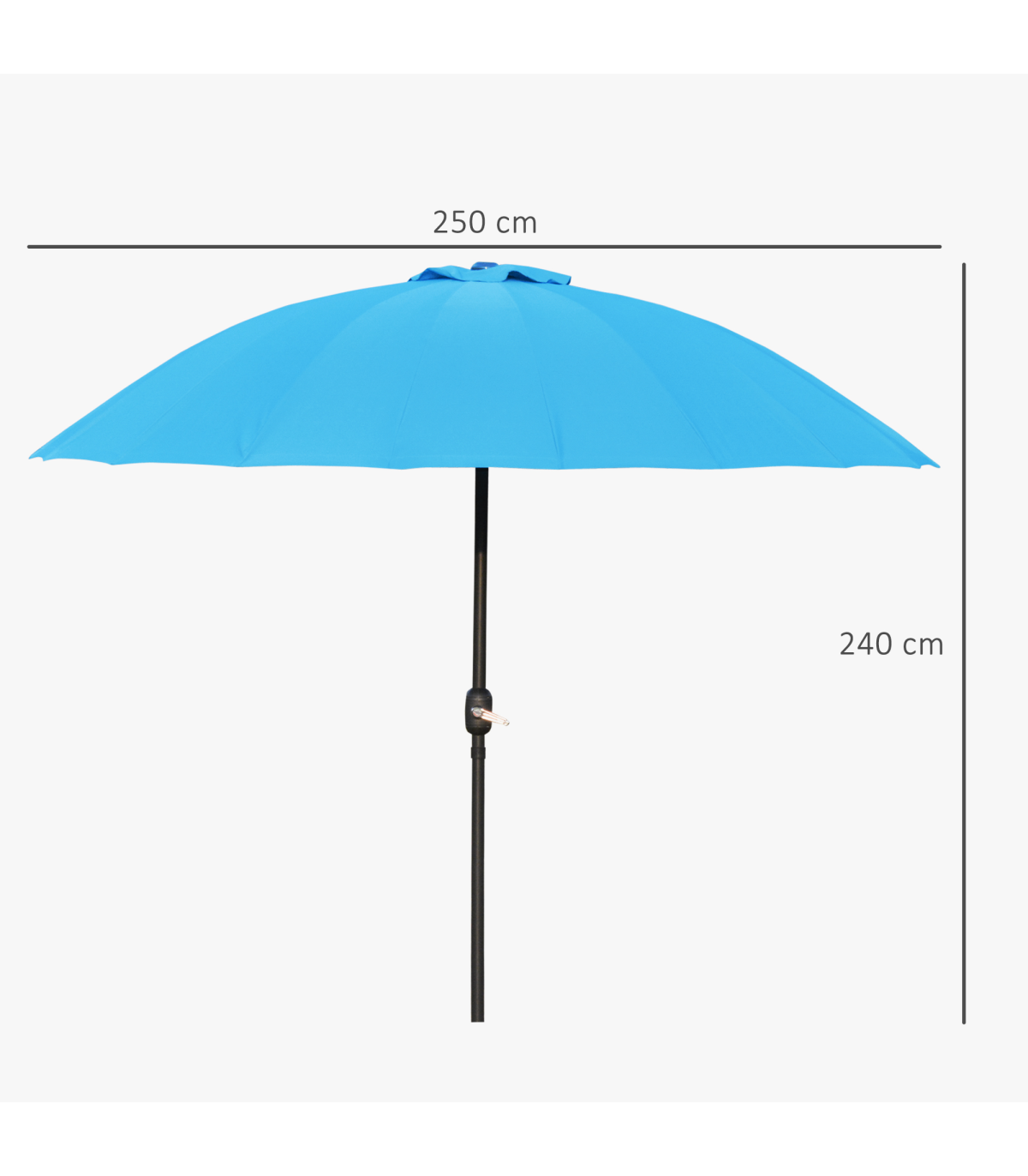 Blue 255cm Patio Parasol with Tilt Crank and 18 Ribs - Metal & Glass Fiber