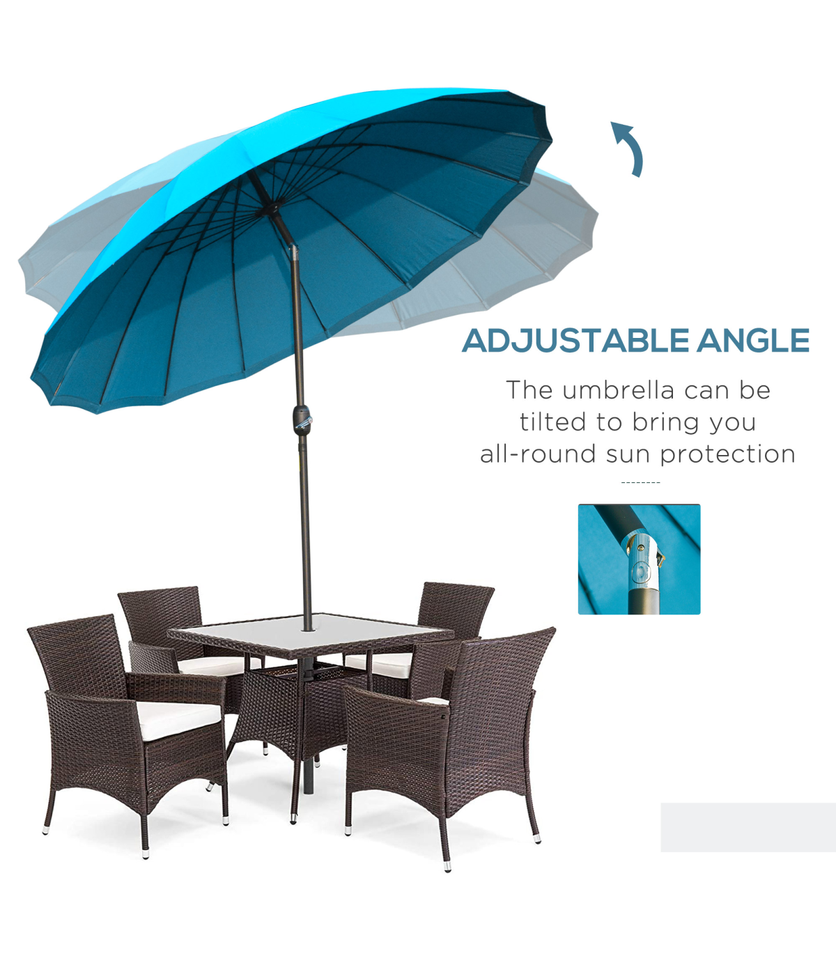 Enhance your outdoor living space with the Outsunny Blue Patio Parasol. This elegant and functional umbrella is perfect for any garden, patio, or terrace, offering adjustable shade to make your sunny days more enjoyable. Crafted from high-quality materials, it ensures optimum resistance and durability. Whether you're looking to add a touch of style or seeking comprehensive sun protection, this parasol is an indispensable addition to your home.