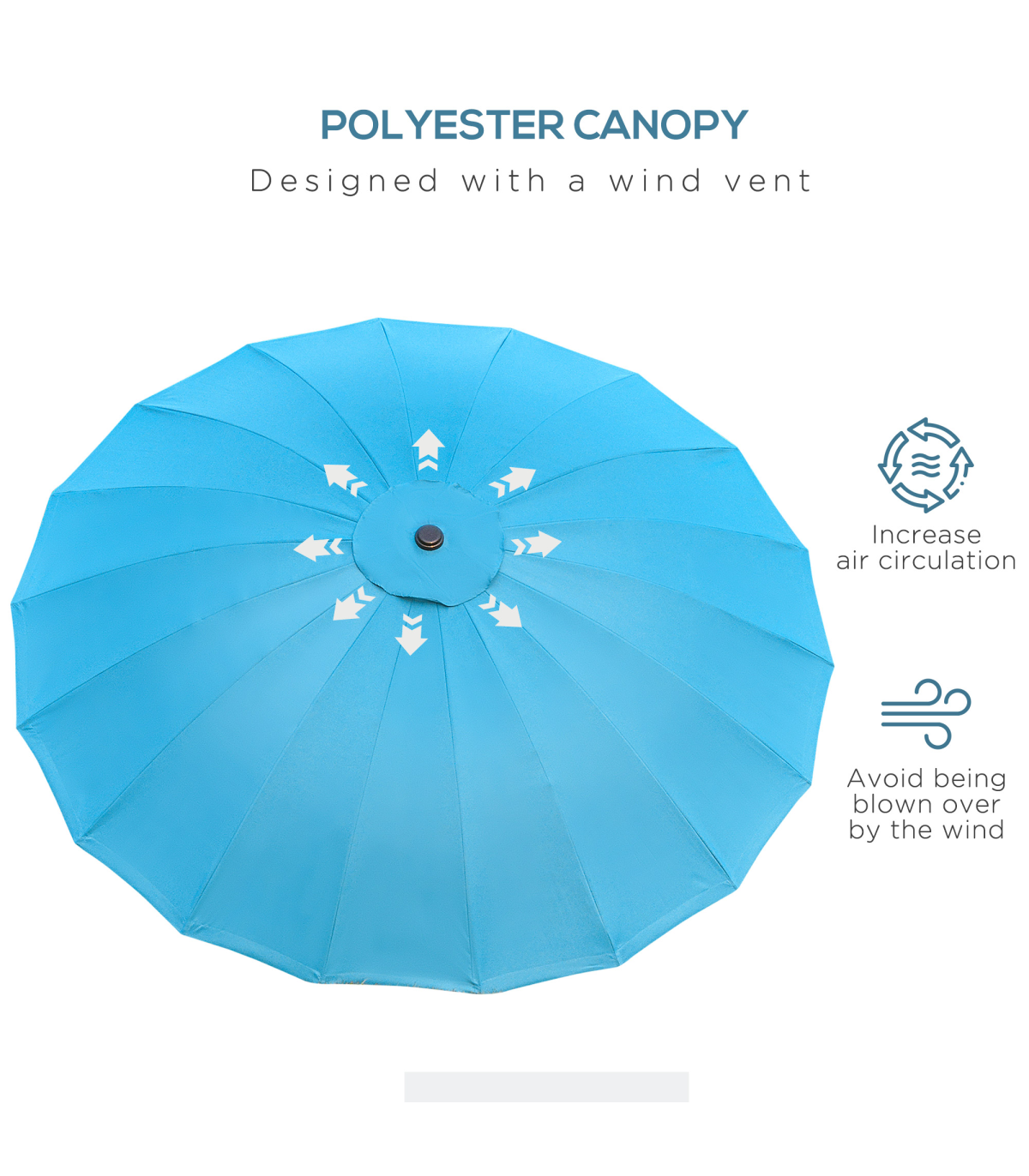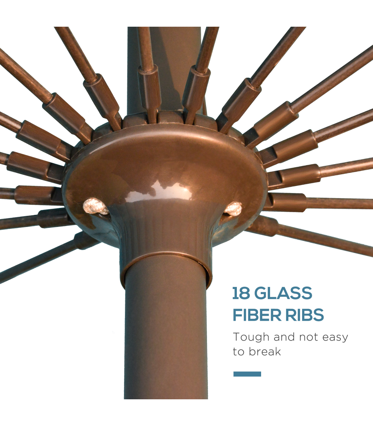- Durable metal pole and 18 glass fiber ribs for robust canopy support