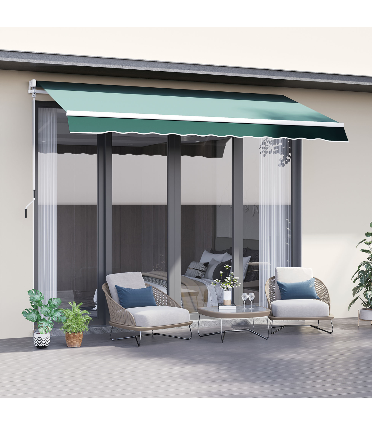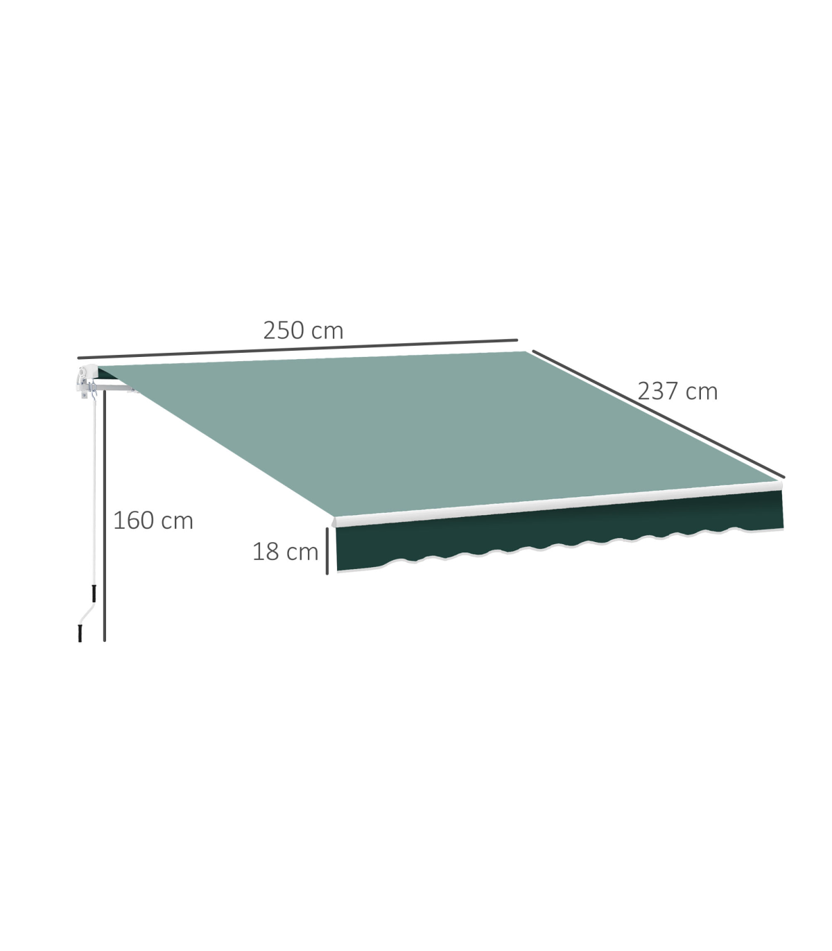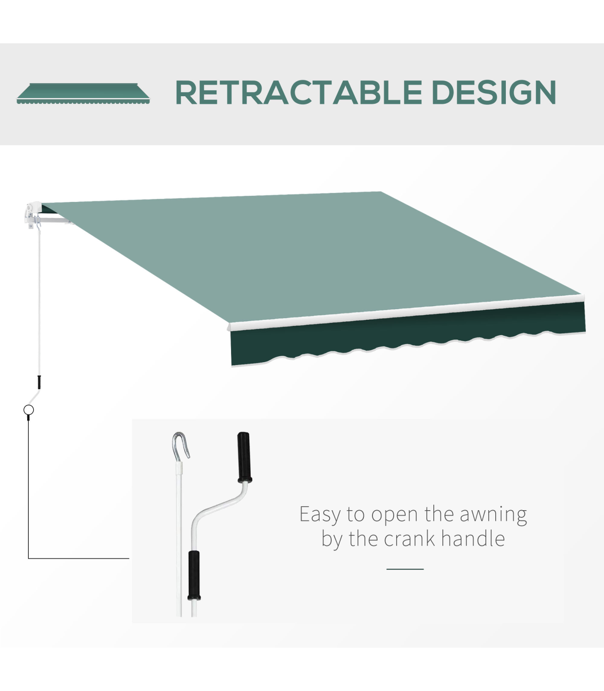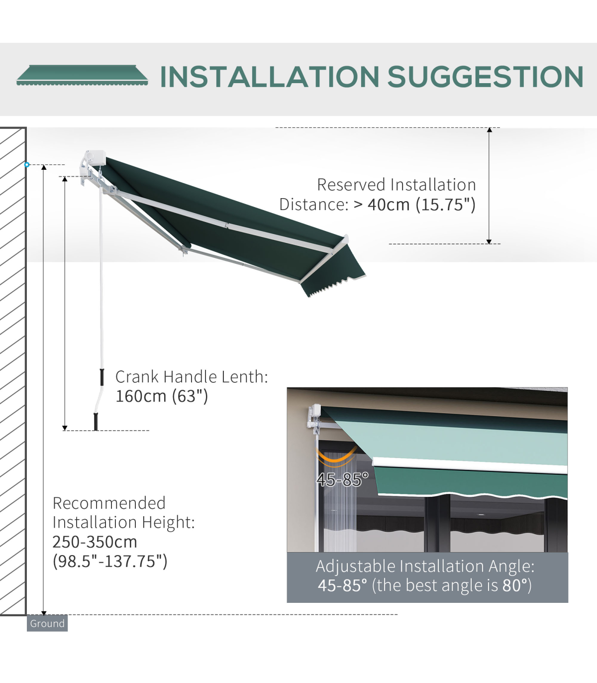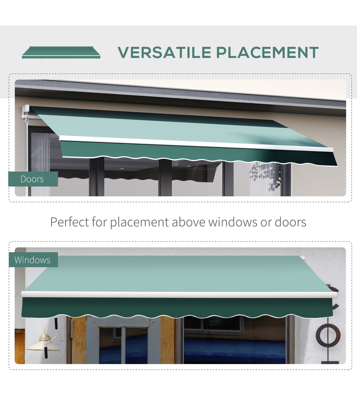 With a sturdy aluminum and steel blend frame, this Outsunny patio awning is ideal for creating shade when needed. The thick 280gsm polyester canopy will protect you from excessive heat and sunlight, keeping you cool and comfortable. Can be easily mounted on the wall with included accessories. Manual operation allows for opening and closing whenever desired - a fuss-free way to extend your time in the summer safely and comfortably.