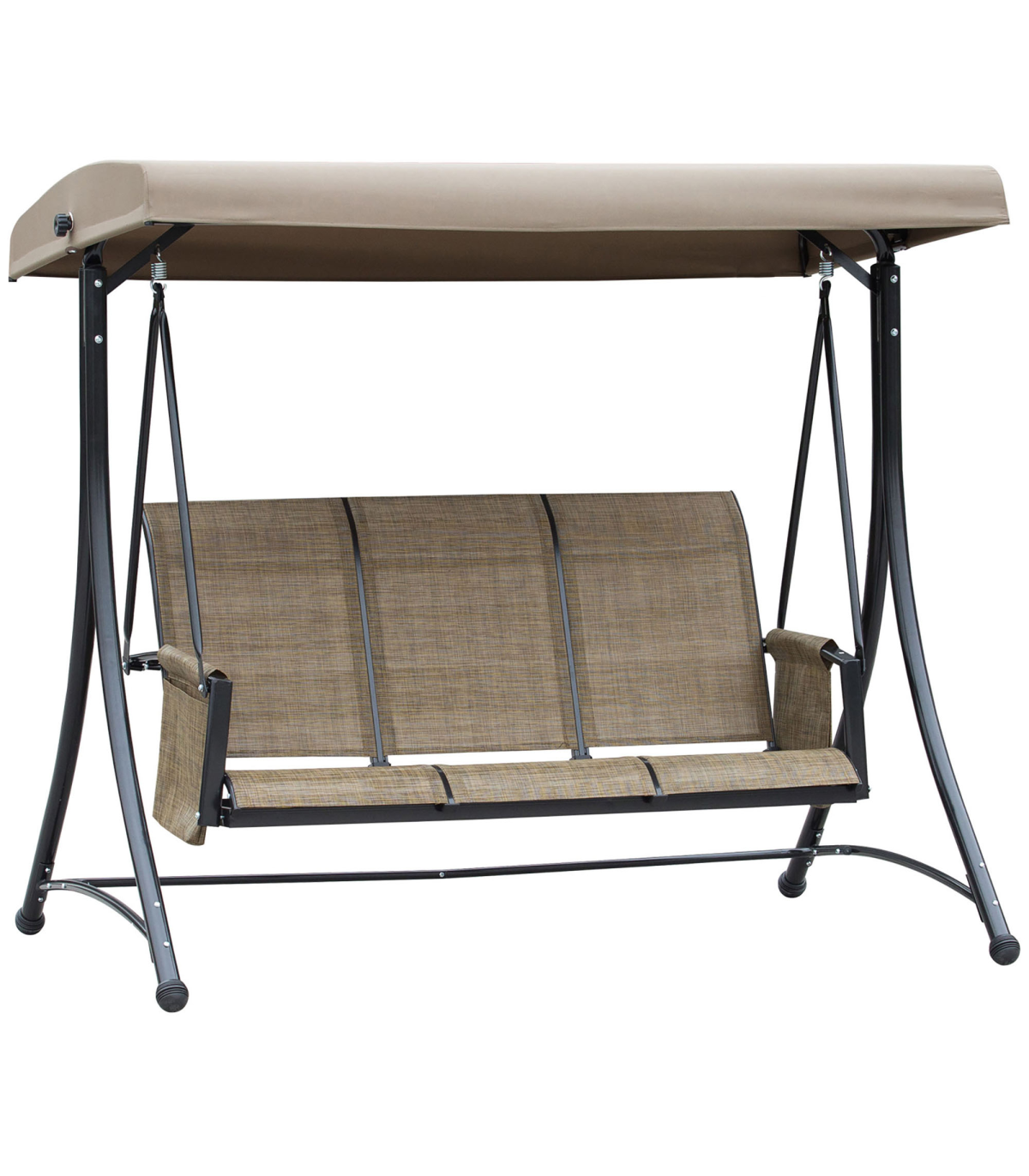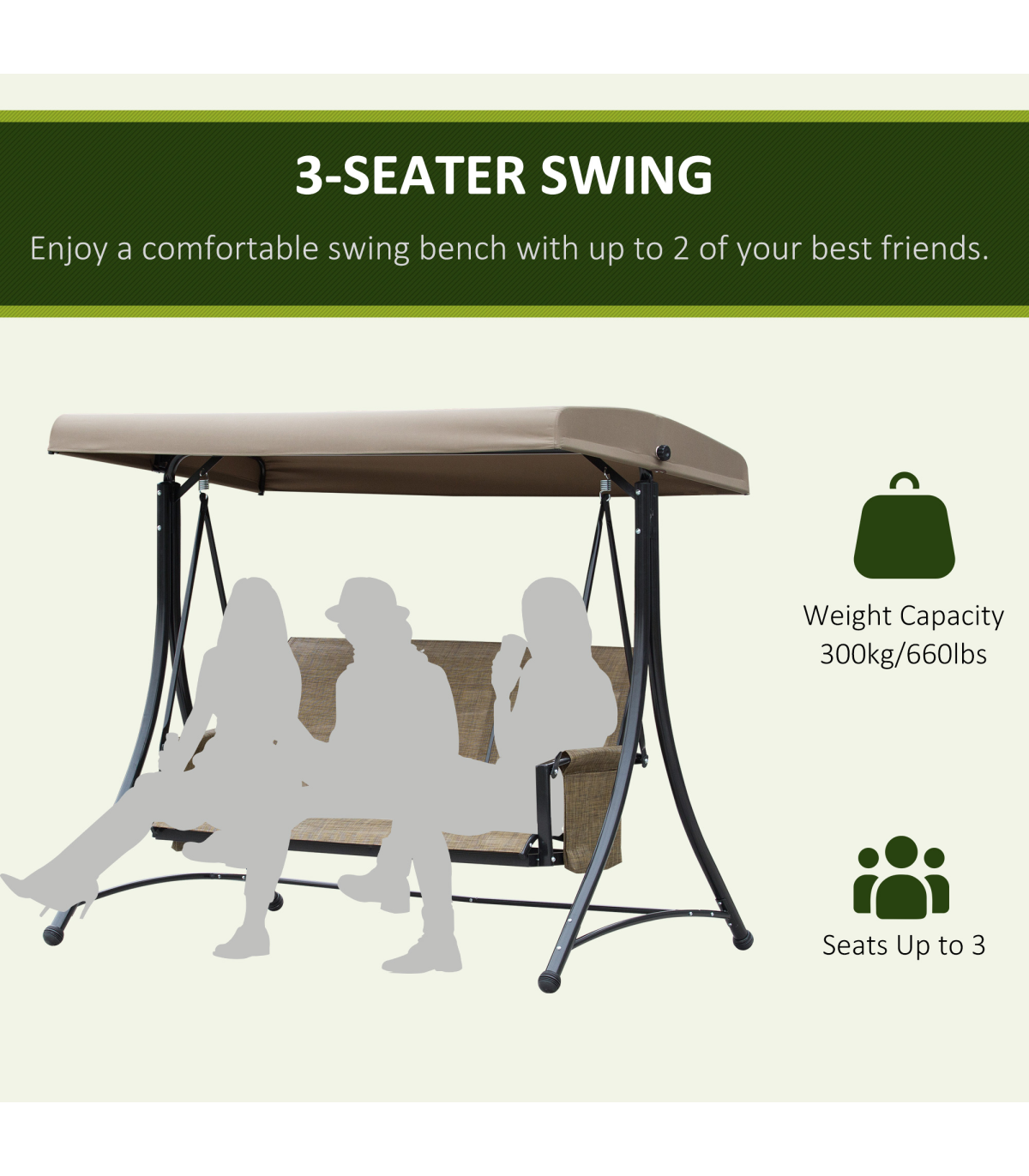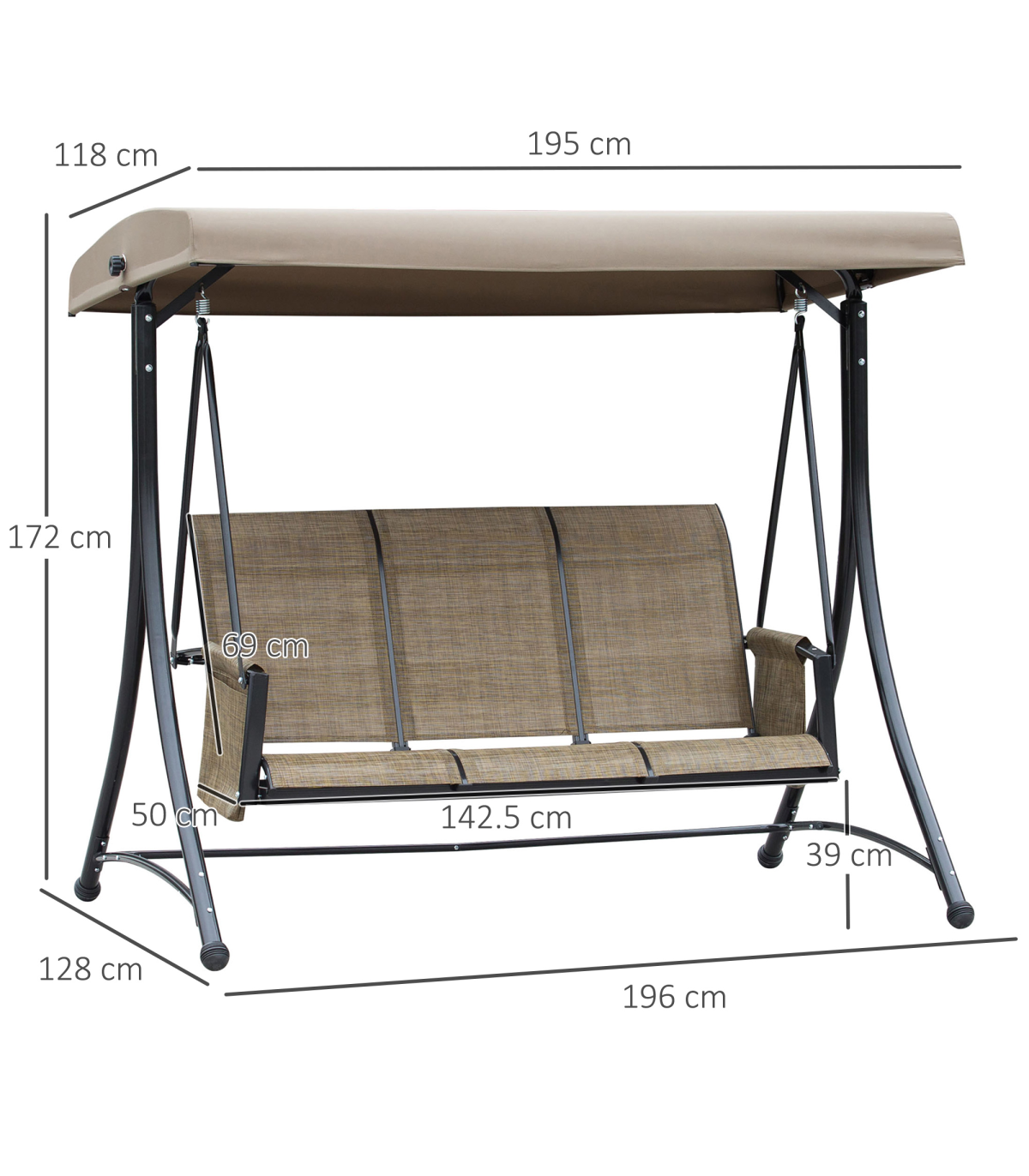 This Outsunny outdoor swing bench is one for the sunny days ahead this season. There's an adjustable canopy on top, keeping you shaded and protected from sun and light weather. Three seats to sit with friends, a metal frame for a strong structure. The 'A' shaped legs keep you balanced and steady. Make your garden complete with this stylish swinging garden chair.