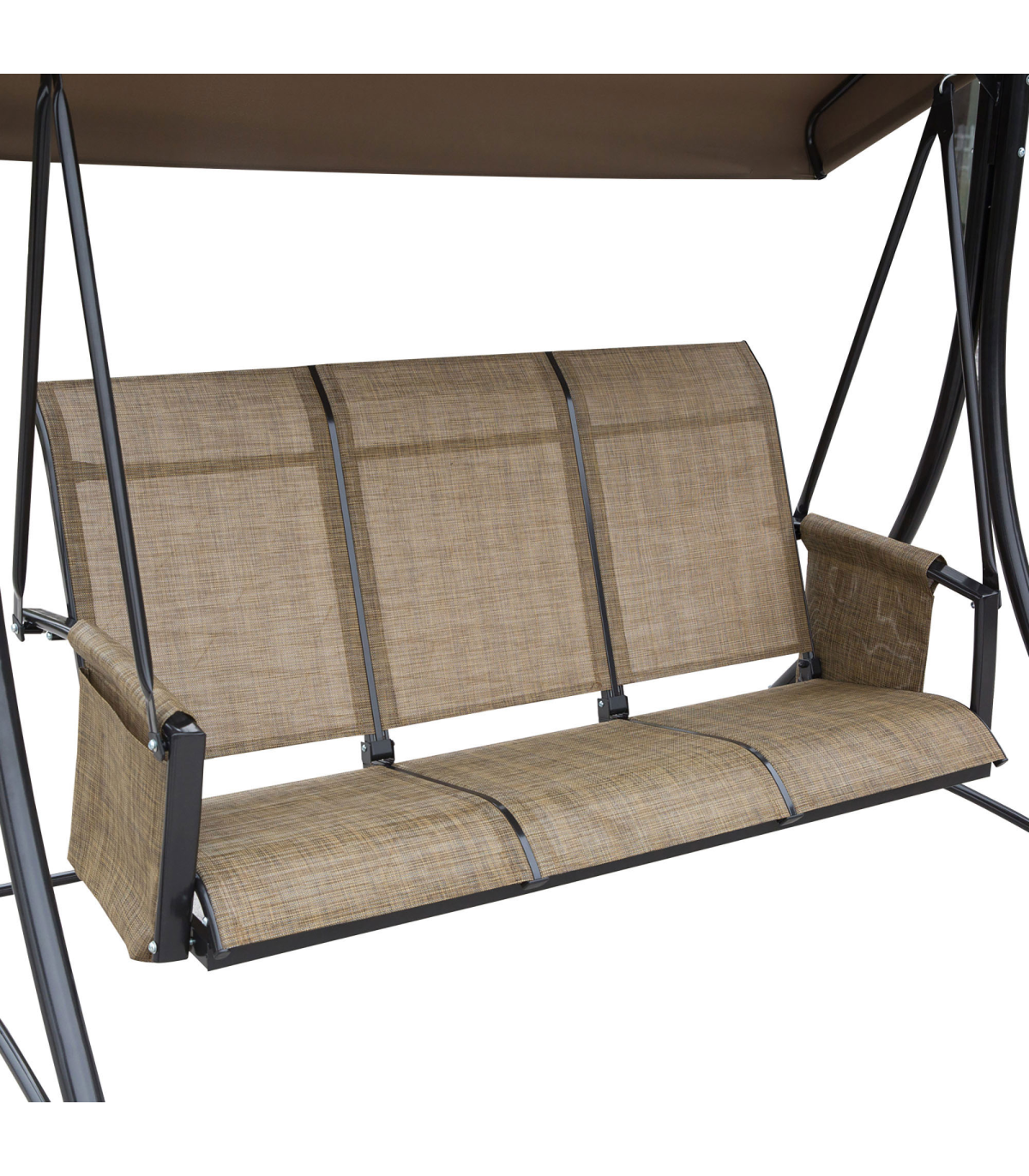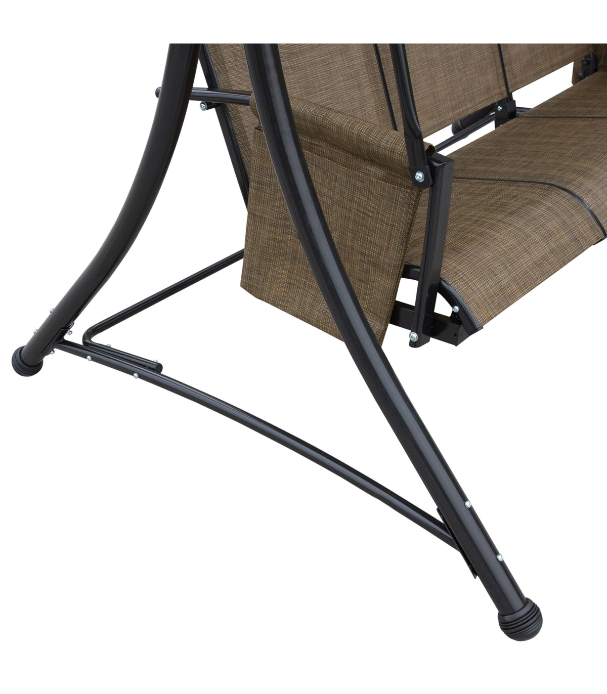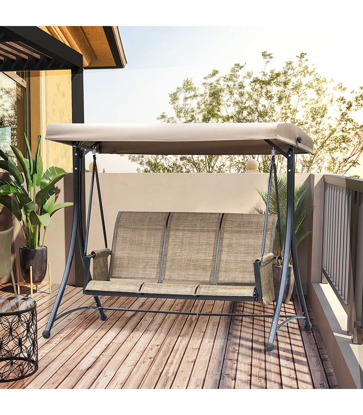 This Outsunny outdoor swing bench is one for the sunny days ahead this season. There's an adjustable canopy on top, keeping you shaded and protected from sun and light weather. Three seats to sit with friends, a metal frame for a strong structure. The 'A' shaped legs keep you balanced and steady. Make your garden complete with this stylish swinging garden chair.