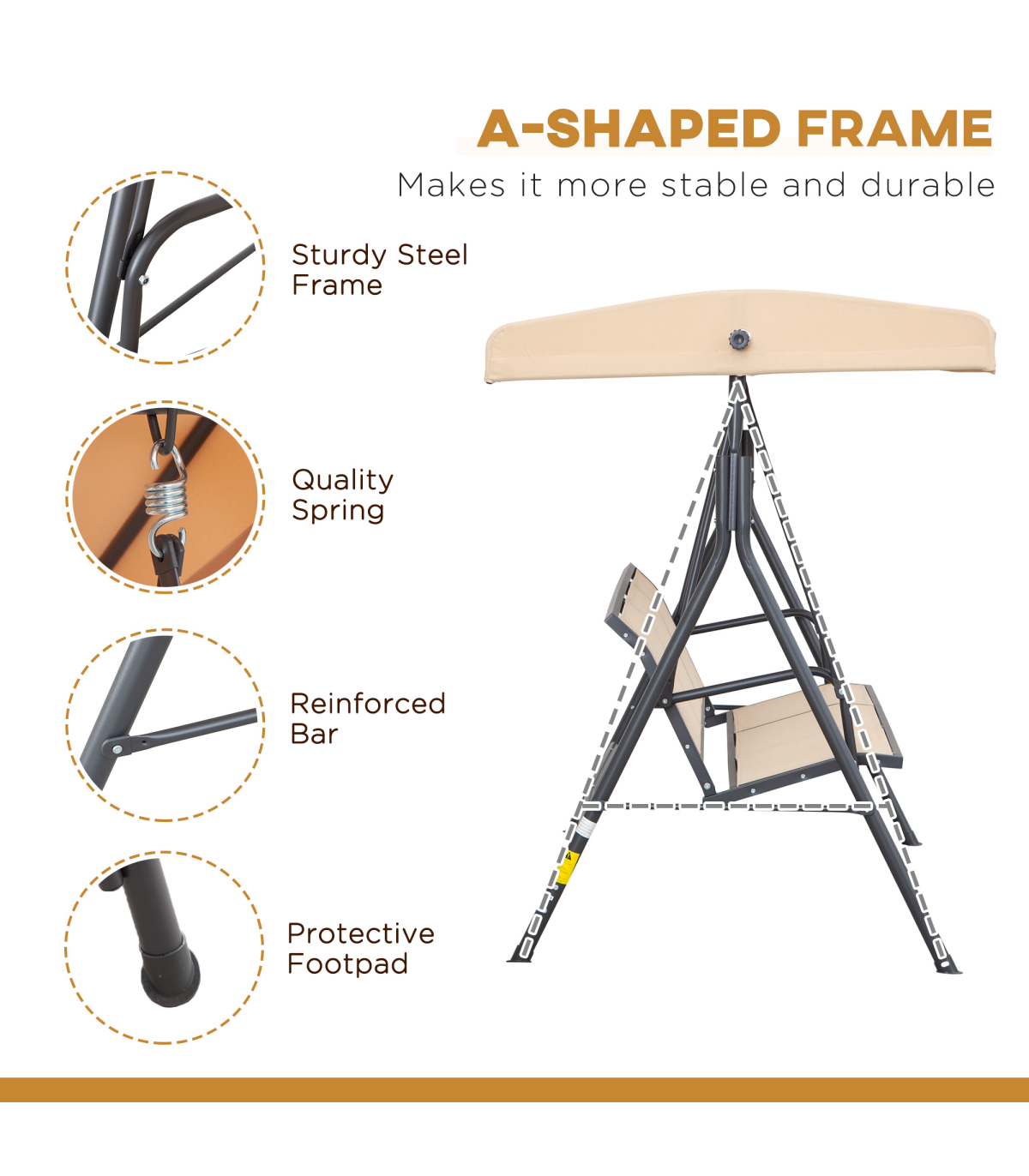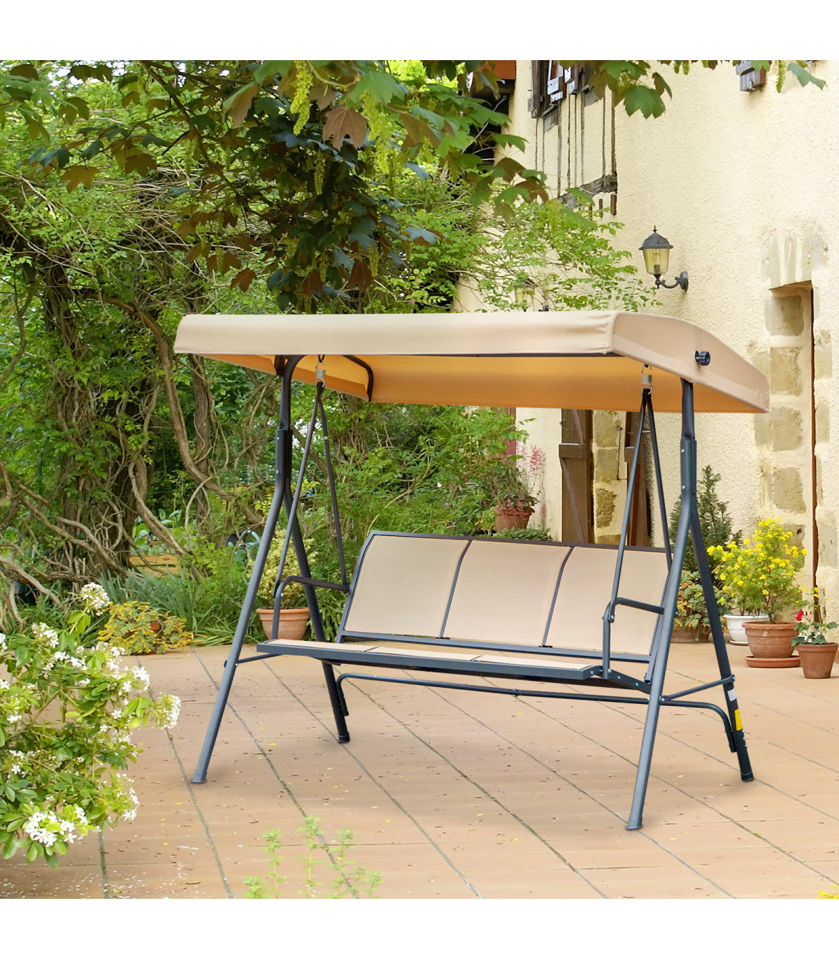 Give yourself a tranquil place to unwind in your garden and outside areas with this swinging garden chair from Outsunny. Seats up to three people, so it's spacious enough to take a break with friends or even catch some time to yourself under the sun. The swinging chair's steel frame is tough and stable, with anti-slip feet to protect the floor beneath. Complete with a weather-resistant canopy to protect you from the elements - keeping you cool and dry as you relax.