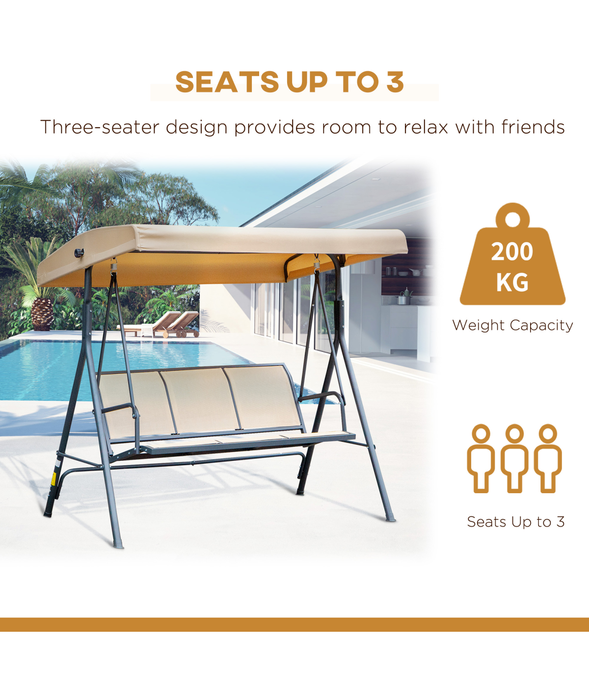 - Three seat design - perfect for relaxing with friends or yourself