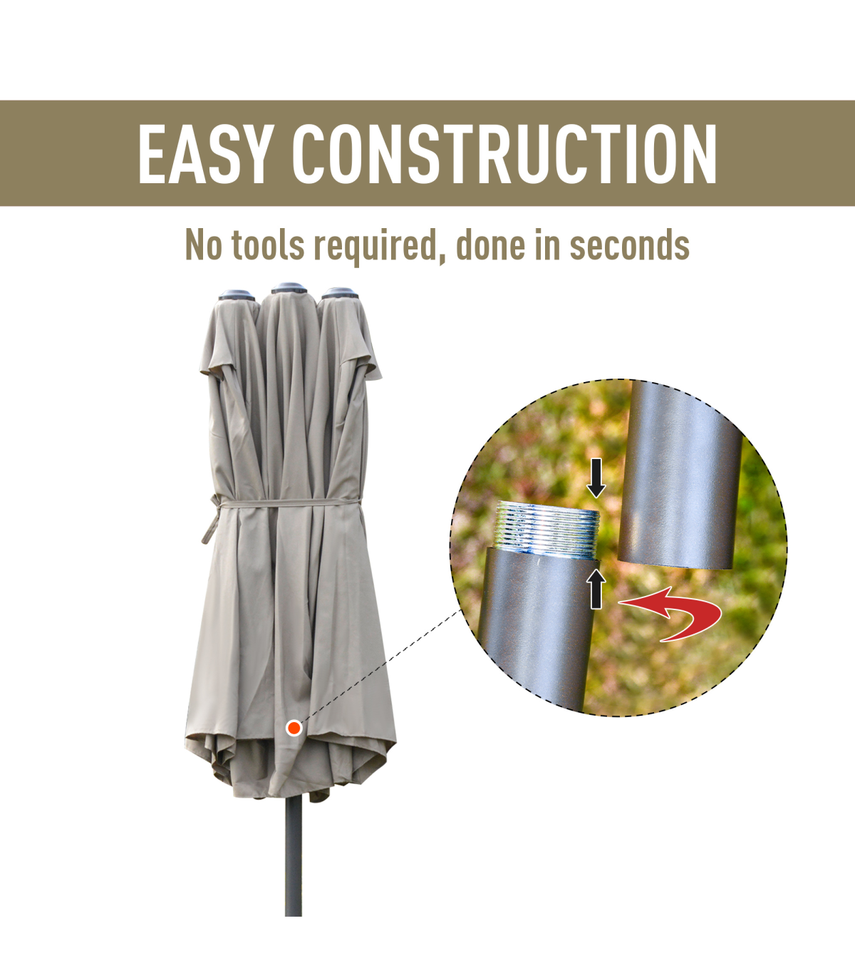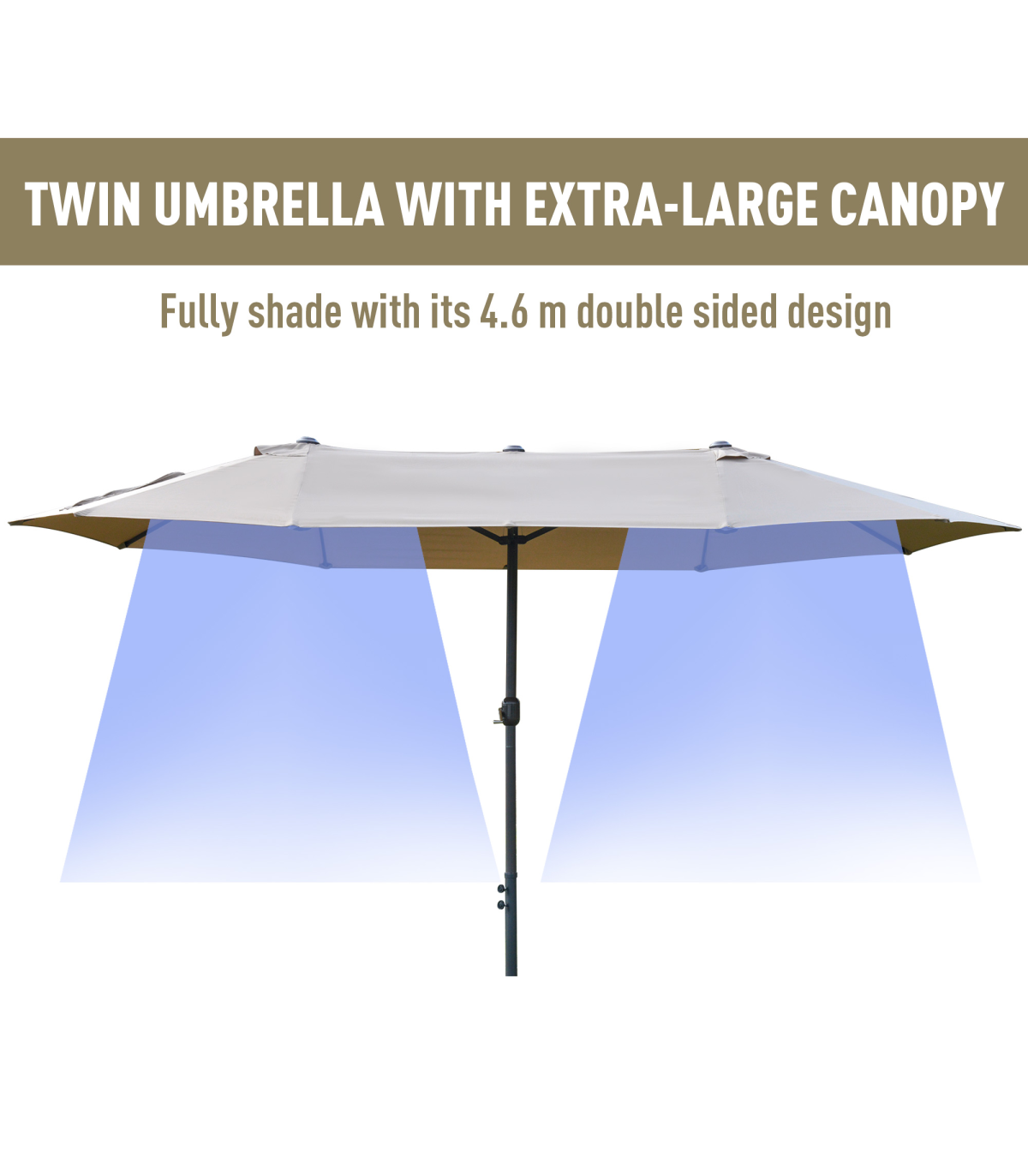 - Expansive double canopy design, covering a 4.6M diameter area for ample shade