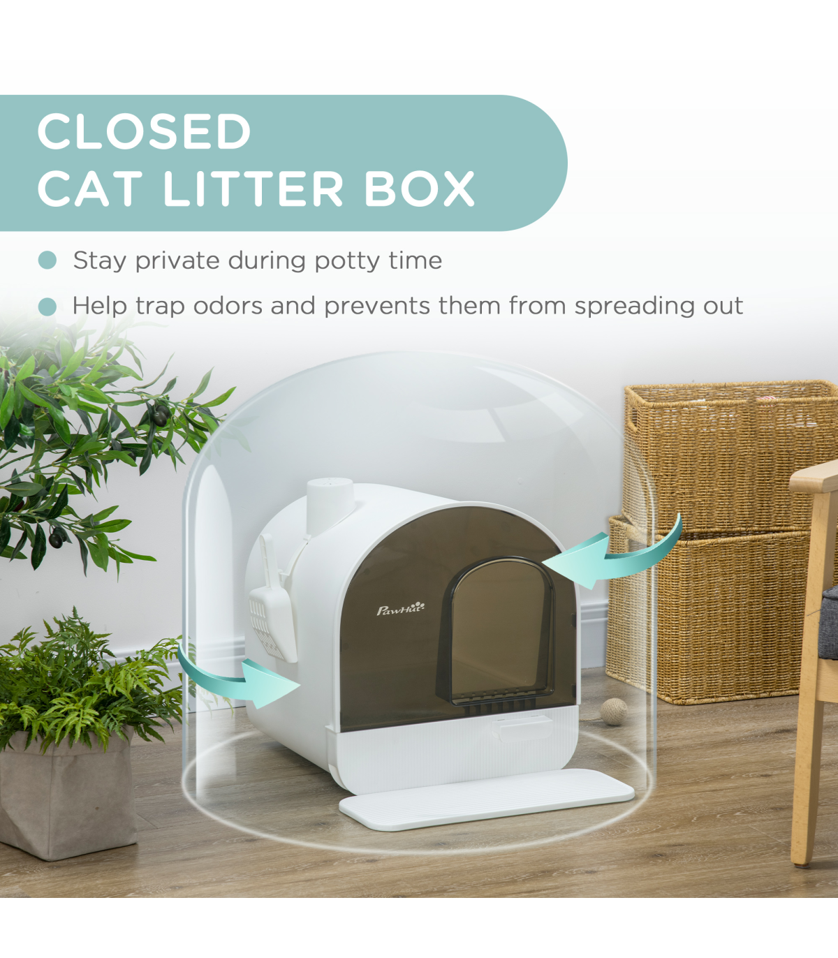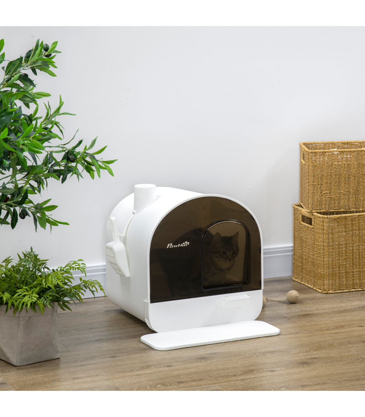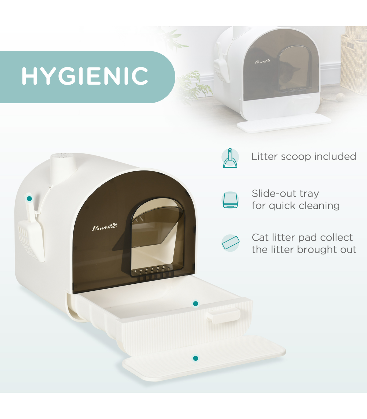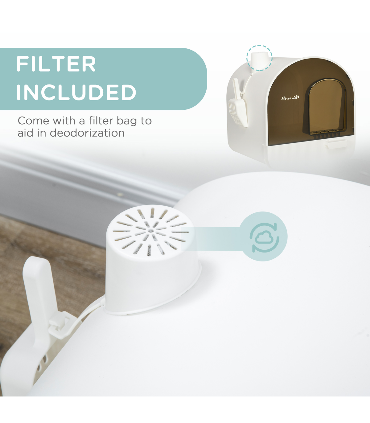 Hooded Cat Litter Tray Kitten Toilet w/ Scoop, Filter, Flap Door 43 x 44 x 47cm
