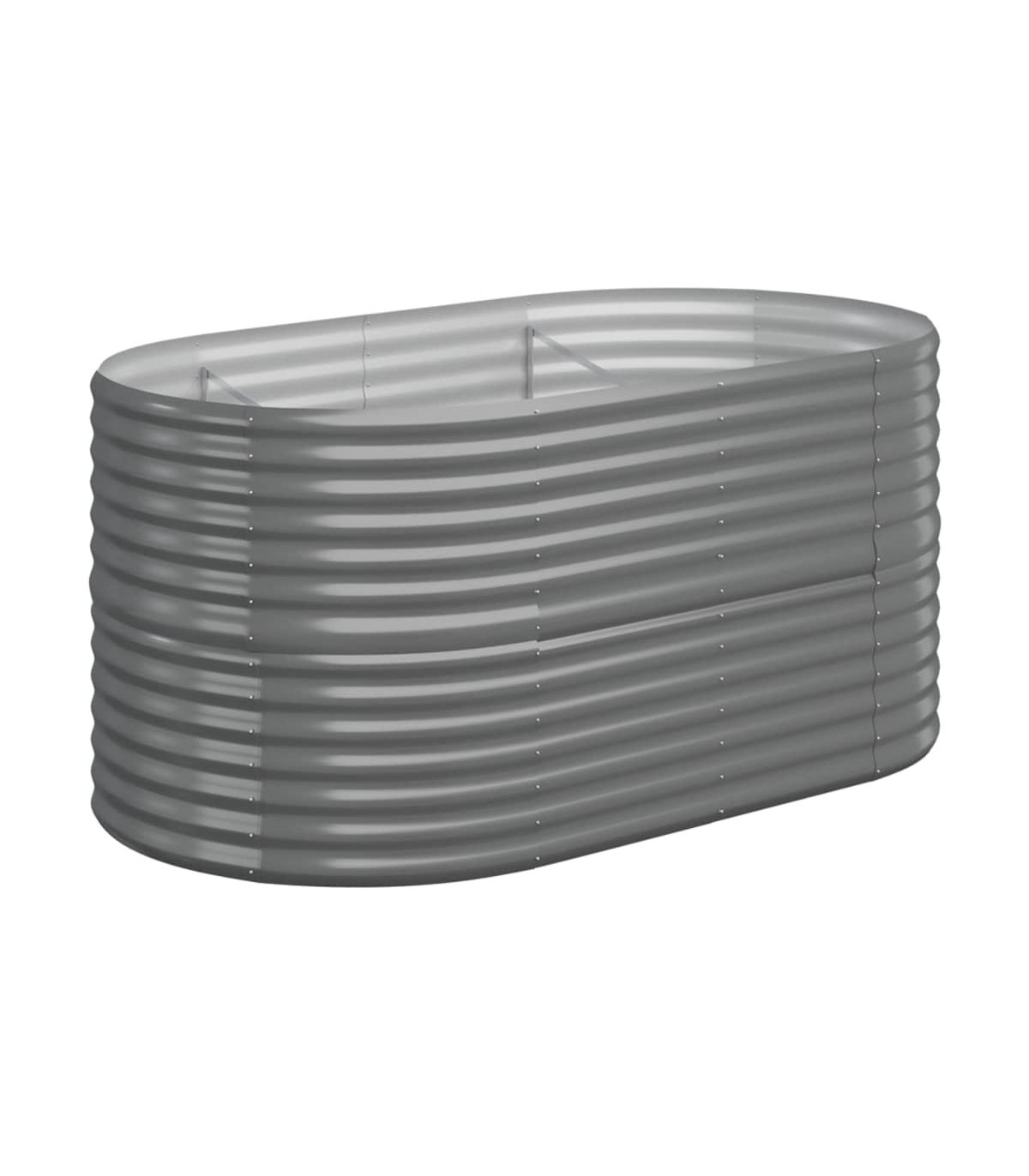 This grey steel garden planter in an oval shape is the perfect choice for DIY enthusiasts looking to enhance their gardens, balconies, or patios. The sturdy frame, made of powder-coated steel and equipped with interior support brackets, ensures durability and stability. The premium material is rust and corrosion-resistant, making it ideal for outdoor use. With ample space, this planter can hold a large amount of soil, providing plenty of room for your plants, vegetables, herbs, and flowers.