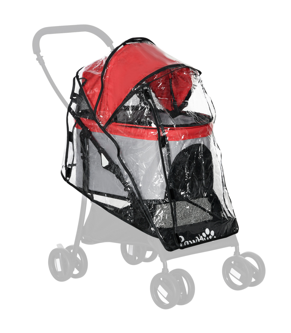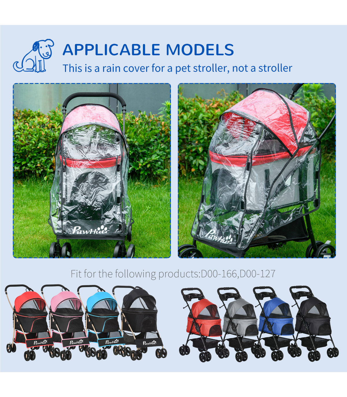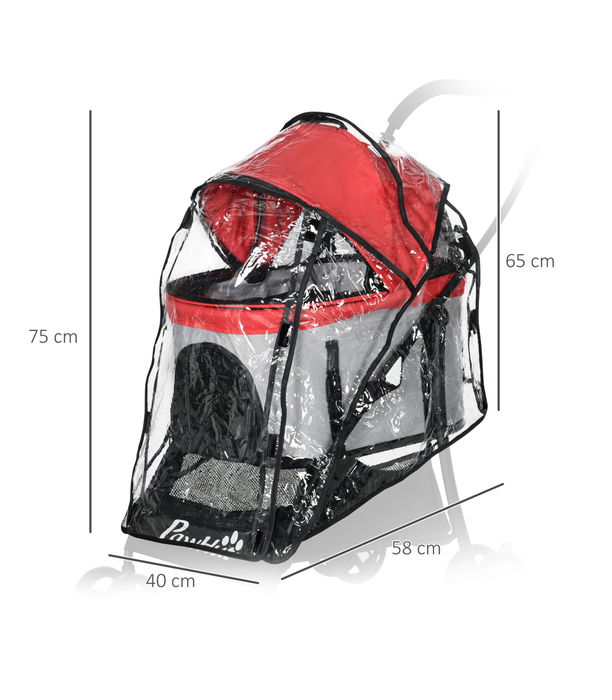 Dimensions: Unfolded: 75/65H x 58L x 40Wcm. Suitable pet strollers' item labels: D00-166V00RD, D00-166V00PK, D00-166V00BK, D00-166V01YL, D00-127BU, D00-127GY and D00-127RD. NOTE: This is the rain cover only! The pet stroller is not included.