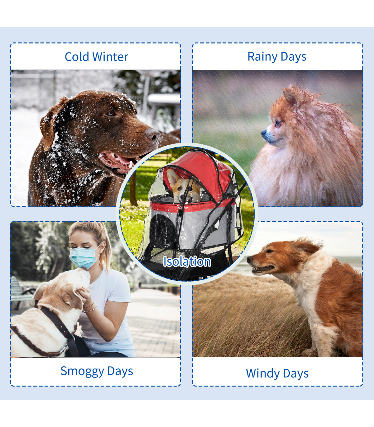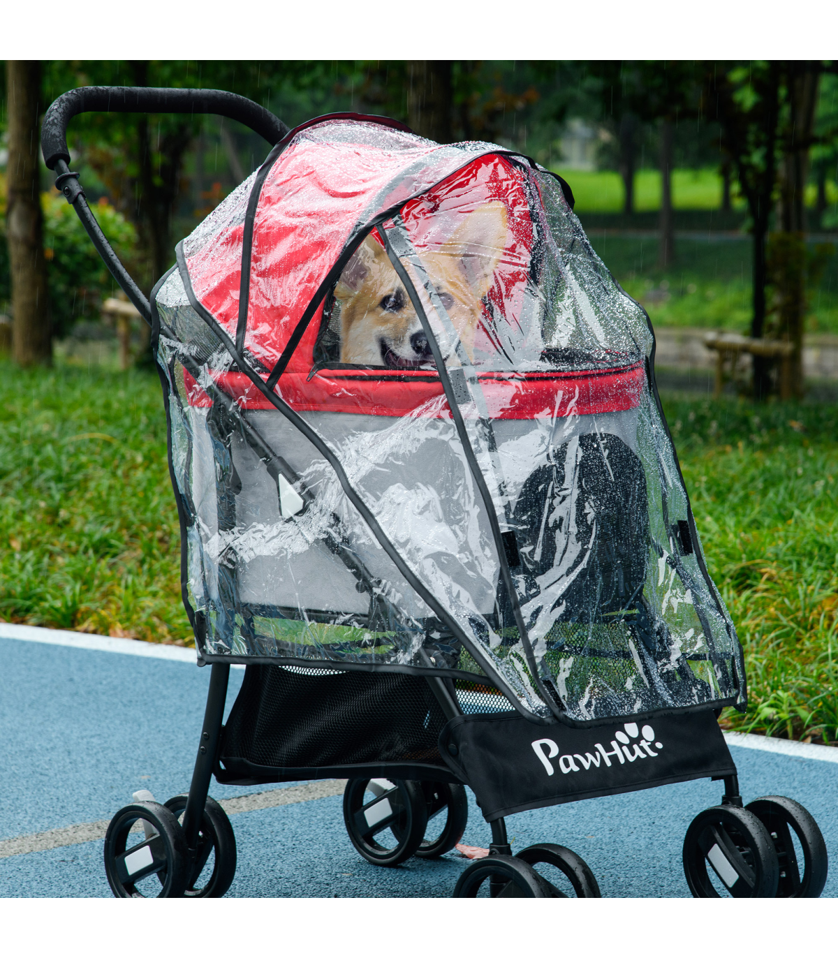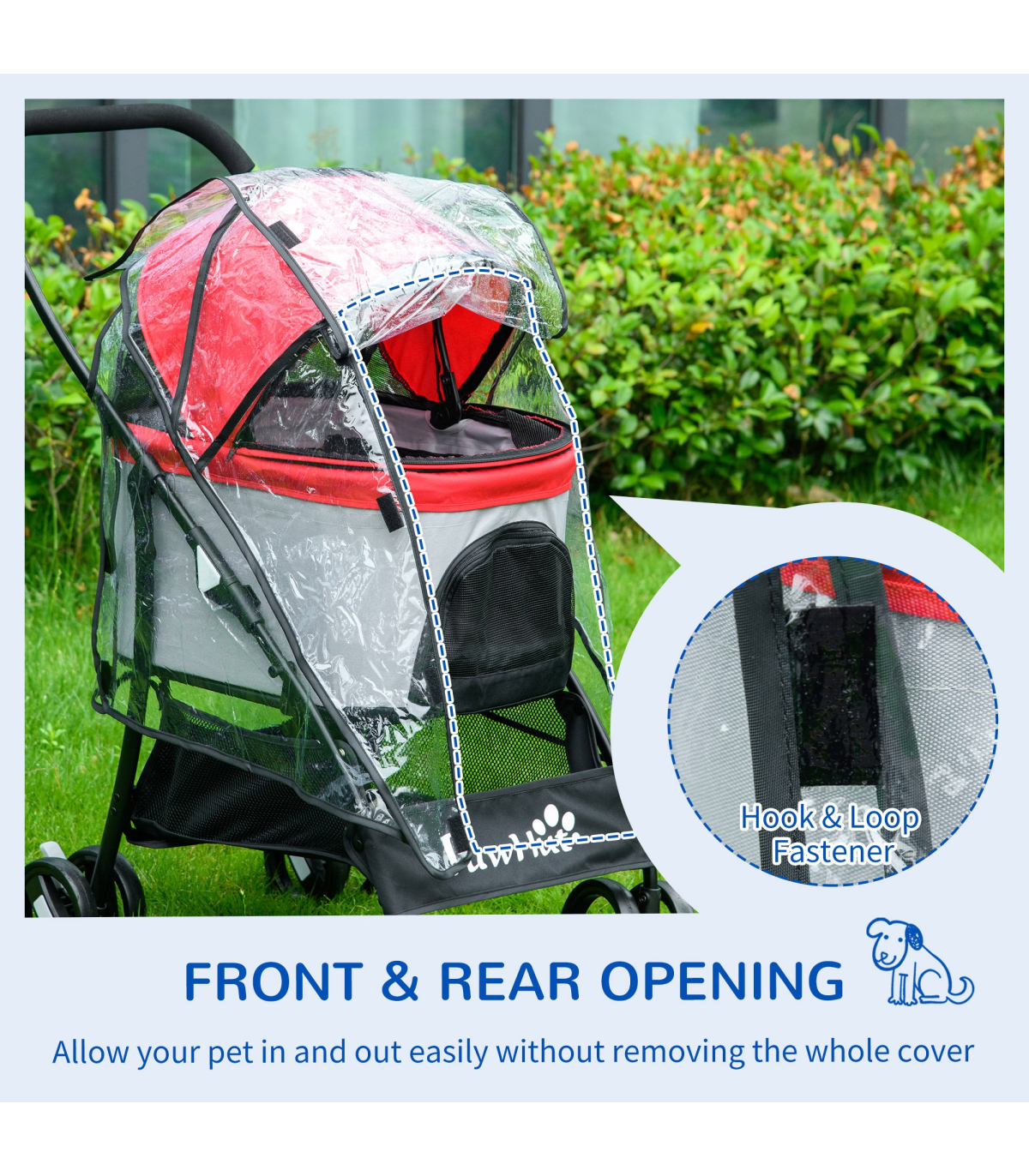 Dimensions: Unfolded: 75/65H x 58L x 40Wcm. Suitable pet strollers' item labels: D00-166V00RD, D00-166V00PK, D00-166V00BK, D00-166V01YL, D00-127BU, D00-127GY and D00-127RD. NOTE: This is the rain cover only! The pet stroller is not included.