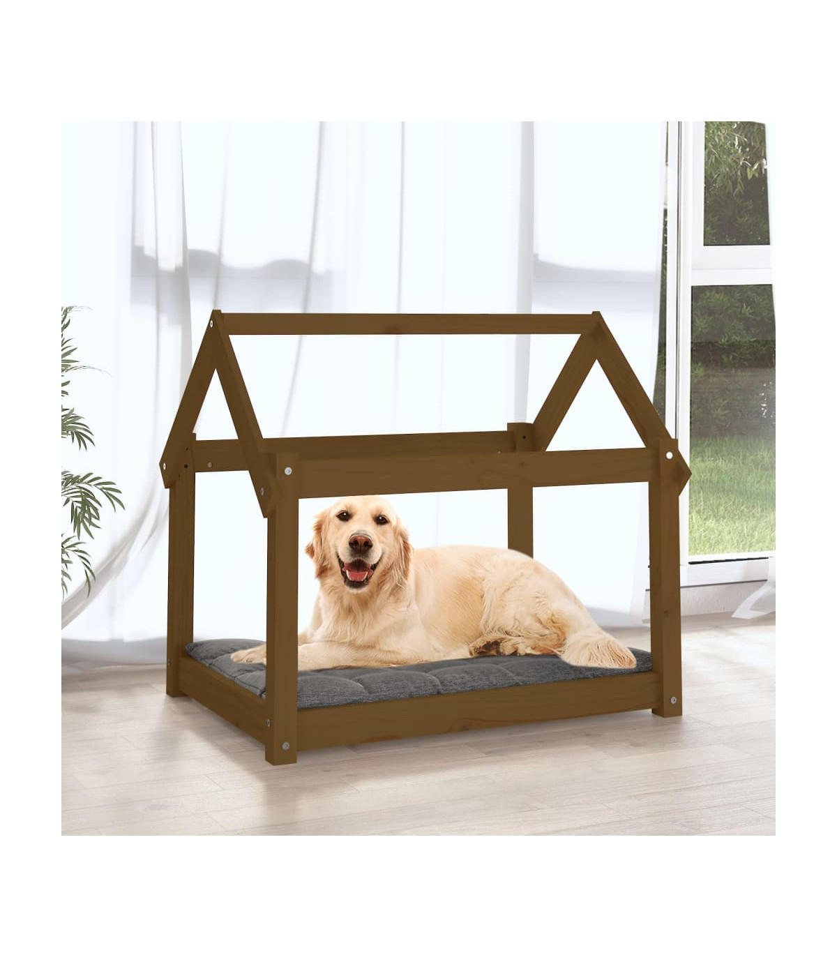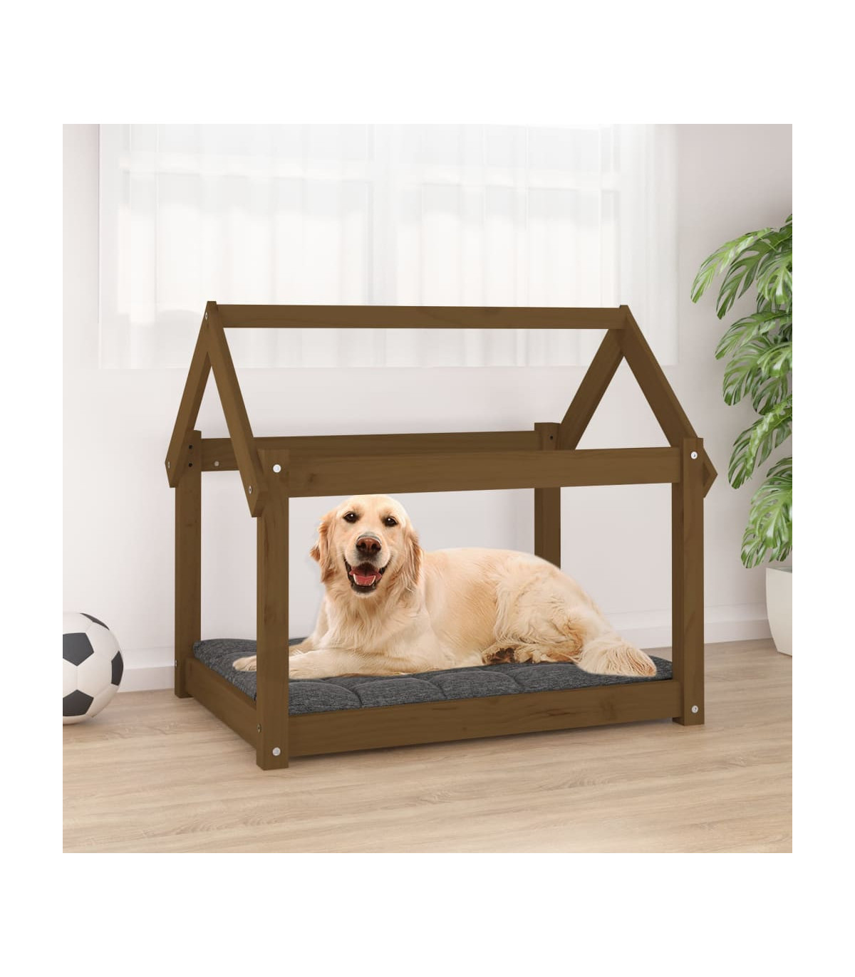 Introducing our Honey Brown Solid Pine Wood Dog Bed, a perfect blend of comfort, durability, and style for your furry friend. Crafted from high-quality, untreated solid pinewood, this dog bed boasts a natural beauty with its straight grain and signature rustic knots. The stable frame provides sturdiness and stability, ensuring a safe and cozy resting place for your dog. Its practical design is not only comfortable but also adds a touch of minimalist elegance to your living space. Assembly is a breeze with the included manual, making it easy to set up your pet's new favorite spot. Give your dog the gift of comfort and style with this exquisite honey brown dog bed.
