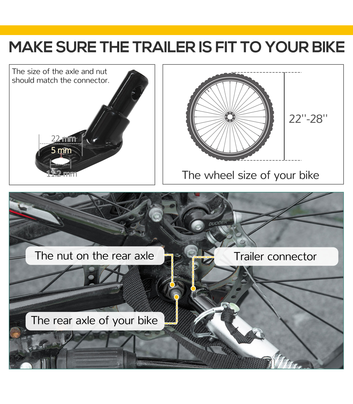 Because your safety comes first, the triple visibility details on this bike trailer from HOMCOM alert those around you from multiple directions. A red flag, a reflector and reflective strips on the wheels keep you protected and secure throughout the trip, eliminating danger in low lighting. Large but foldable for smaller storage and lightweight but tough with steel, this trailer keeps a balance between size and weight, offering a feel-good ride that's smooth with shock absorption.