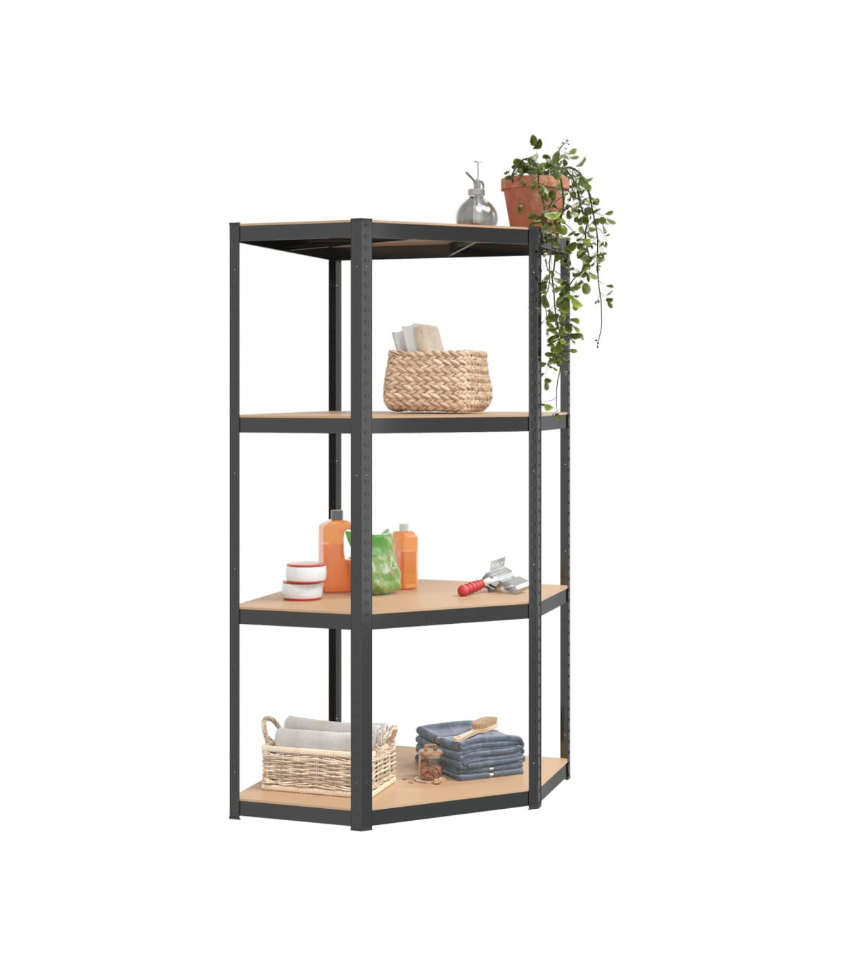 Anthracite 4-Layer Corner Shelf - Steel & Engineered Wood