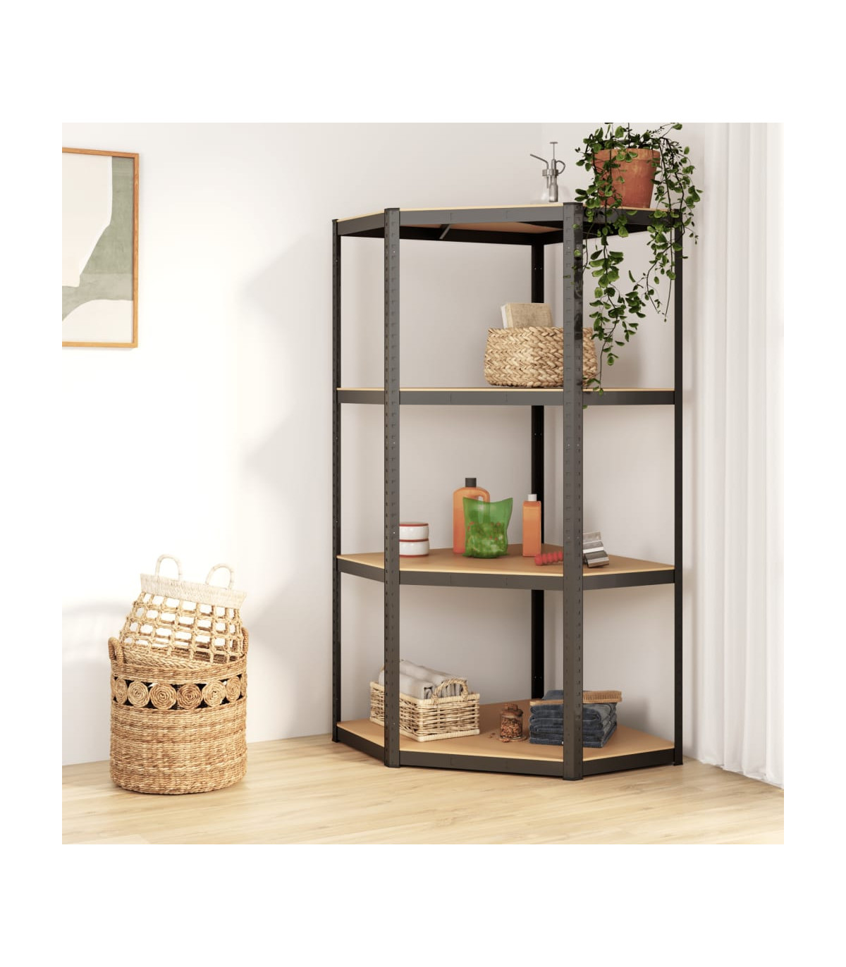 - 4-layer shelving unit for efficient corner storage