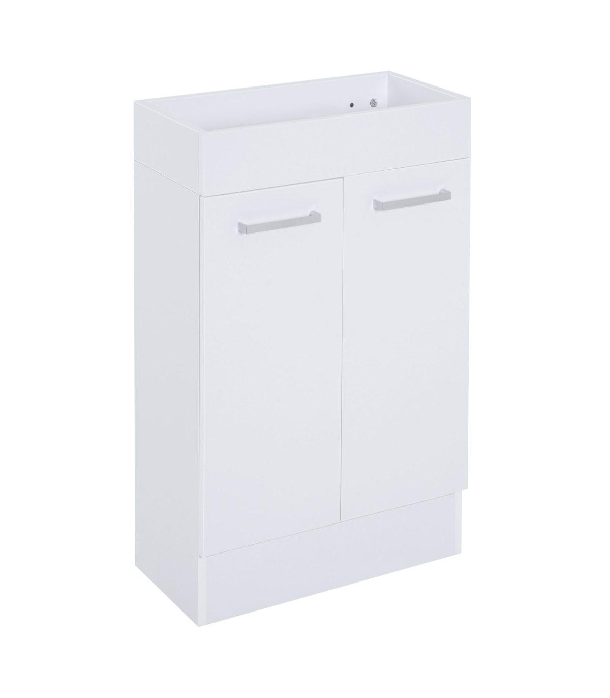 Enhance your bathroom's functionality and style with our White Bathroom Vanity Unit. This compact unit is designed to fit snugly under your sink, making it ideal for small spaces. The vanity comes equipped with a high-quality ceramic sink, ready to accommodate a standard-sized faucet (faucet, drainpipe, and other accessories not included). Below the sink, two doors open to reveal ample storage space for your toiletries and bathroom products, helping you keep your space tidy and organized. The doors feature a soft closing mechanism and are adorned with a sleek zinc alloy handle, adding a touch of elegance to your bathroom. Crafted from durable MDF, this vanity unit is built to withstand the humid environment of your bathroom while maintaining its stylish appearance.