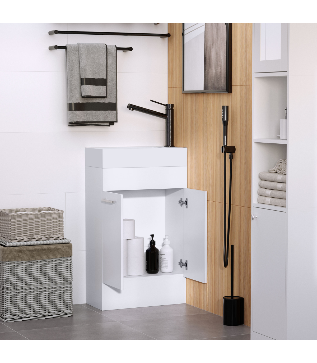 - Space-saving design perfect for small bathrooms and kitchens