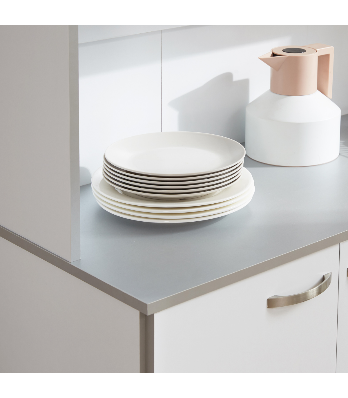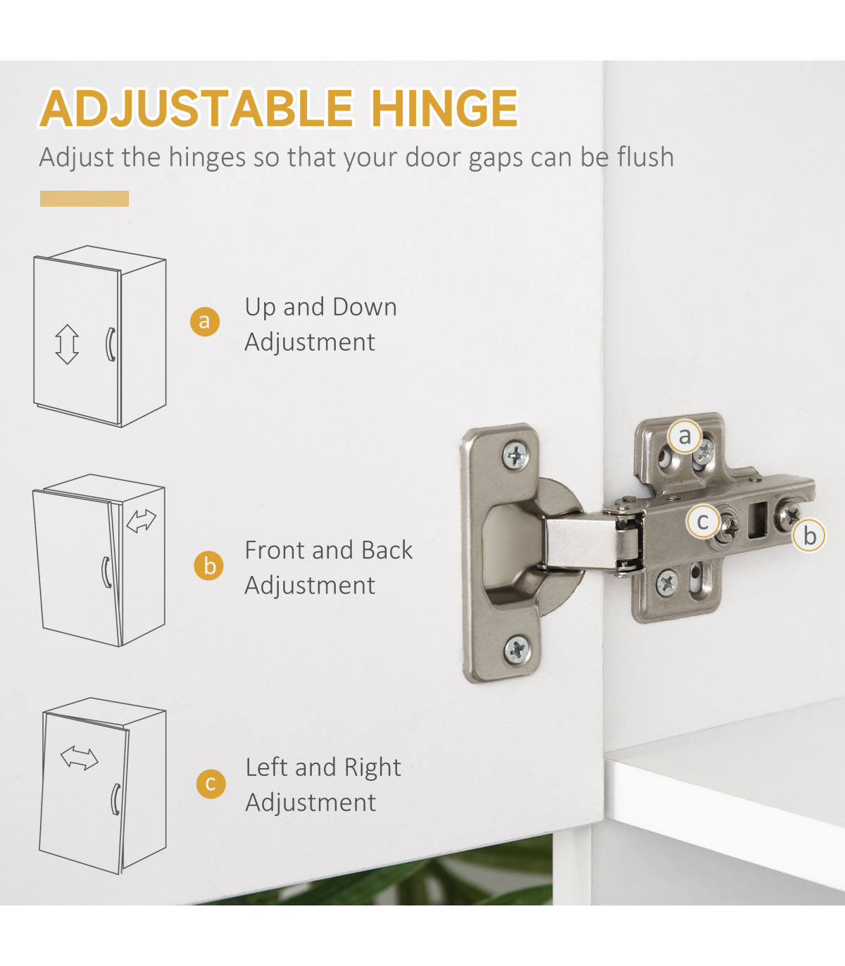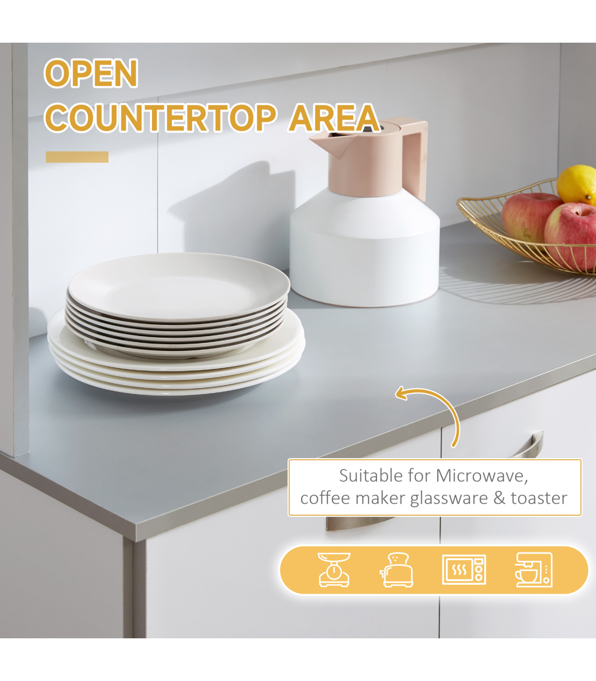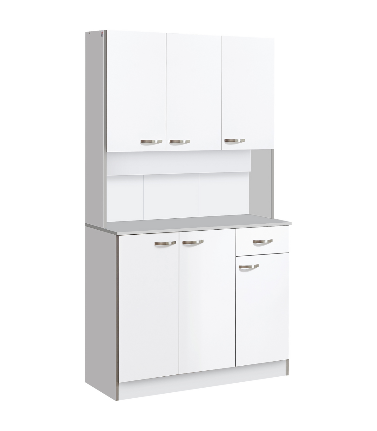 A multi-storage kitchen dresser which gives you multi-storage space: this HOMCOM tall cabinet. It features top and bottom cupboards, a drawer and open middle shelf. Each cupboard comes with a three-level adjustable shelf so you can fit in smaller and larger pieces. A clean white colour for a modern look, this storage cupboard is complete with silver-coloured handles for a sleek look.