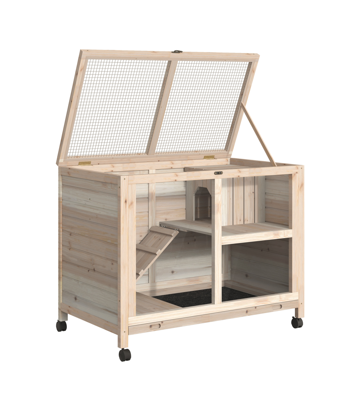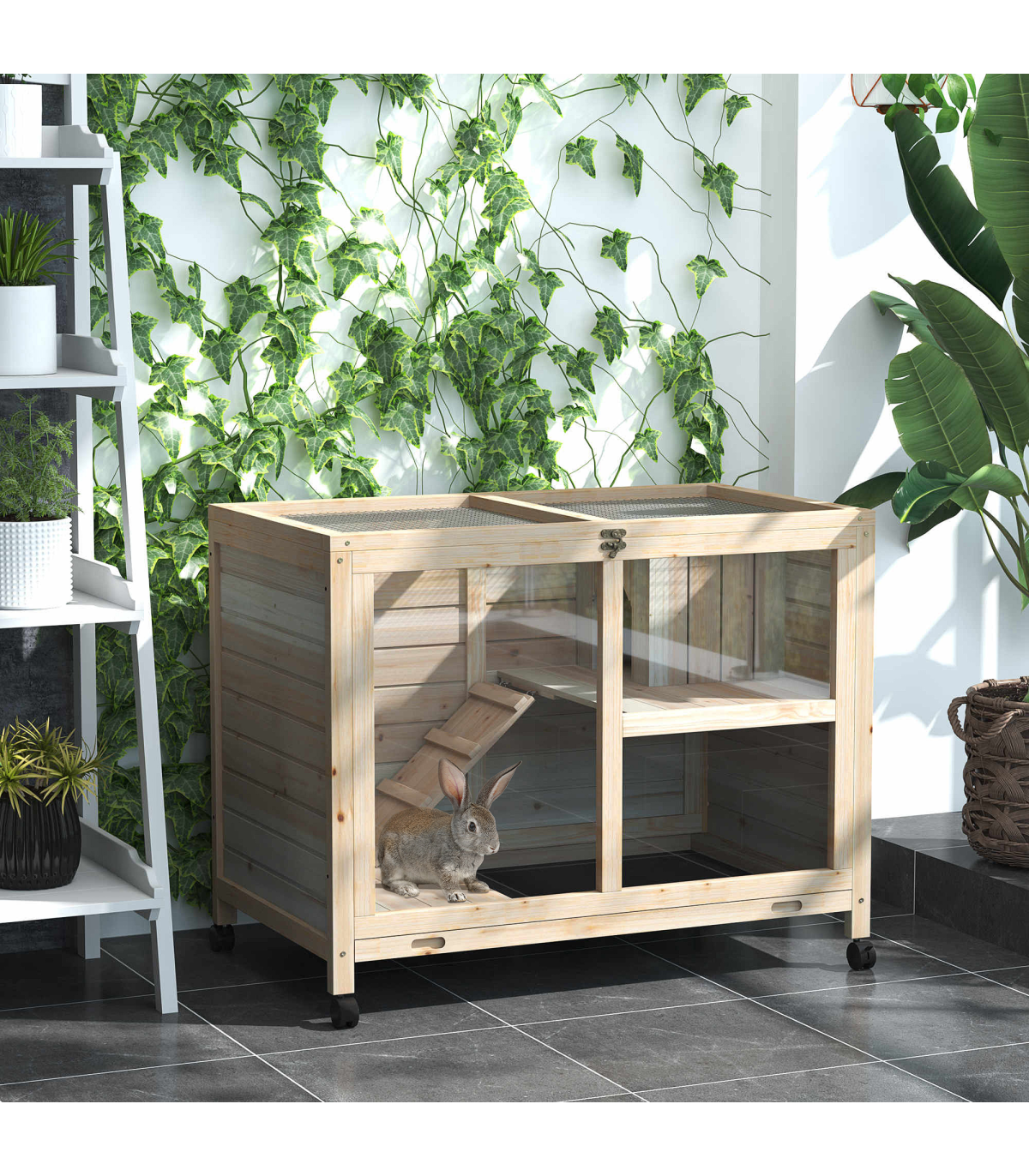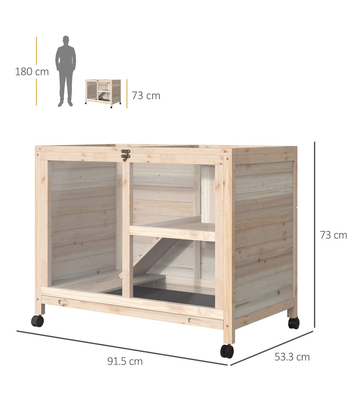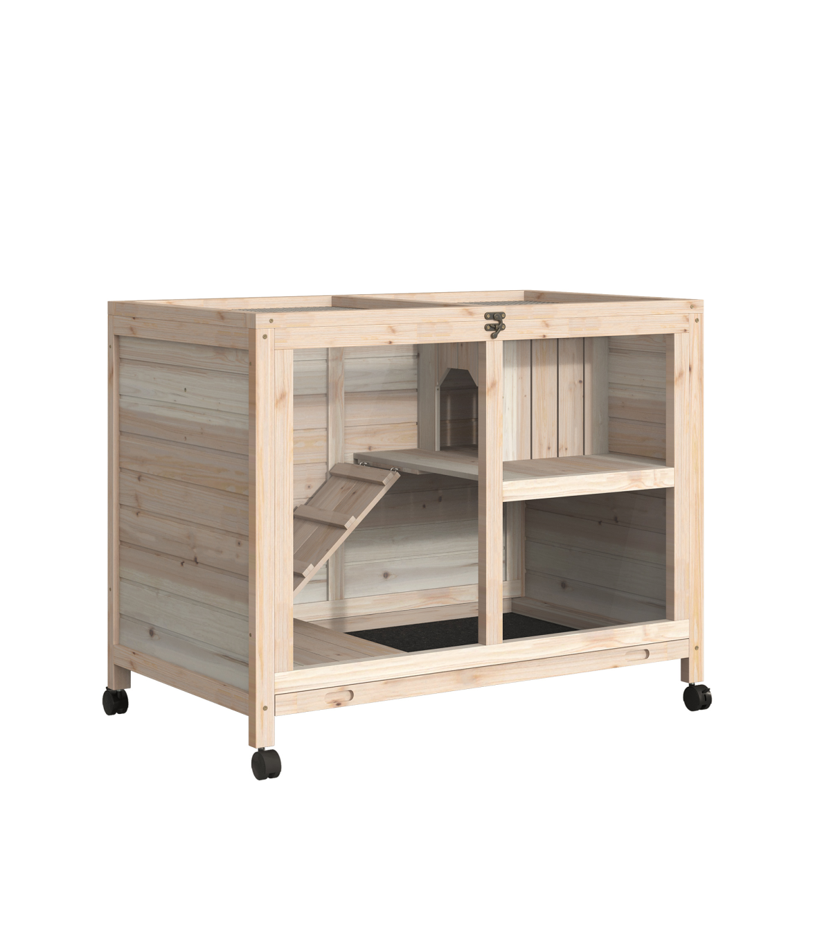 Offer your beloved small pets a cozy and secure home with the PawHut Indoor Rabbit Hutch. This elegantly designed hutch is not only a comfortable sanctuary for rabbits, guinea pigs, and other small animals but also a stylish addition to your indoor spaces. Its robust 100% solid wood construction ensures a safe and sturdy enclosure, while the water-resistant paint coating extends its durability and provides protection against mild weathering. The thoughtful multi-entrance design facilitates easy cleaning, food refilling, and pet access. With its convenient wheels, relocating the hutch is a breeze, ensuring your pets can always be by your side. Give your small animals the luxury they deserve with this exquisite indoor hutch.