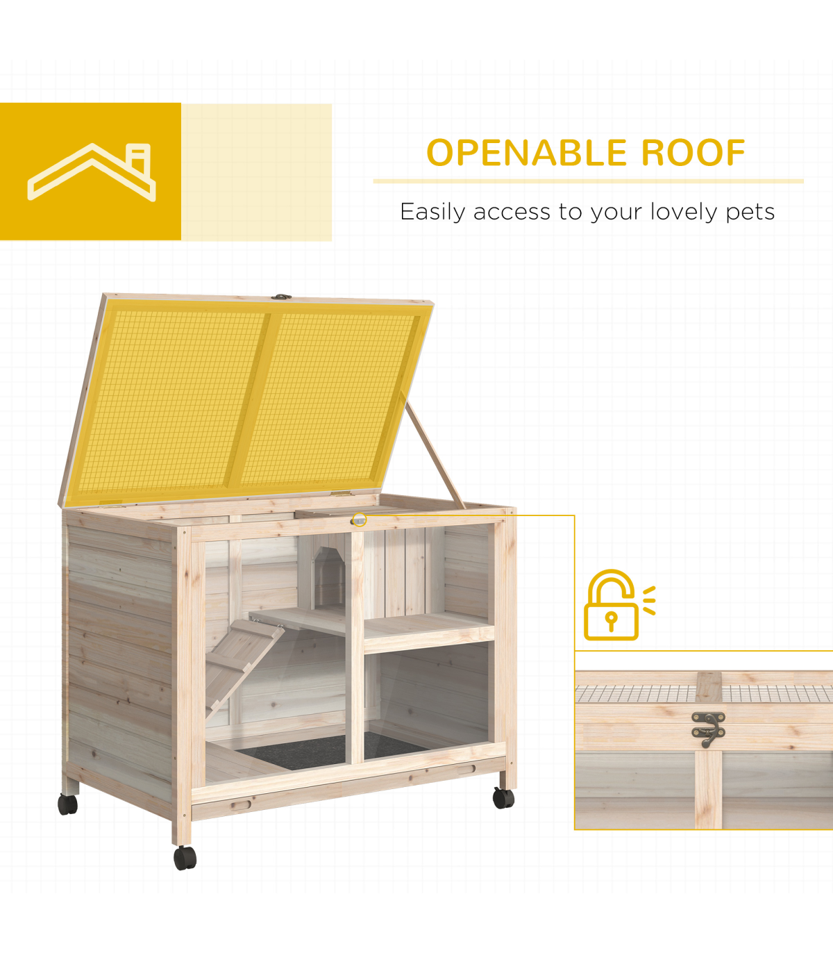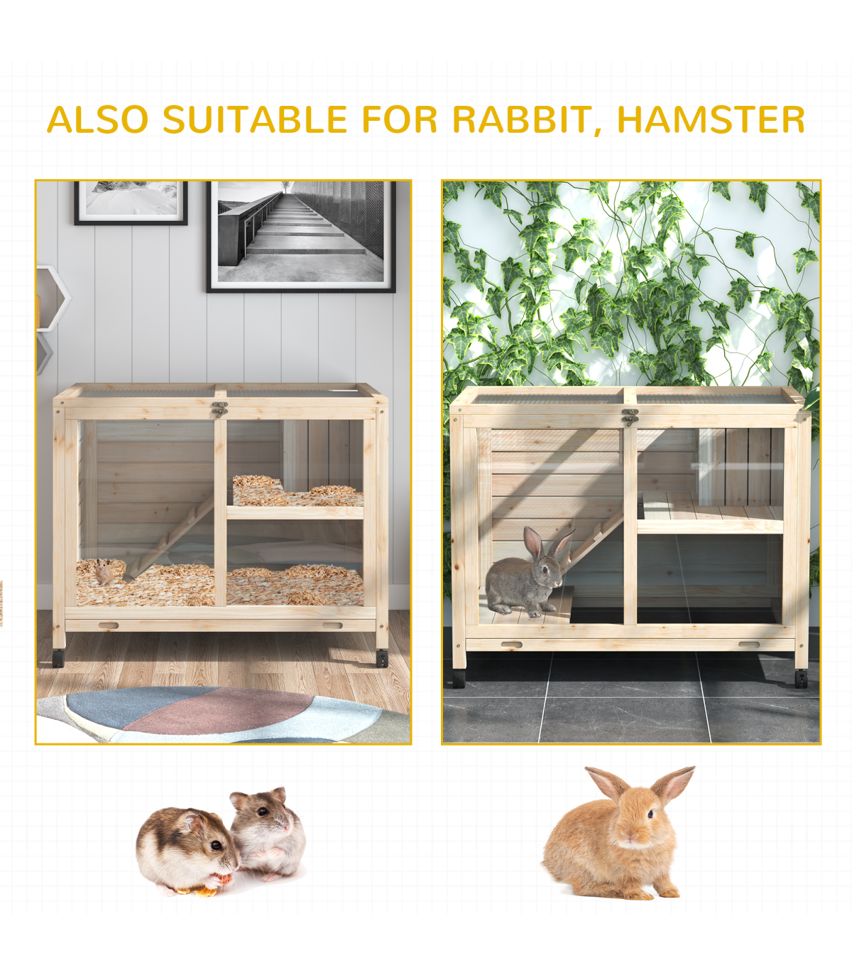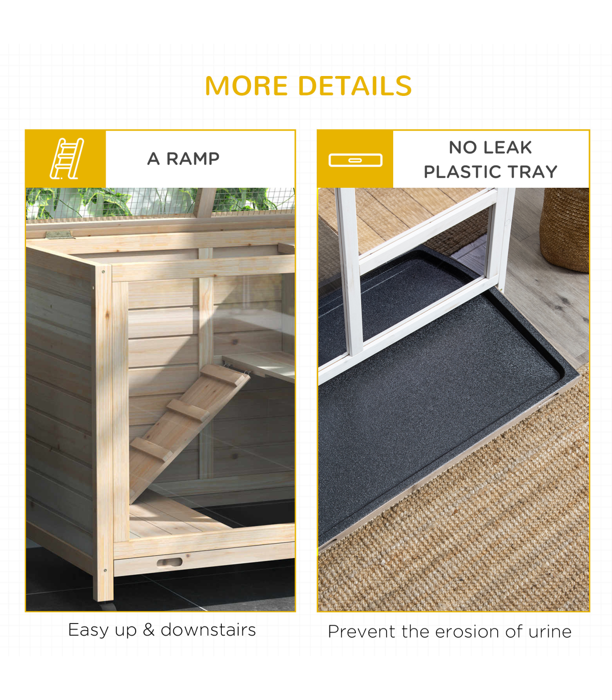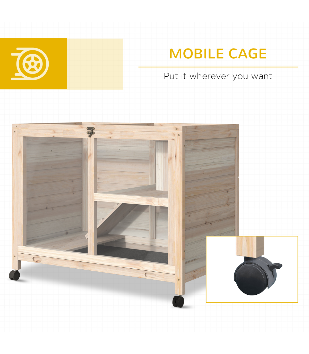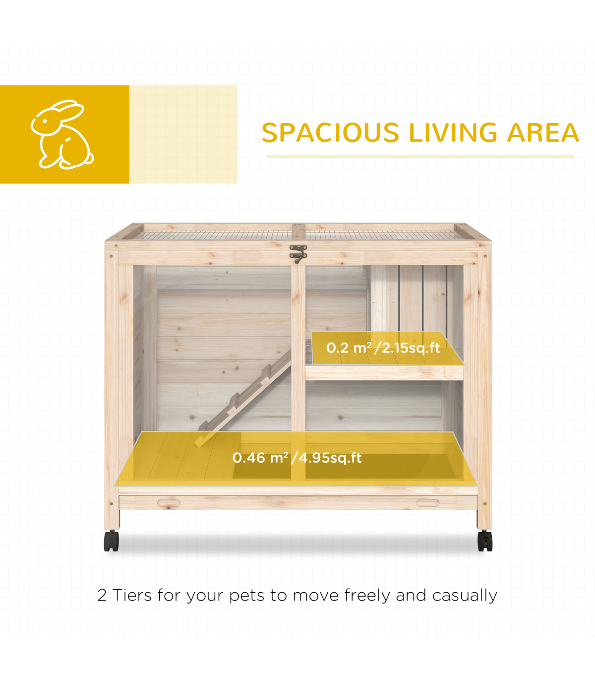 Offer your beloved small pets a cozy and secure home with the PawHut Indoor Rabbit Hutch. This elegantly designed hutch is not only a comfortable sanctuary for rabbits, guinea pigs, and other small animals but also a stylish addition to your indoor spaces. Its robust 100% solid wood construction ensures a safe and sturdy enclosure, while the water-resistant paint coating extends its durability and provides protection against mild weathering. The thoughtful multi-entrance design facilitates easy cleaning, food refilling, and pet access. With its convenient wheels, relocating the hutch is a breeze, ensuring your pets can always be by your side. Give your small animals the luxury they deserve with this exquisite indoor hutch.
