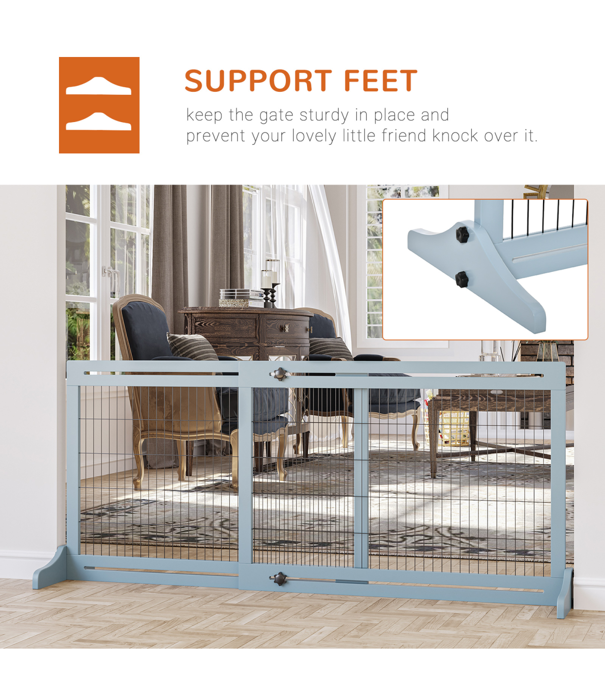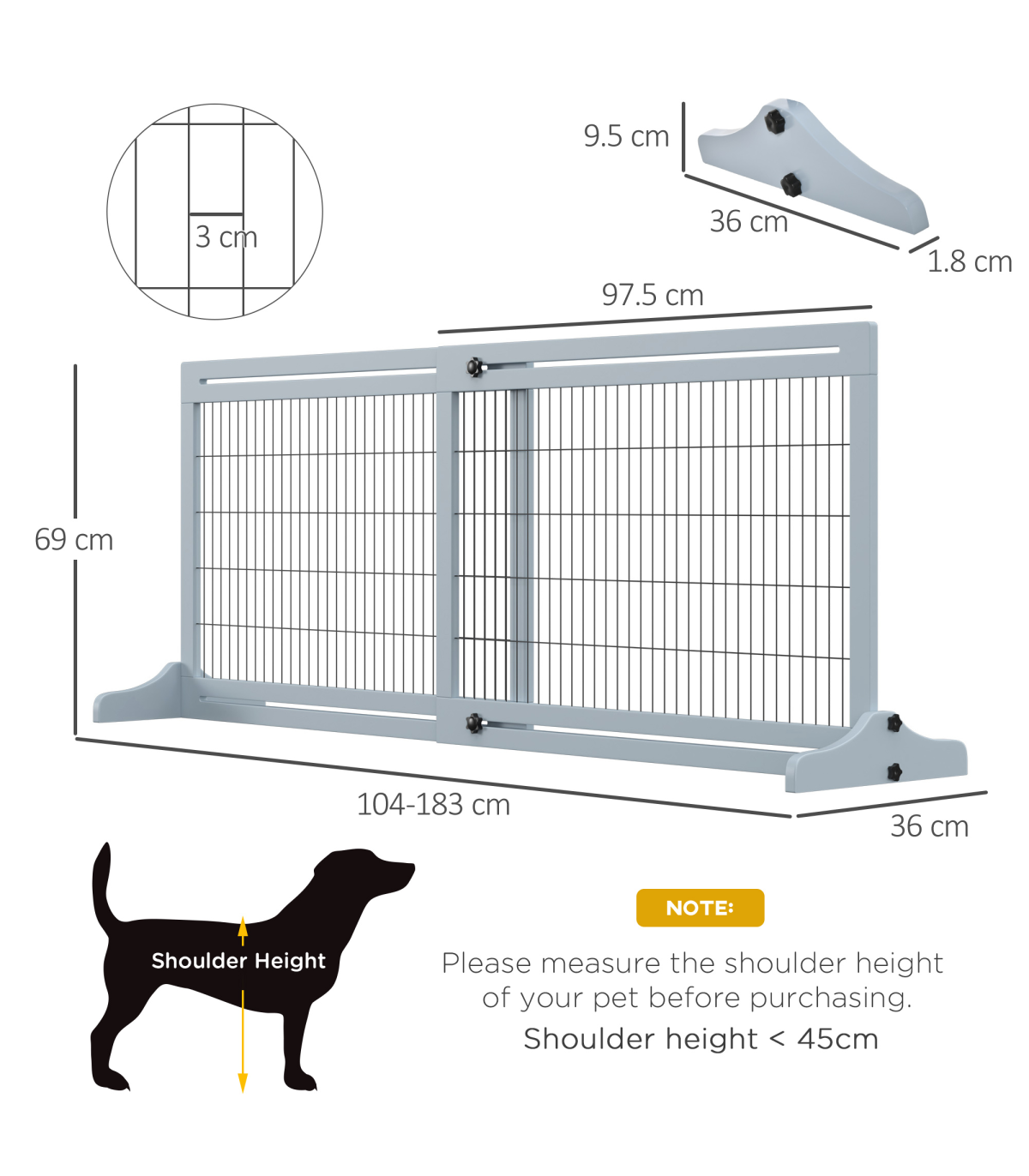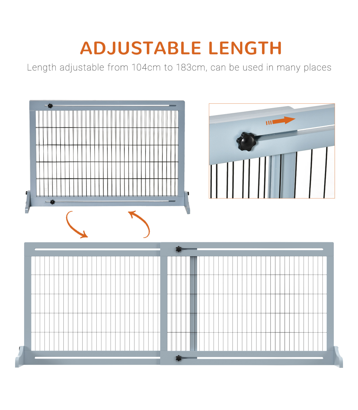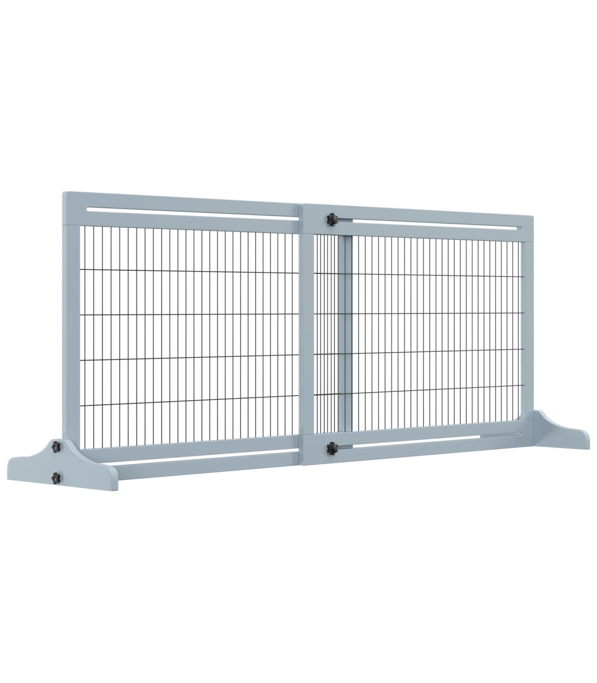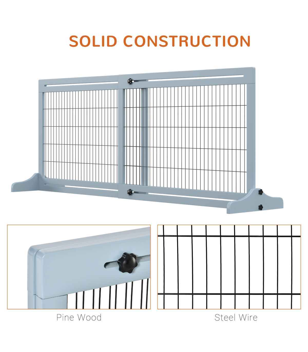 Adjustable Wooden Pet Gate - Freestanding Dog Barrier for Doorway, Grey Pawhut