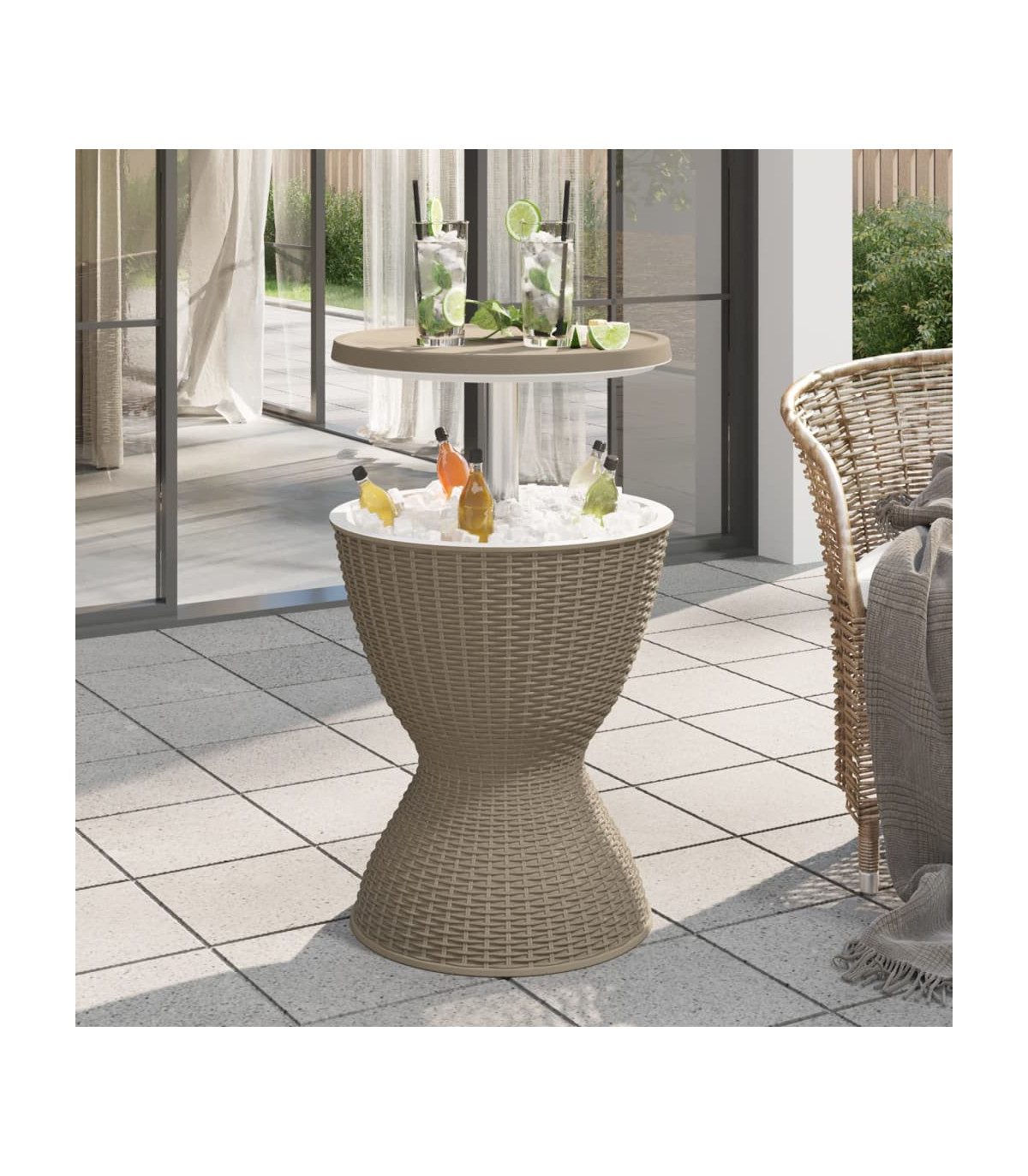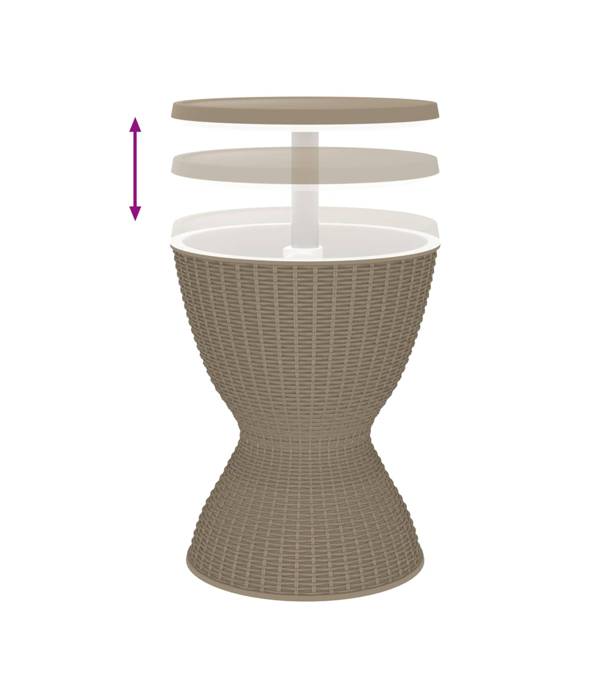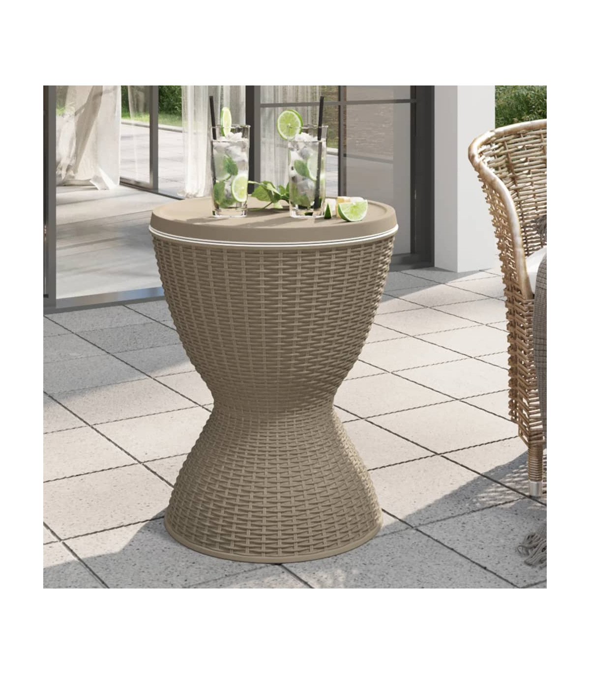This versatile ice cooler table is perfect for outdoor barbecues, parties, and other events. It can be used as a cooler, cocktail table, or coffee table, making it a practical and stylish addition to your outdoor space. The durable polypropylene material is lightweight, tough, and resistant to impact, UV rays, and weathering, ensuring easy maintenance and long-lasting use. The imitation rattan design adds a touch of natural charm to your outdoor decor. The built-in drainage plug and lock system make it convenient to use and keep the tabletop stable when extended. Assembly is required.