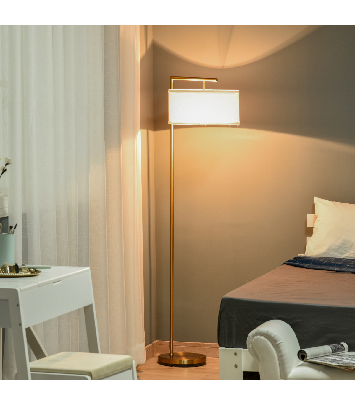 - MODERN ELEGANCE LOOK: Gold pole meets white linen fabric lampshade, charming and elegant