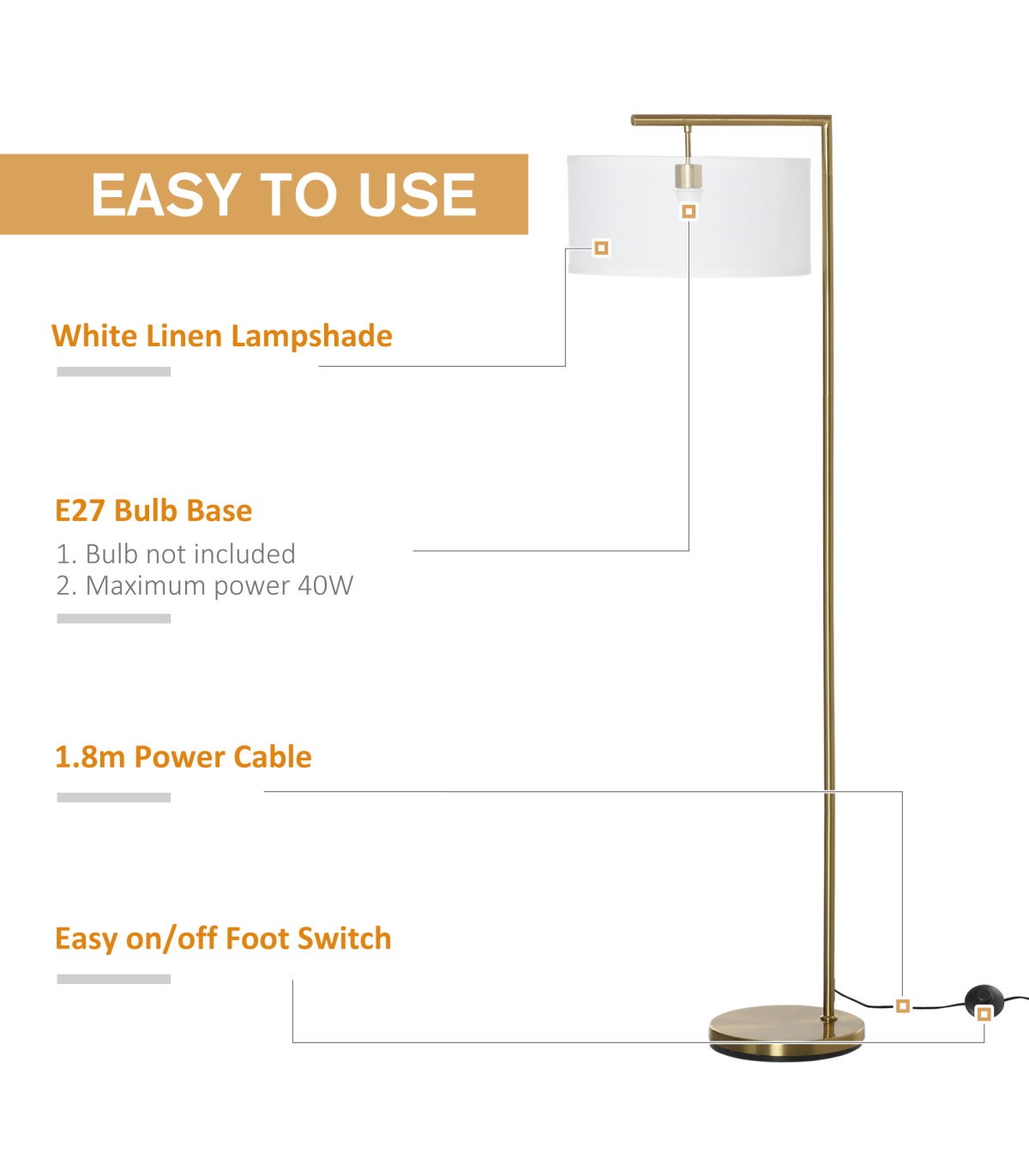 - EASY TO USE: Foot switch on electrical cord, 1.8m power cord included, requires E27 bulb (not included)