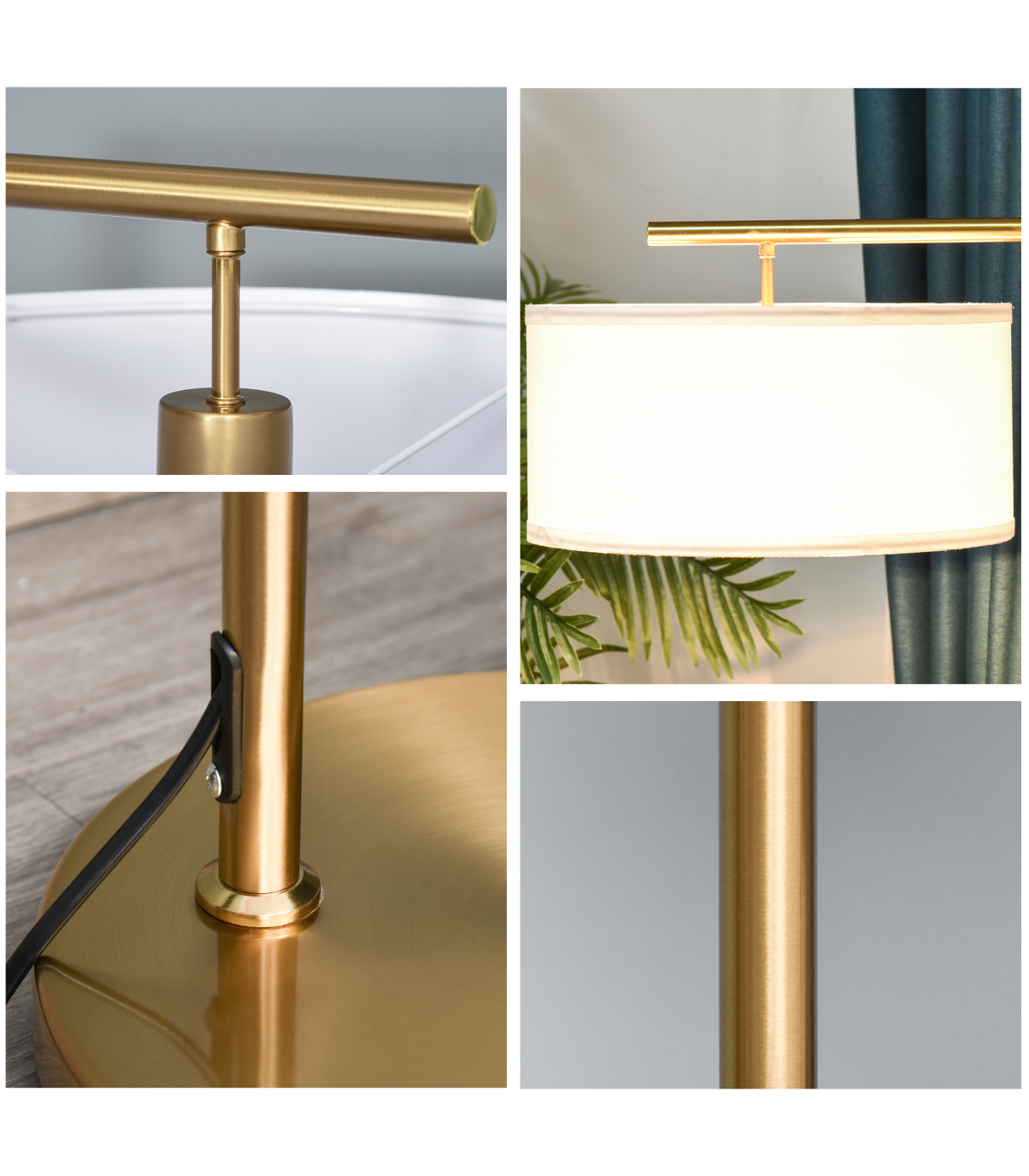 Gold pole matches with white linen lampshade, this charming floor lamp from HOMCOM provides soft diffused light for your living room, bedroom, dining room, and more. The tall pole design offers overhead light, perfect for reading and creating a warm atmosphere in your space. The modern elegance look of this lamp makes it suitable for various decors, and the solid construction ensures long-lasting use.