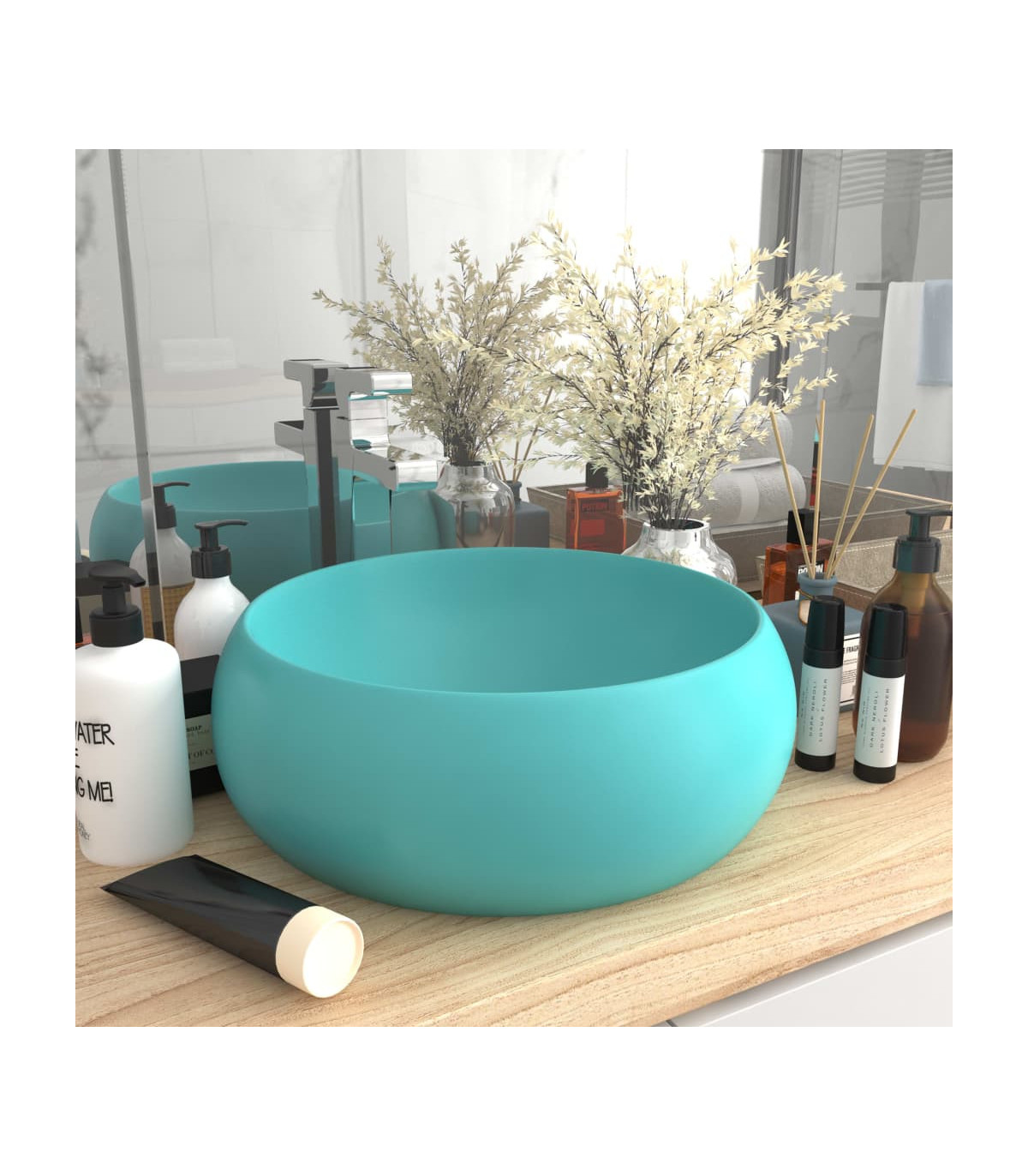 Enhance the look of your bathroom with our Luxury Matt Light Green Ceramic Wash Basin. Made of premium ceramic, this round-shaped basin adds a touch of sophistication to any space. The matt surface and luxury design make it a stylish addition to your home. Not just a practical vessel, this basin is also a decorative piece that complements any decor.