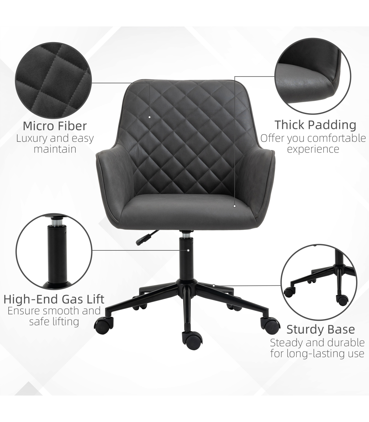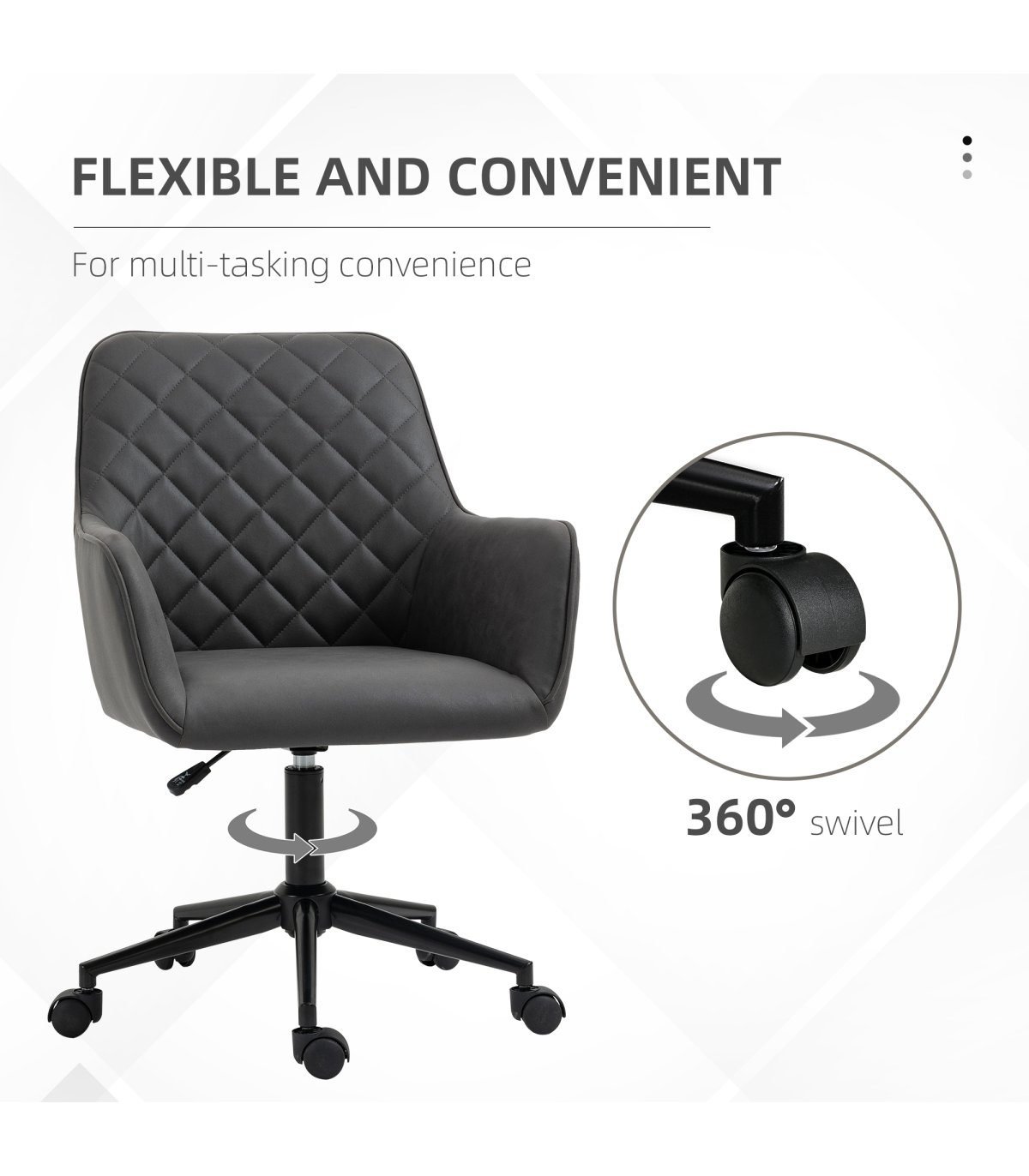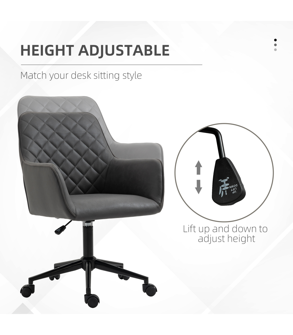 - Stylish: Grey leather-look upholstery, with a diamond stitched design on the back, the computer chair looks great and will match other furniture easily.