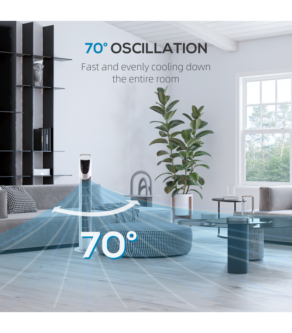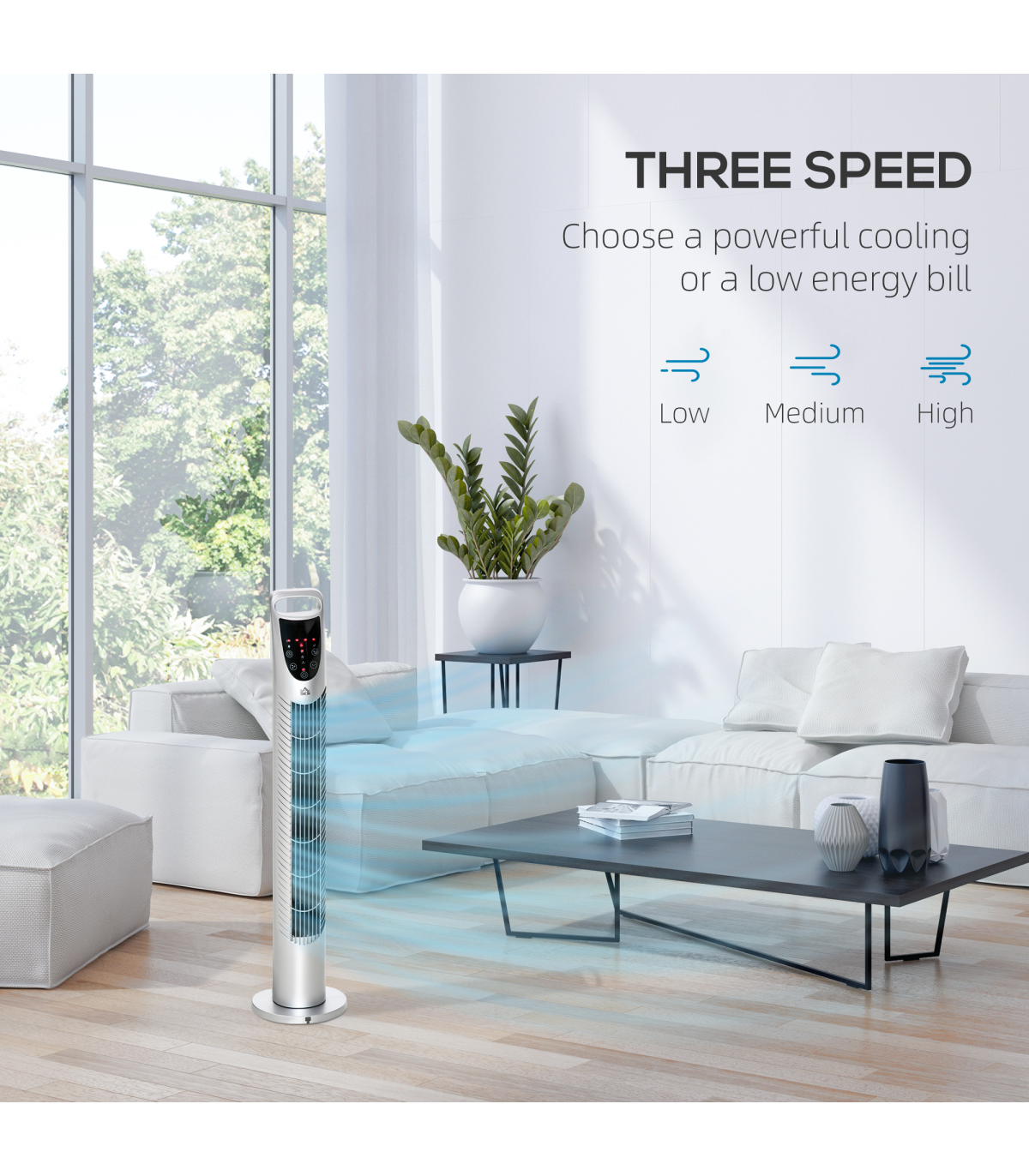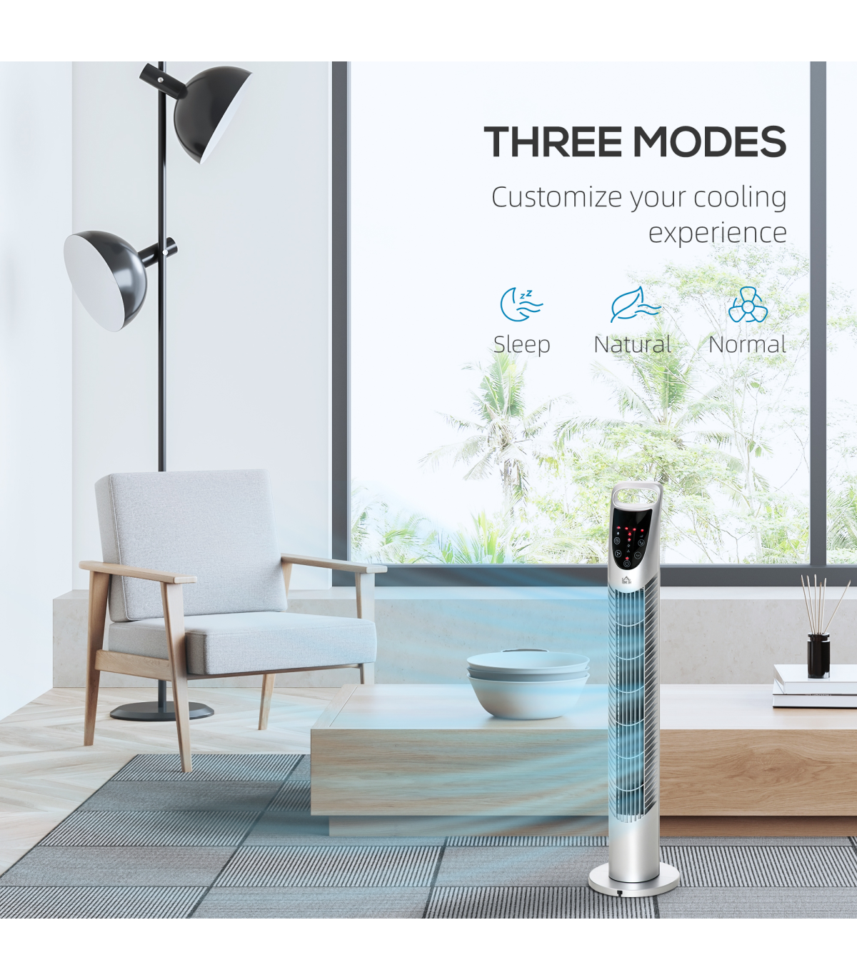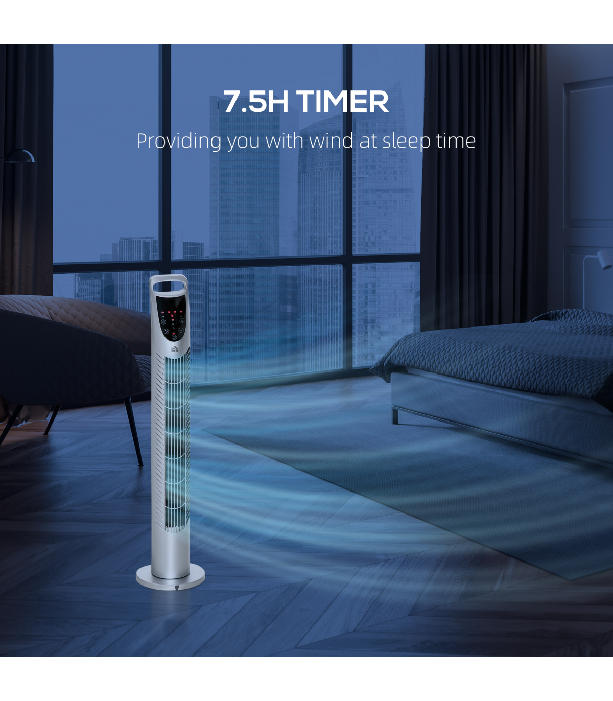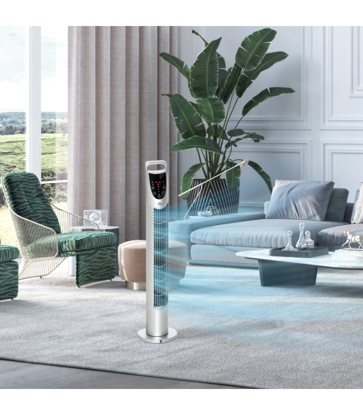Stay comfortably cool as the days and nights get hotter with this tower fan from HOMCOM. The multi-setting mode allows you to choose between three different speeds and three types of wind (natural /normal/sleeping) for a better cooling experience with the standing fan. A built-in timer function allows you to use in the sleeping. Oscillating fan is a must for anyone working in offices or are refined to small and stuffy spaces.