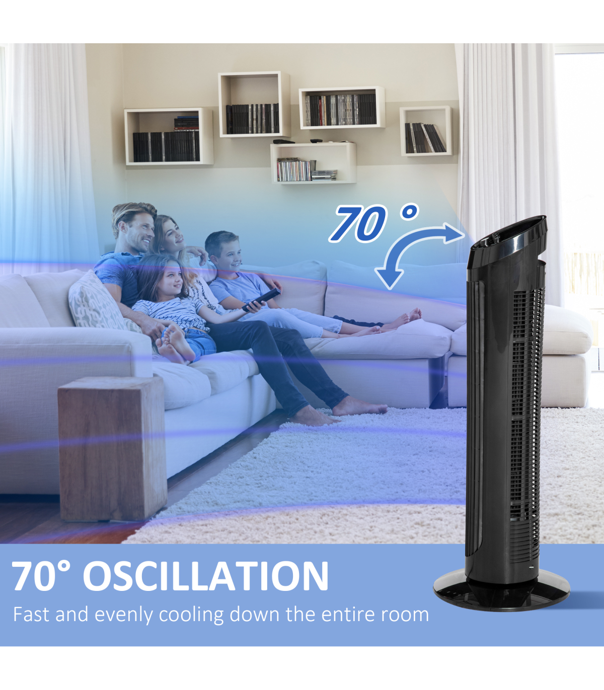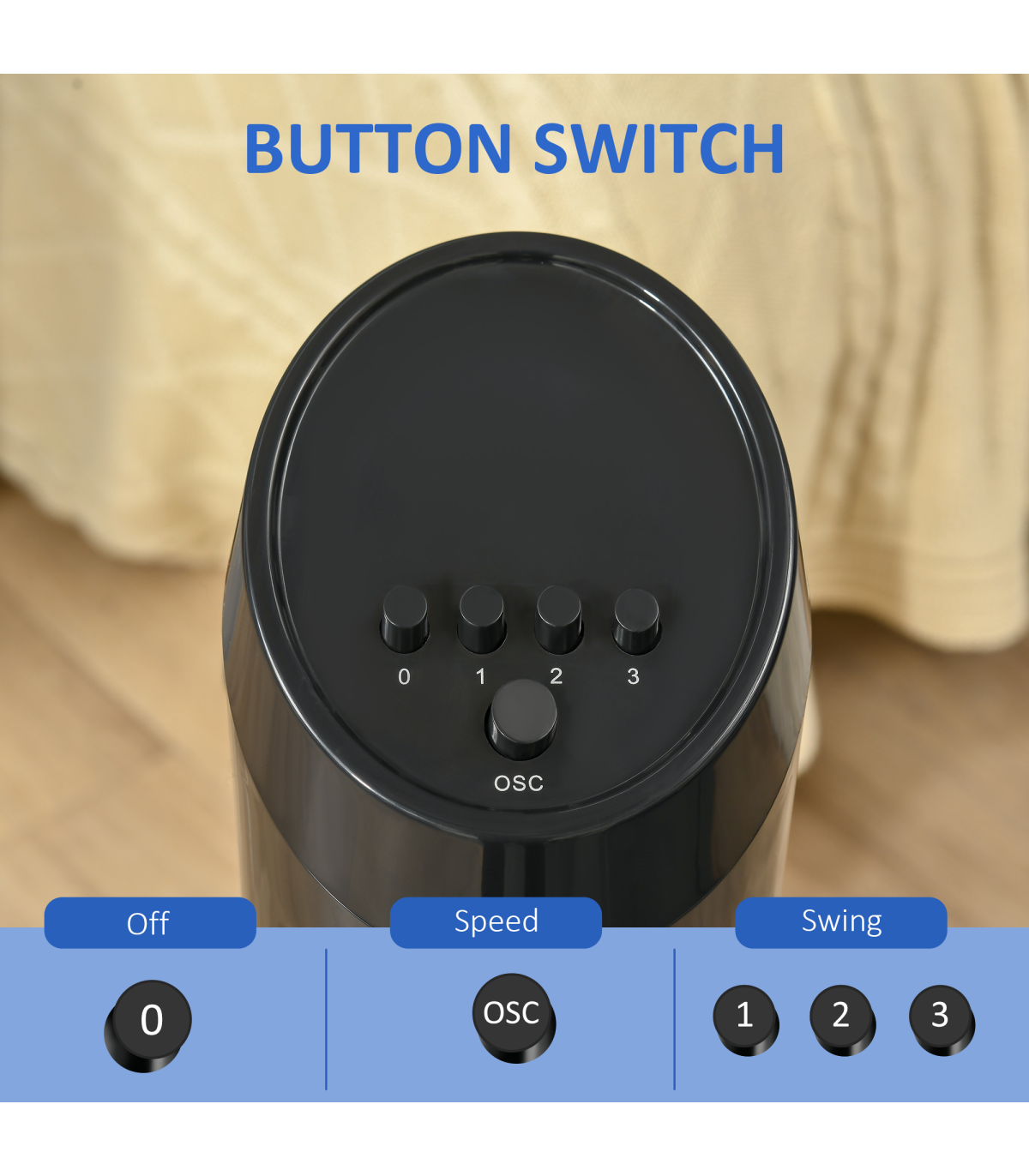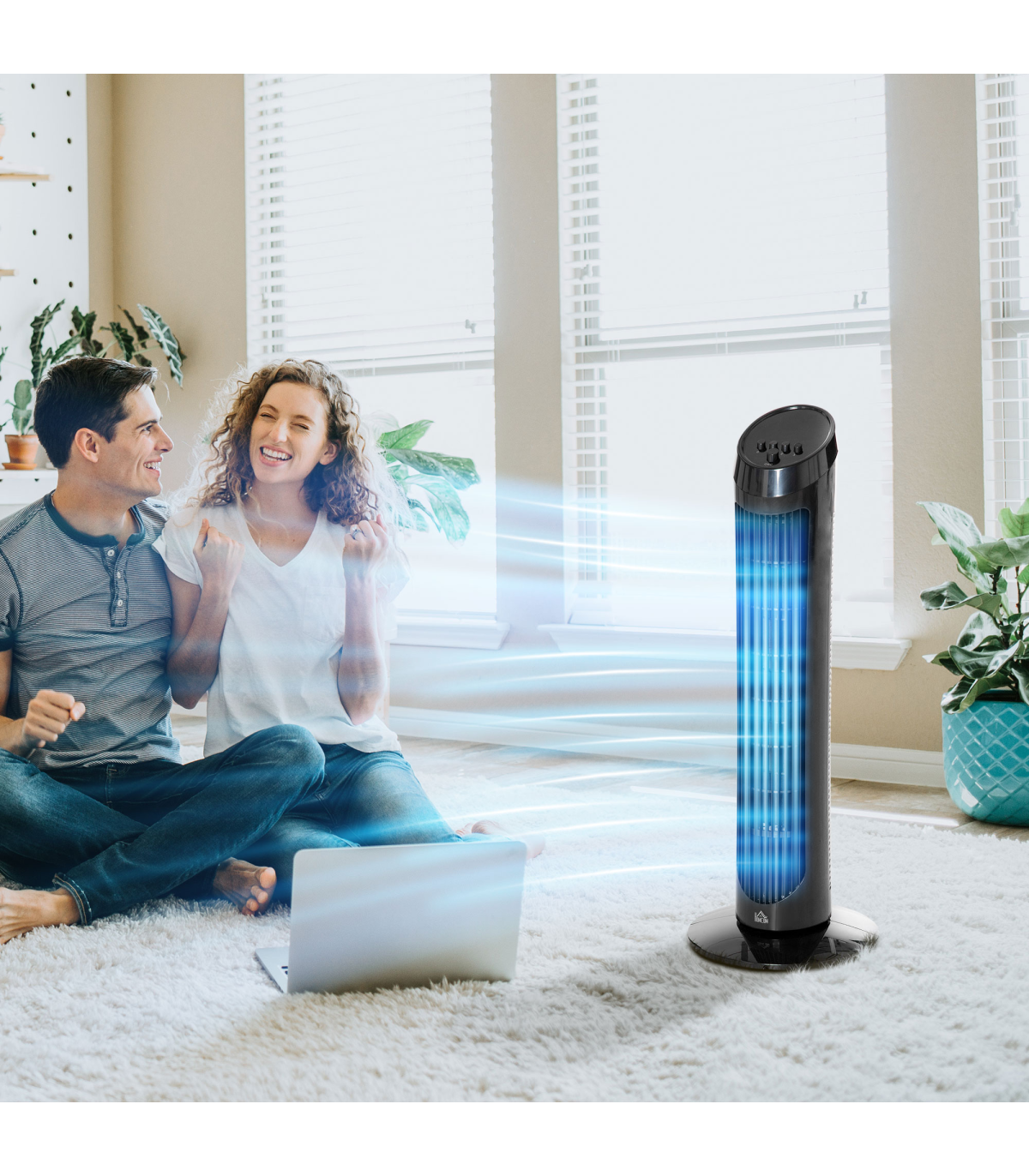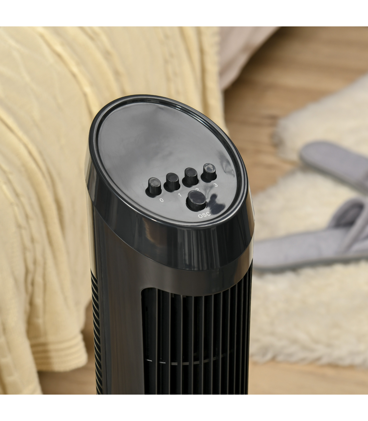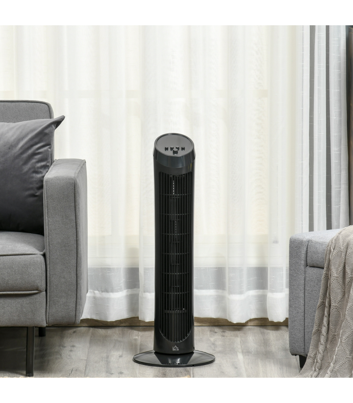 The HOMCOM tower fan offers a more effective way to circulate air around a room. 3 speed settings, selected by push-button controls, allow you to tailor the airflow perfectly for your needs. This standing fan is ideal for any kitchen or living room and features breeze with a space-saving design. Our oscillating fan is a must-have as the temperatures raise for the seasons ahead.