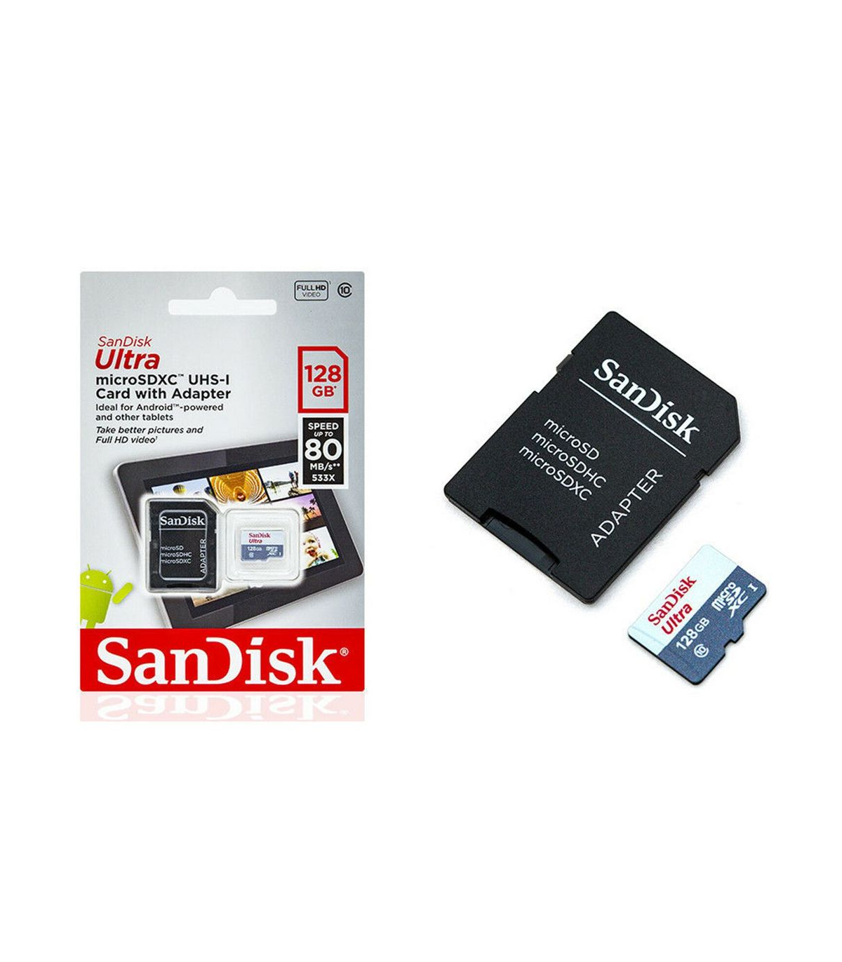 Package contains:1x SanDisk Ultra 128 GB, Class 10 with Adapter