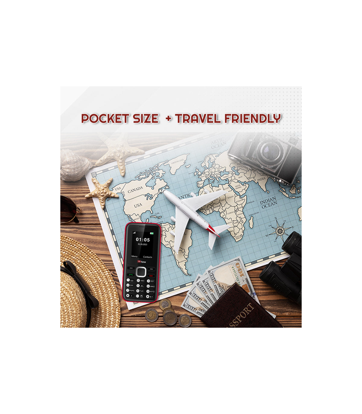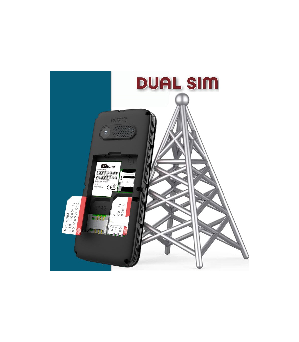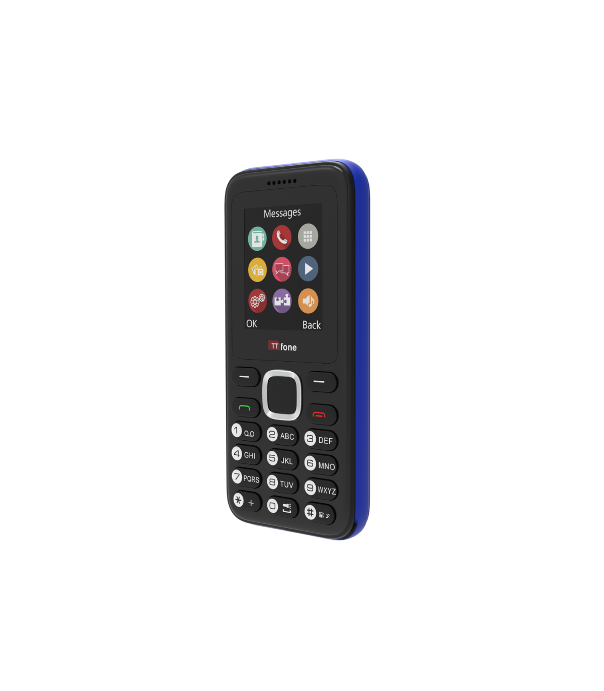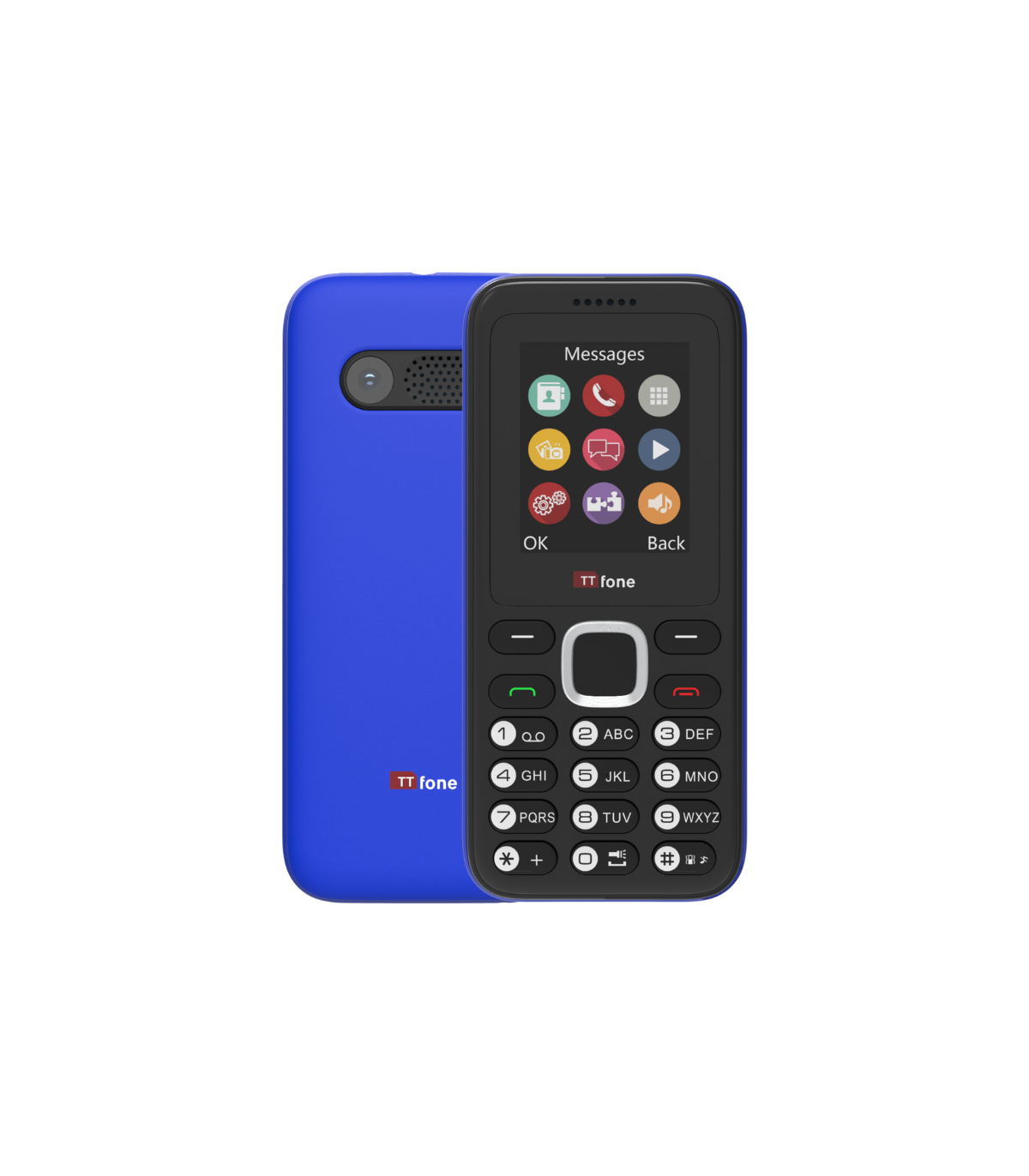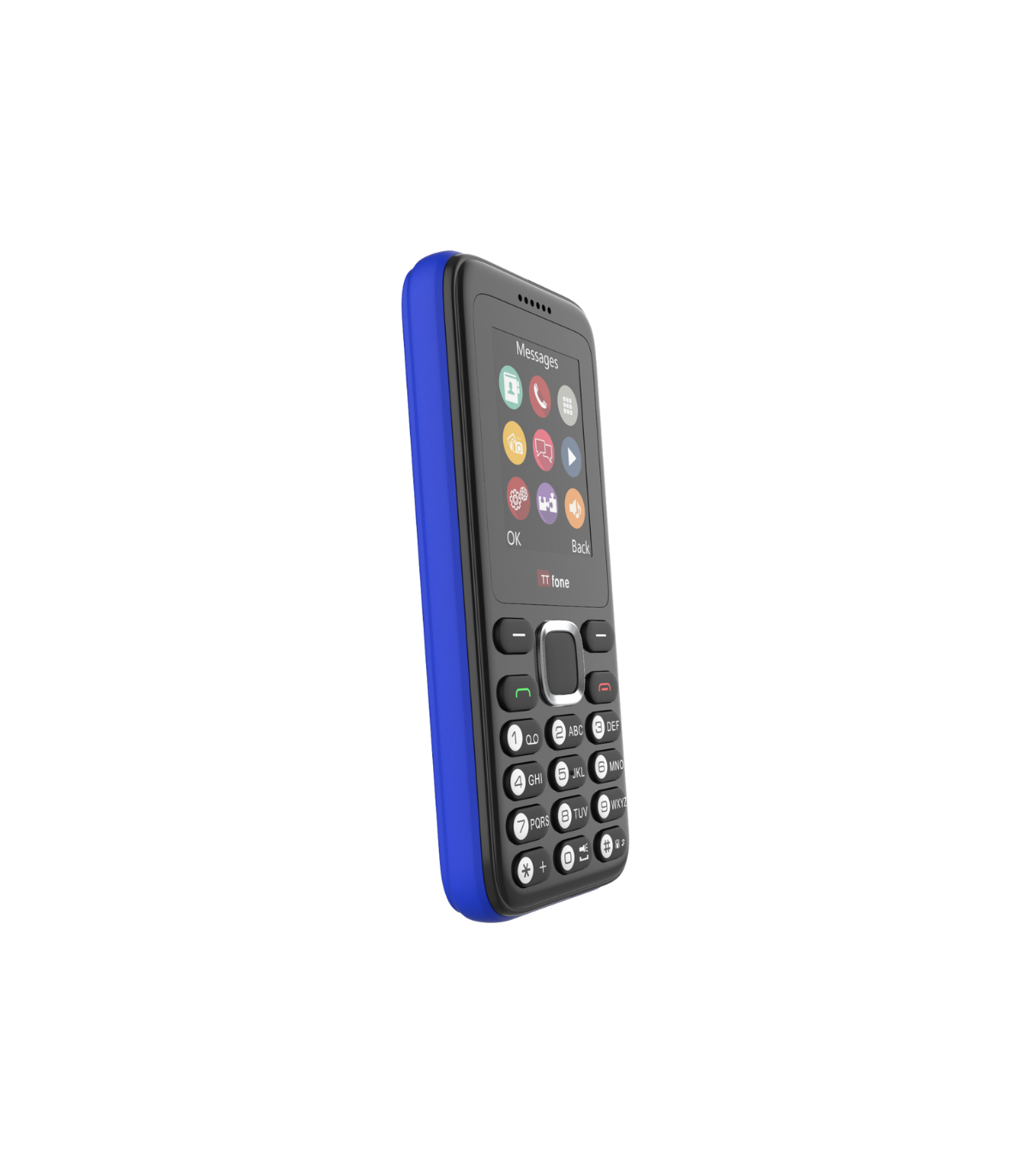 The TTfone TT150 Blue Dual Sim Cheap Mobile Phone for Emergency Use. It comes with a USB Cable, EE Pay As You Go.