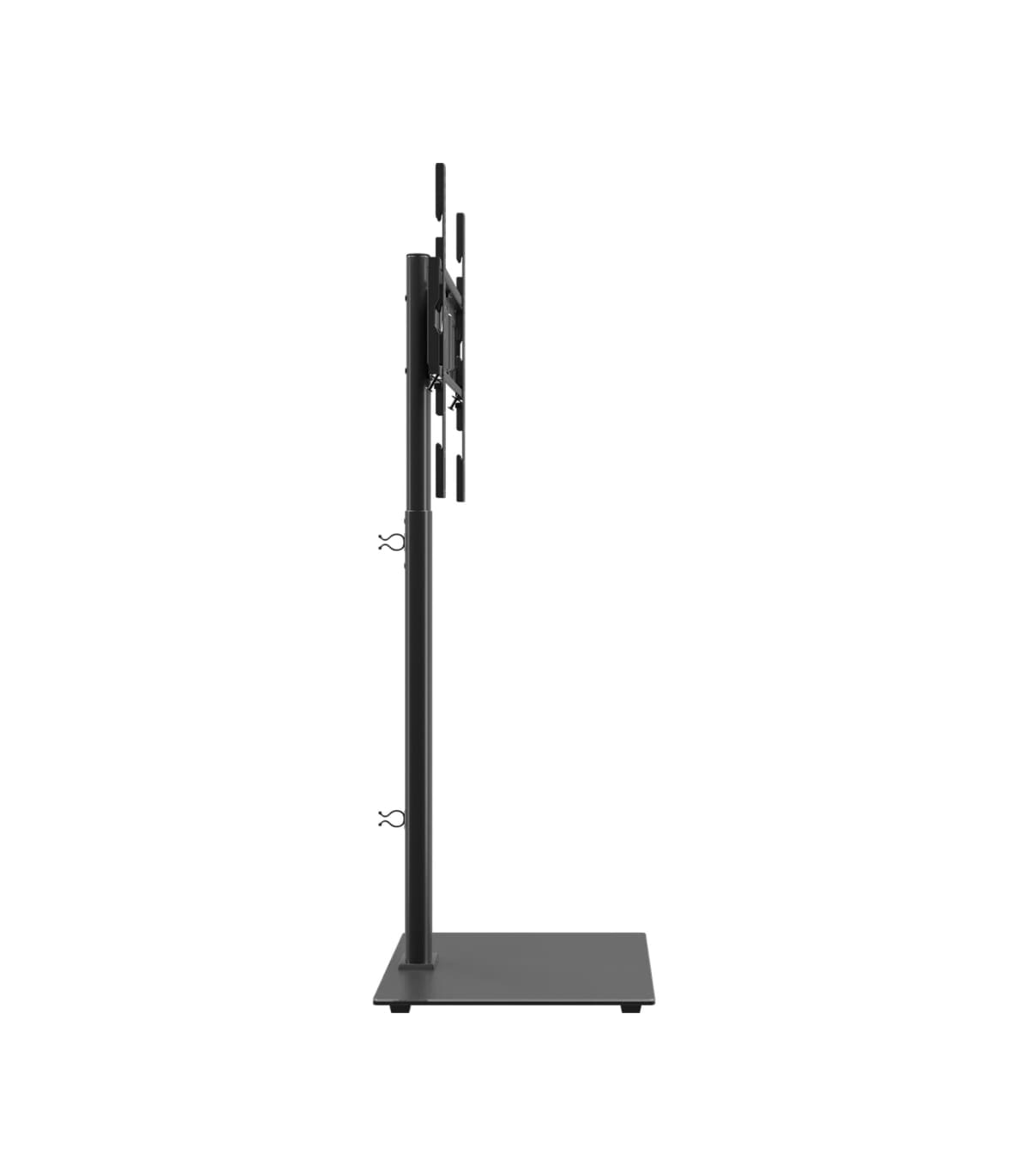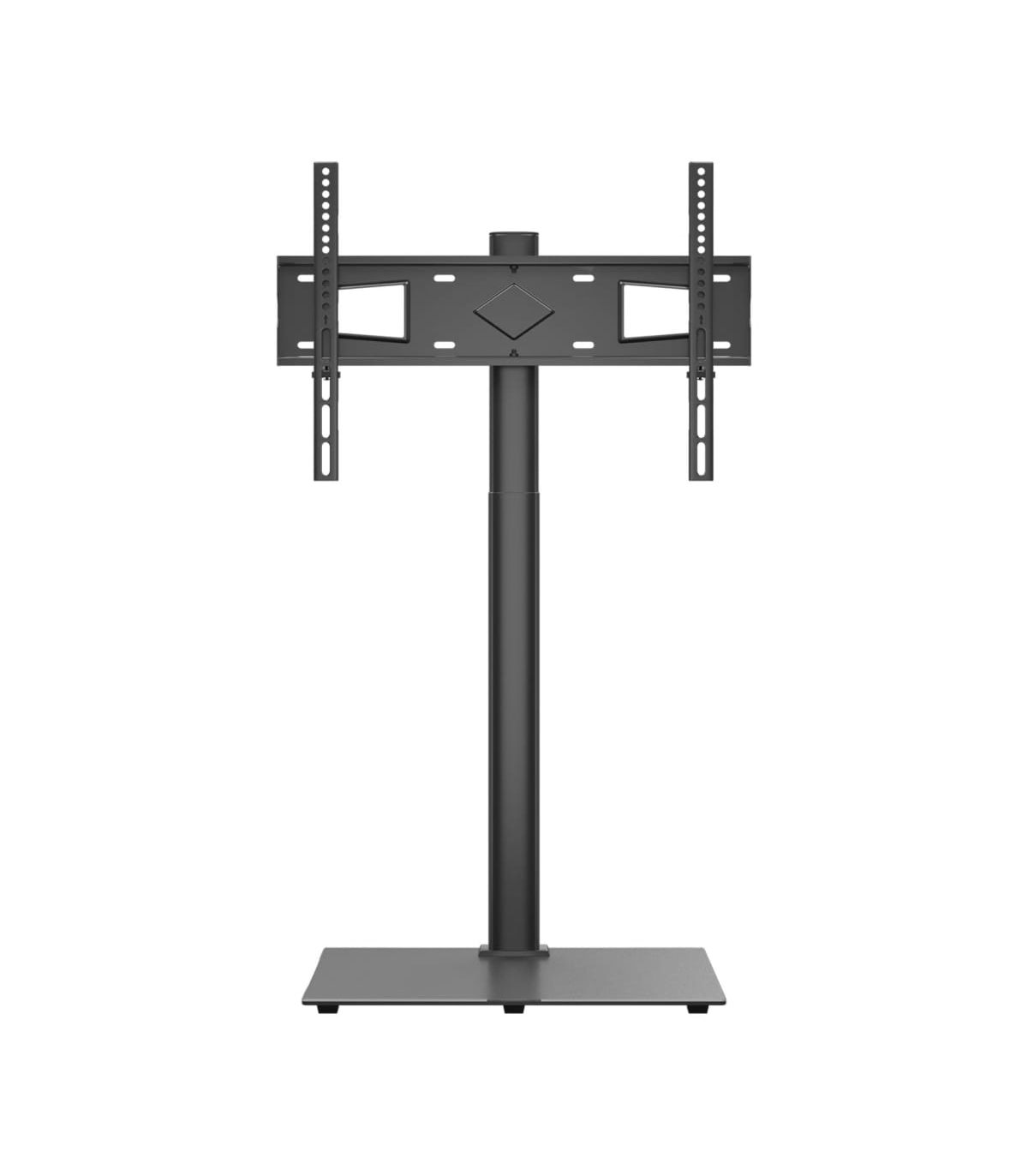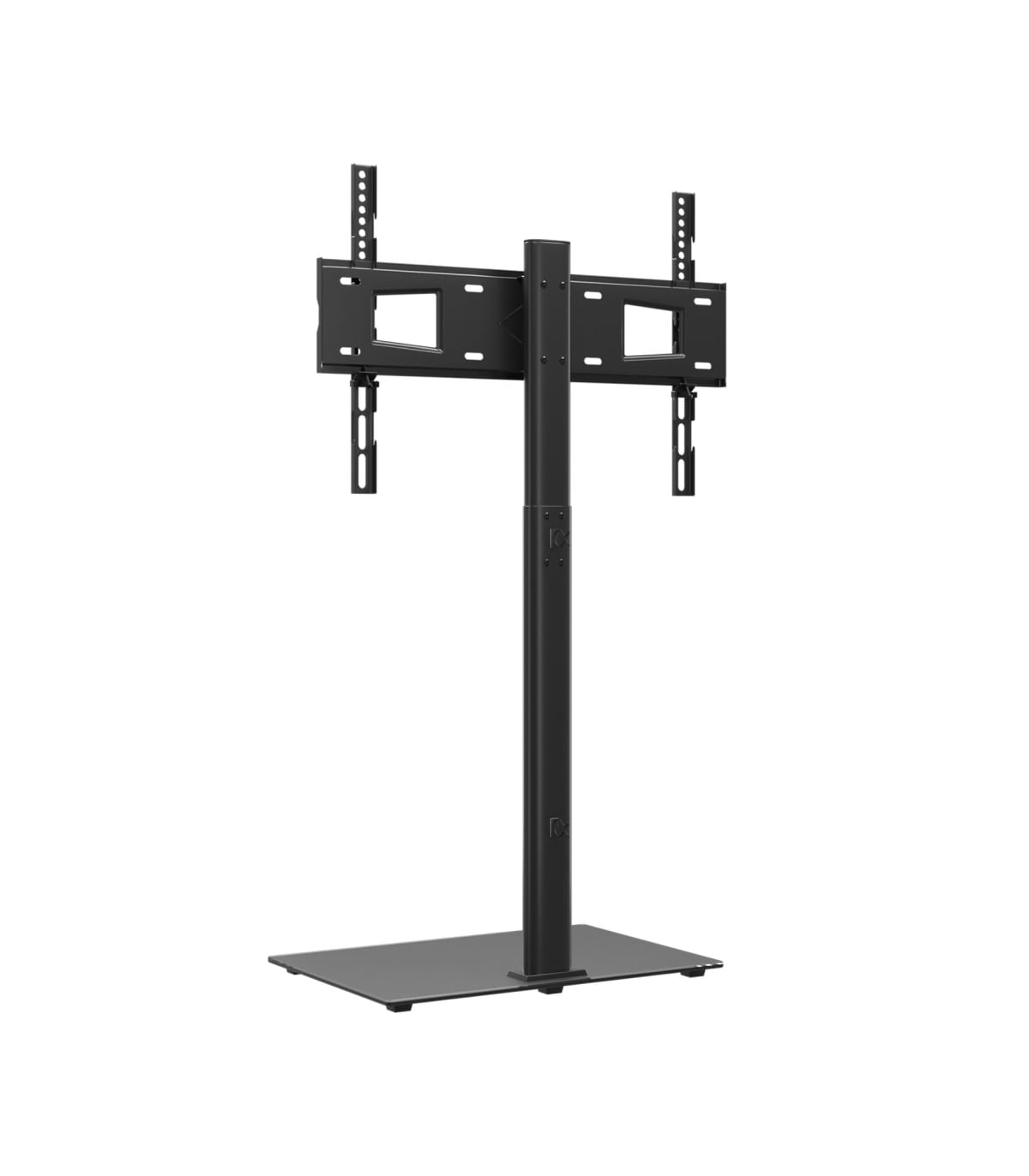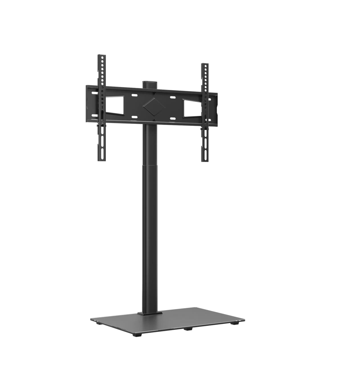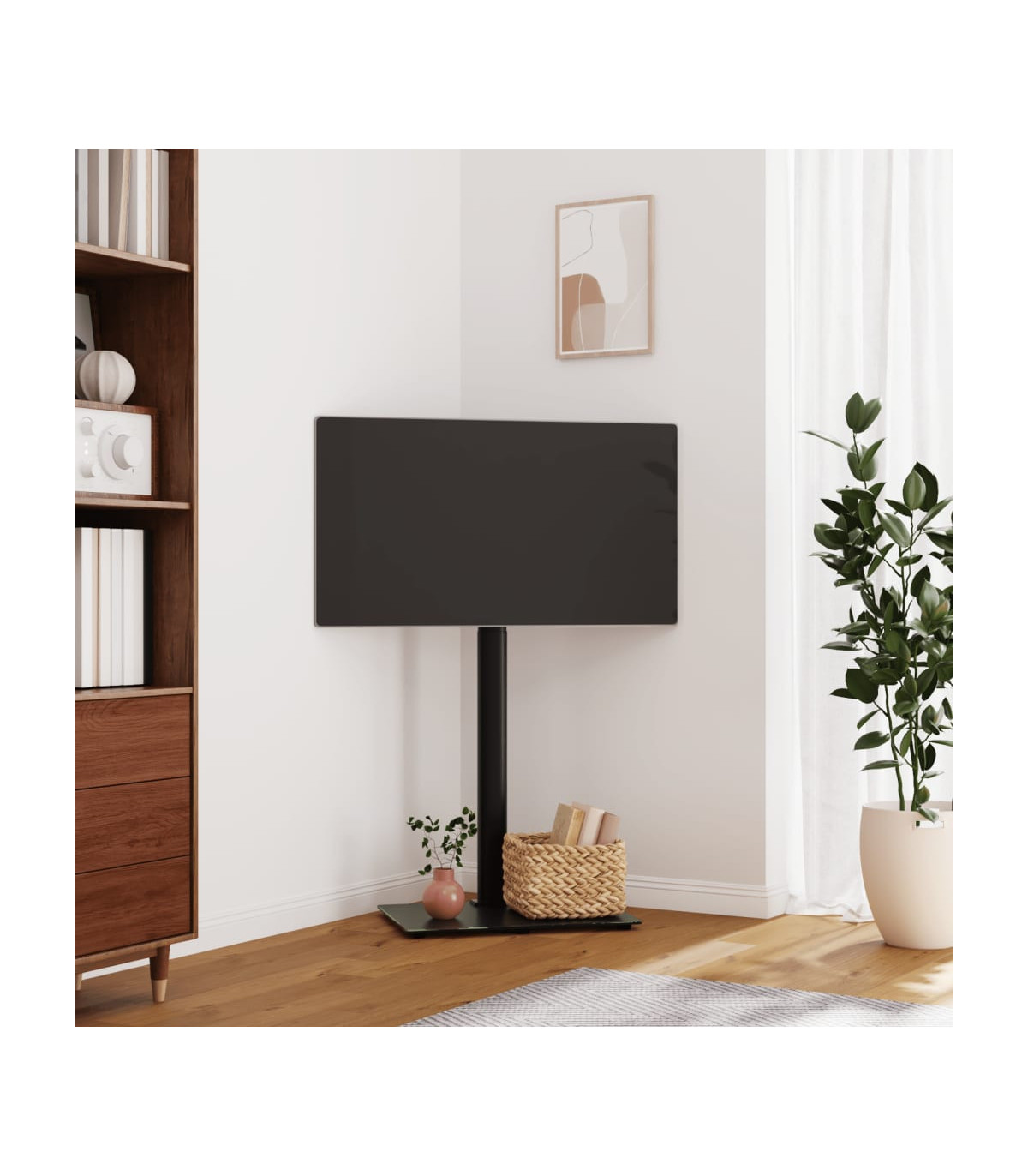 This corner TV stand offers a practical solution to mount your TV and add extra storage space to your room. Swivelling function: This TV stand can be swivelled 25° left and right to provide you with a better viewing angle.Ample storage space: The media cabinet is designed with a shelf, providing ample space to place DVDs, multimedia devices and other decorative items within the load-bearing range.Space saving: This floor TV stand has a compact design and doesn't take up much space, so you can place it in the corner of small living rooms, bedrooms, and offices. Additionally, it has a cable management system to save space and tidy up messy wires at the back of the TV stand cabinet.VESA compatibility: This TV unit is compatible with VESA sizes ranging from 200 x 200 mm to 600 x 400 mm, such as 600x400/400x400/400x300/400x200/200x400/300x300/300x200/200x200 mm. Good to know:Make sure your TV has four threaded mounting holes on the back of the screen. We recommend measuring the VESA hole spacings on your TV before purchasing to ensure compatibility.Make sure the width of your TV fits on the TV stand and that the height from the TV bracket to the top glass table also accommodates your TV.We provide various screws and spacers to fit your TV, but they may not work for all brands. You may need to use the original screws that came with your TV or buy special screws yourself.Warning:To prevent it from tipping over, this product must be used with the provided wall attachment device.