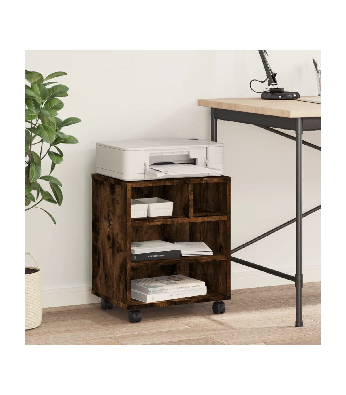 vidaXL Printer Stand with Wheels Smoked Oak 41x32x48 cm
