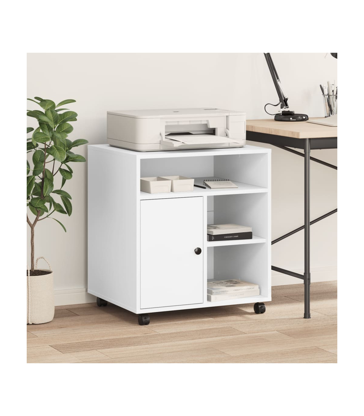 vidaXL Printer Stand with Wheels White 60x50x67 cm