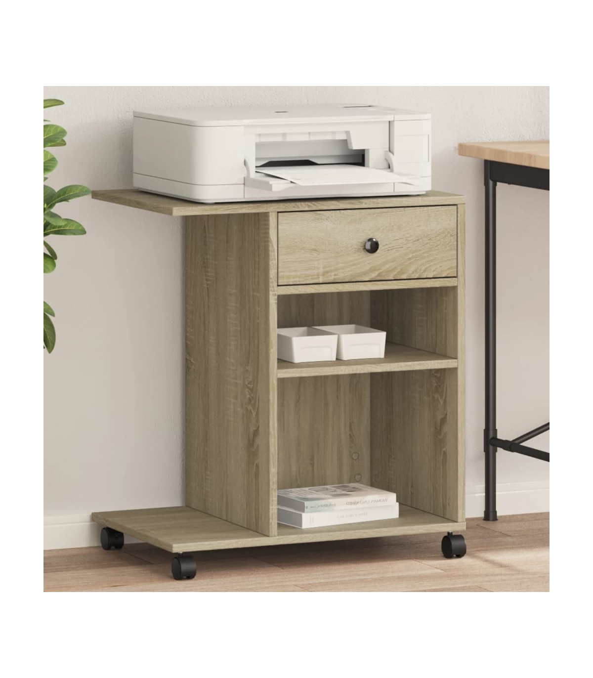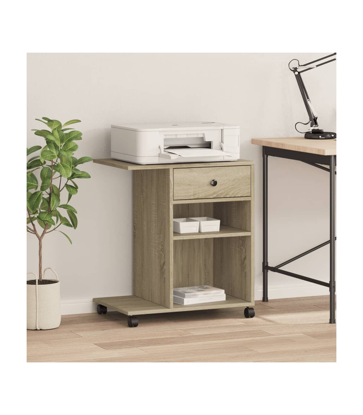vidaXL Printer Stand with Wheels Sonoma Oak 60x40x68.5 cm