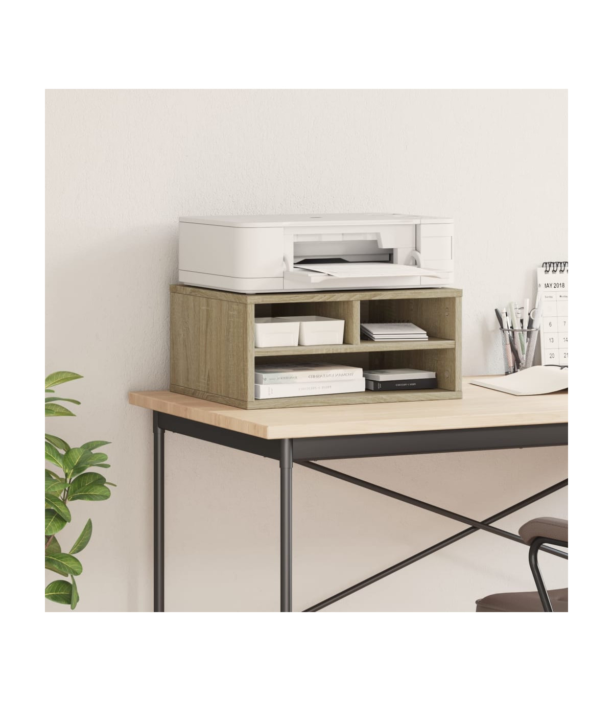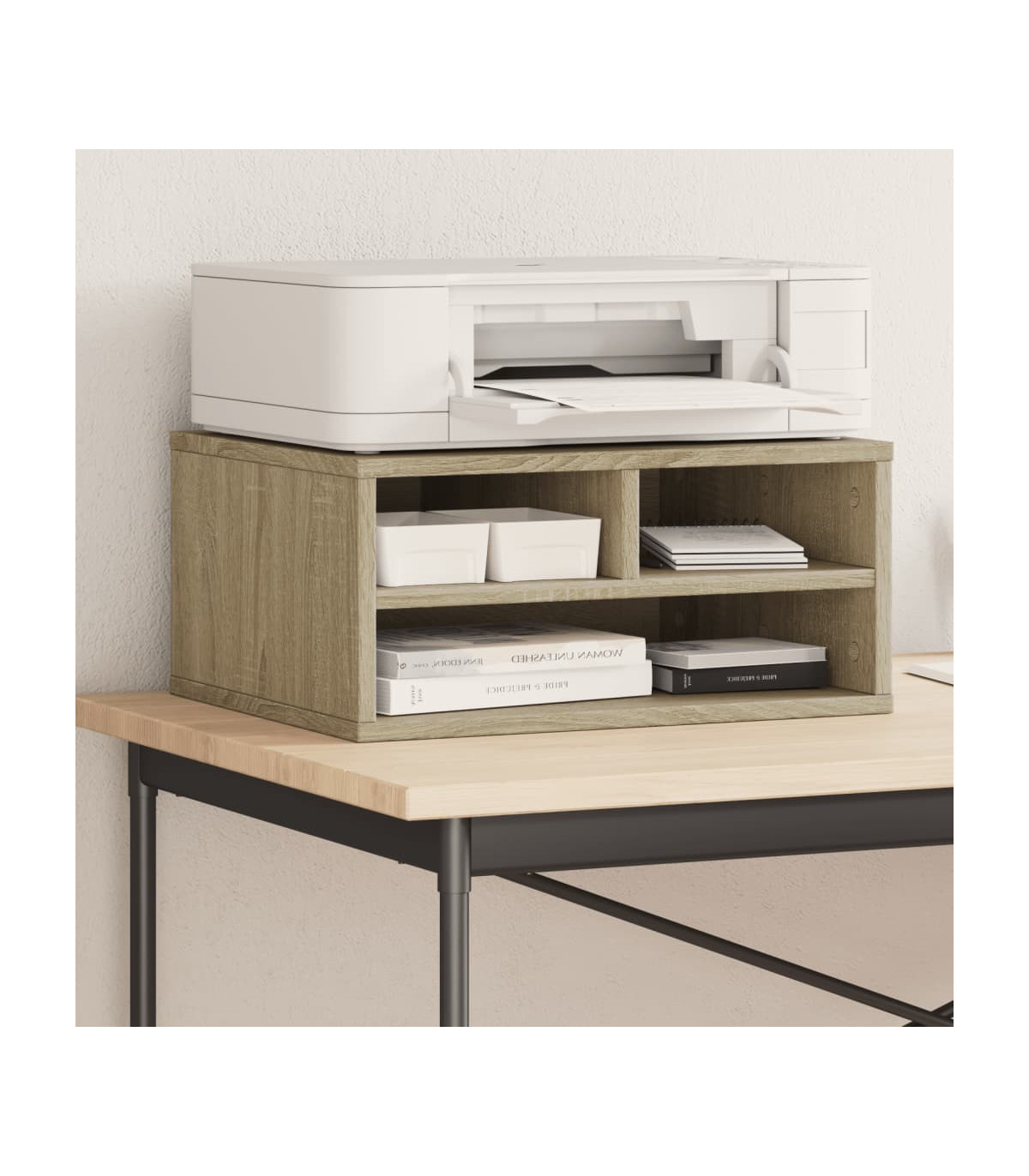 This printer stand provides easy access to everything, keeping your workplace organised and tidy. Durable material: The engineered wood is of exceptional quality with smooth surface and also features strength, stability and resistance to moisture.Ample storage space: The top shelf is designed for printers, and fax machines, with storage space underneath for files, paper, books, and other office supplies. Keep everything easily reached and make your workplace organised and tidy.Multifunctional organiser: The file organiser can be used not only as a printer stand but also as a bookshelf, nightstand, coffee stand, side table, etc. It can also be widely used in the kitchen to arrange condiment jars, kitchenware, plates, and dishes.