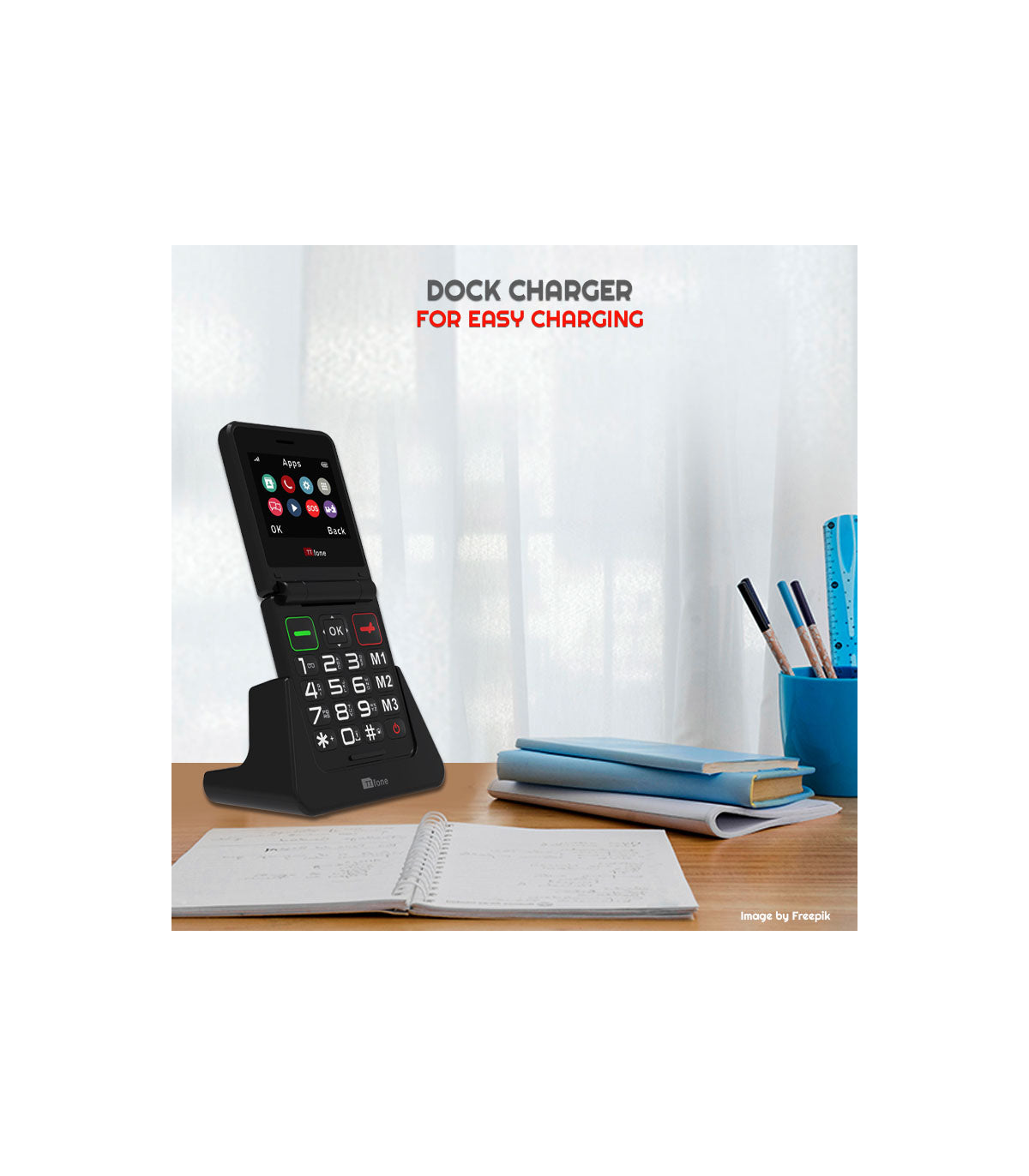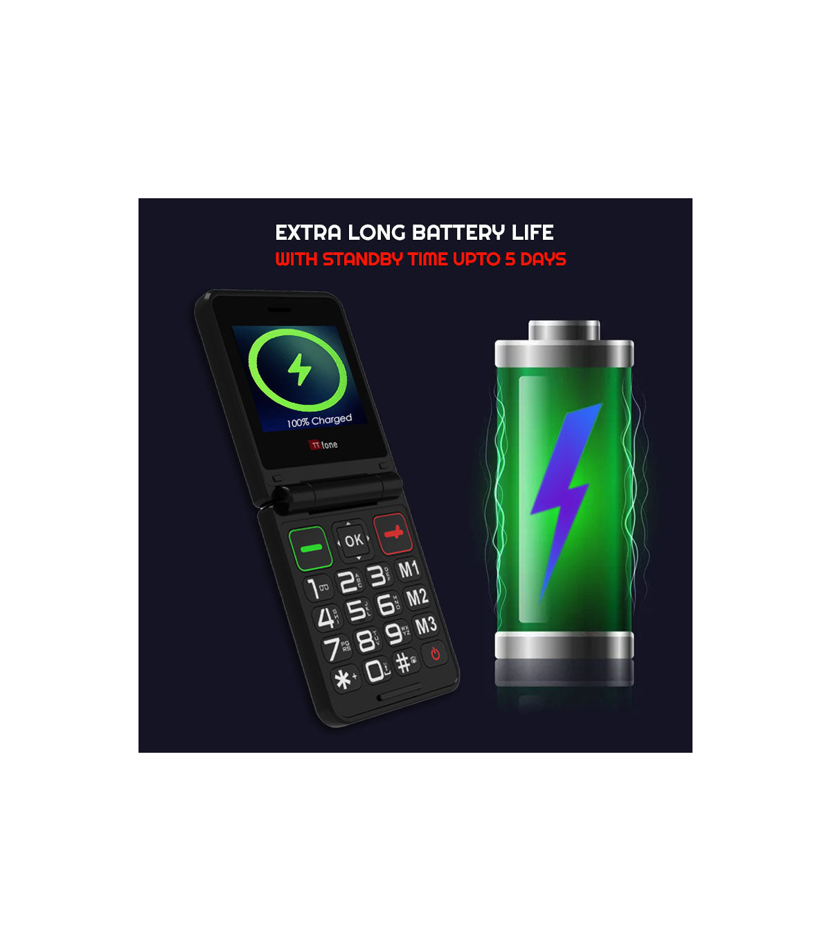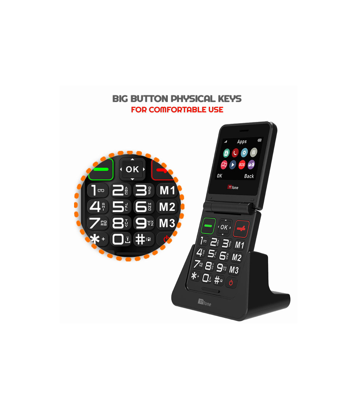 TTfone TT660 Mobile Phone for Seniors - Folding Design, Big Button Keypad, and Emergency Assistance, It comes with USB C Cable and O2 Pay As You Go SIM