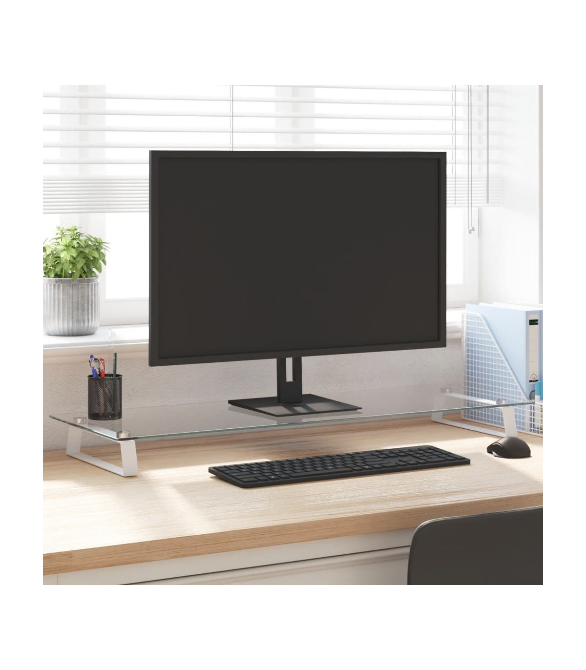 vidaXL Monitor Stand White 100x35x8 cm Tempered Glass and Metal