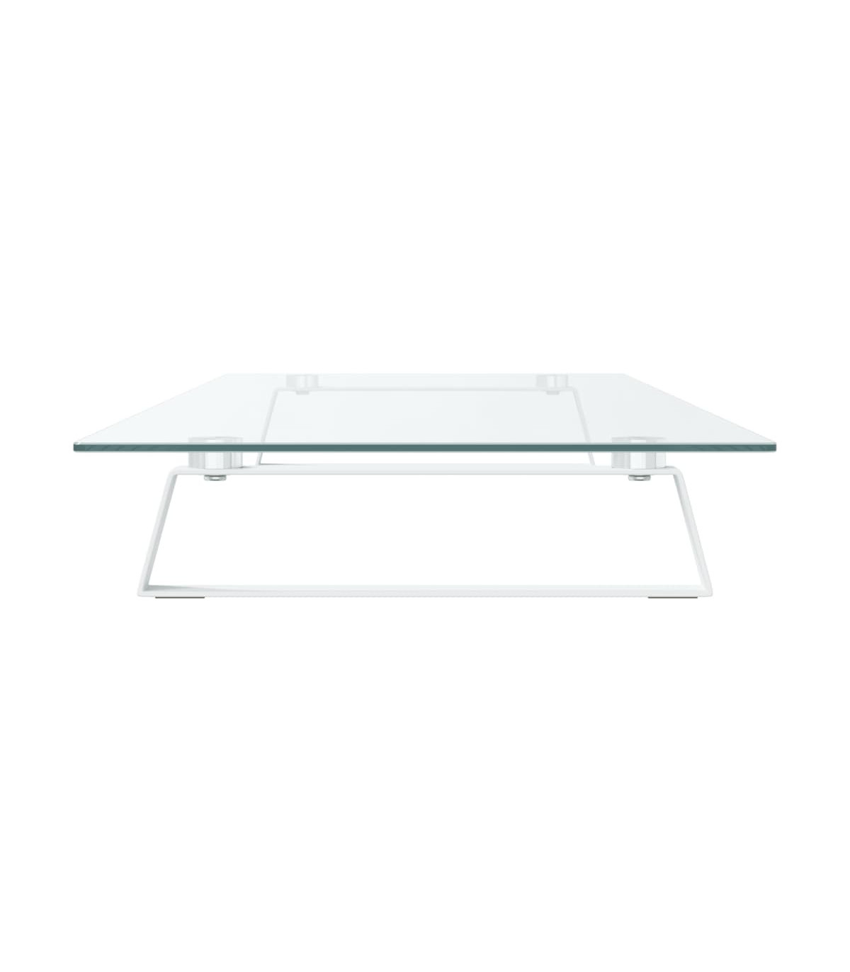 This practical monitor stand with a minimalist design will add a modern touch to your living space. Durable material: The computer stand is made of tempered glass and metal, making it exceedingly sturdy and stable.Ergonomic design: Raise your monitor up to eye level for a comfortable ergonomic viewing experience, relieving the strain on the neck, shoulder, and back.Additional storage: The storage space underneath this monitor riser can accommodate your keyboard, DVD player, gaming console, streaming device, receivers, media carriers, notebooks, pens, and similar items, which can better organise the desk to increase your efficiency.Rounded corner design: The smooth rounded corners allow you not to worry about being hurt by the screen stand during use.