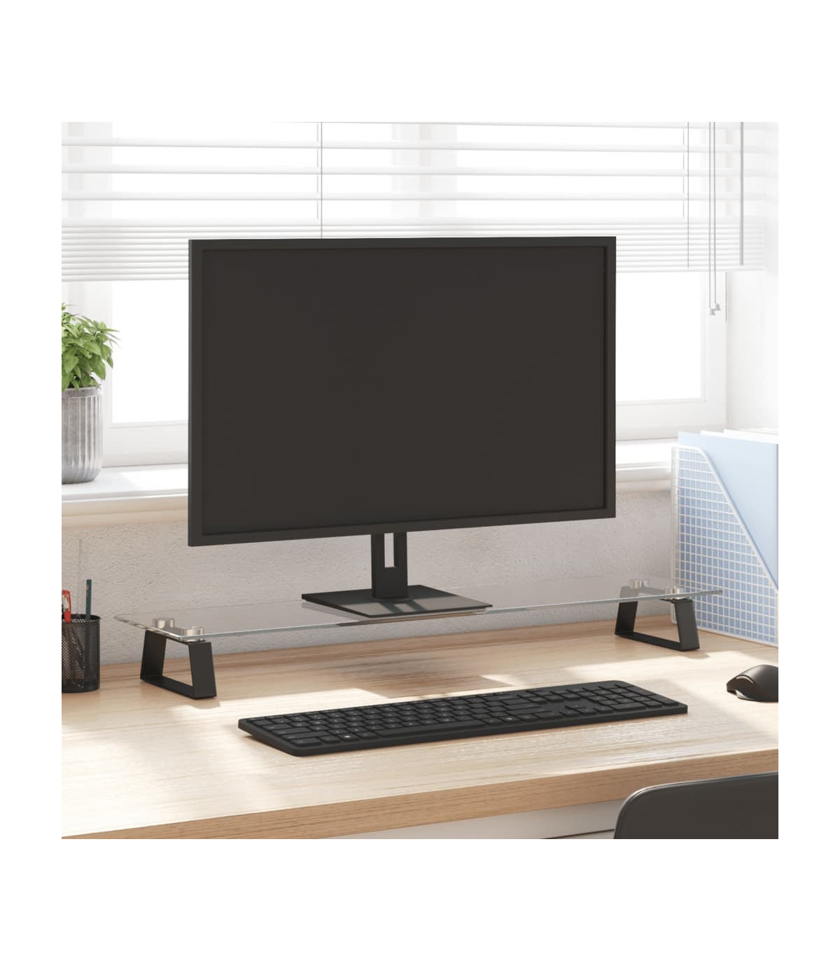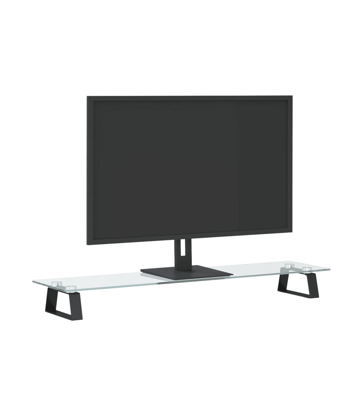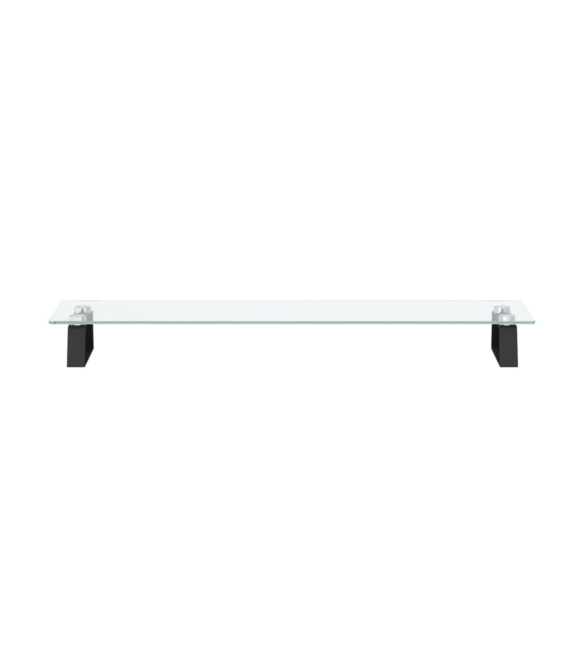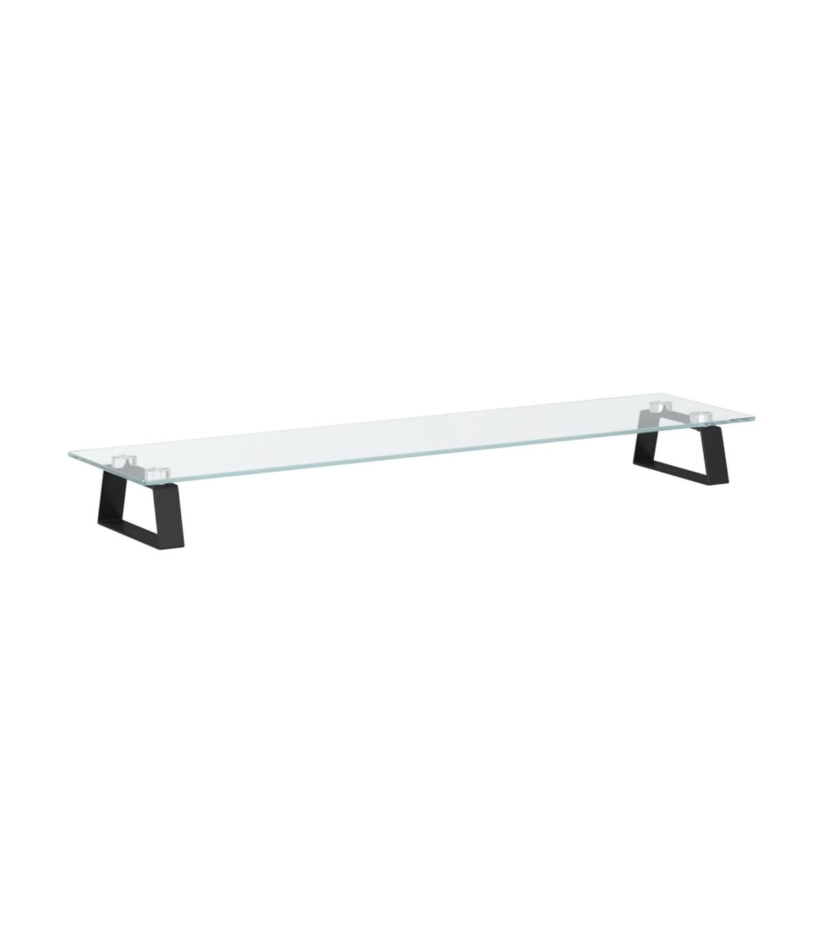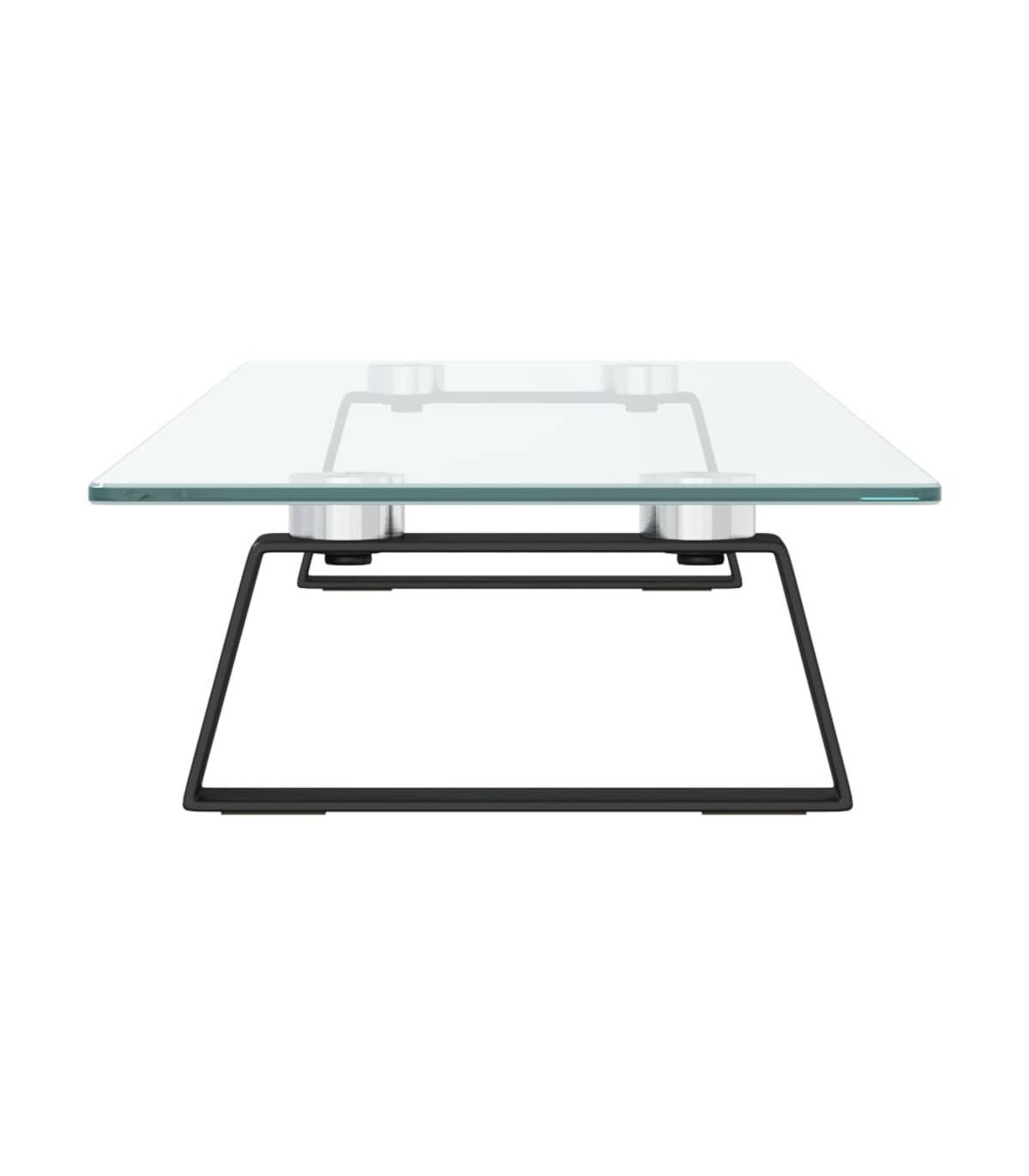 This practical monitor stand with a minimalist design will add a modern touch to your living space. Durable material: The computer stand is made of tempered glass and metal, making it exceedingly sturdy and stable.Ergonomic design: Raise your monitor up to eye level for a comfortable ergonomic viewing experience, relieving the strain on the neck, shoulder, and back.Additional storage: The storage space underneath this monitor riser can accommodate your keyboard, DVD player, gaming console, streaming device, receivers, media carriers, notebooks, pens, and similar items, which can better organise the desk to increase your efficiency.Rounded corner design: The smooth rounded corners allow you not to worry about being hurt by the screen stand during use.