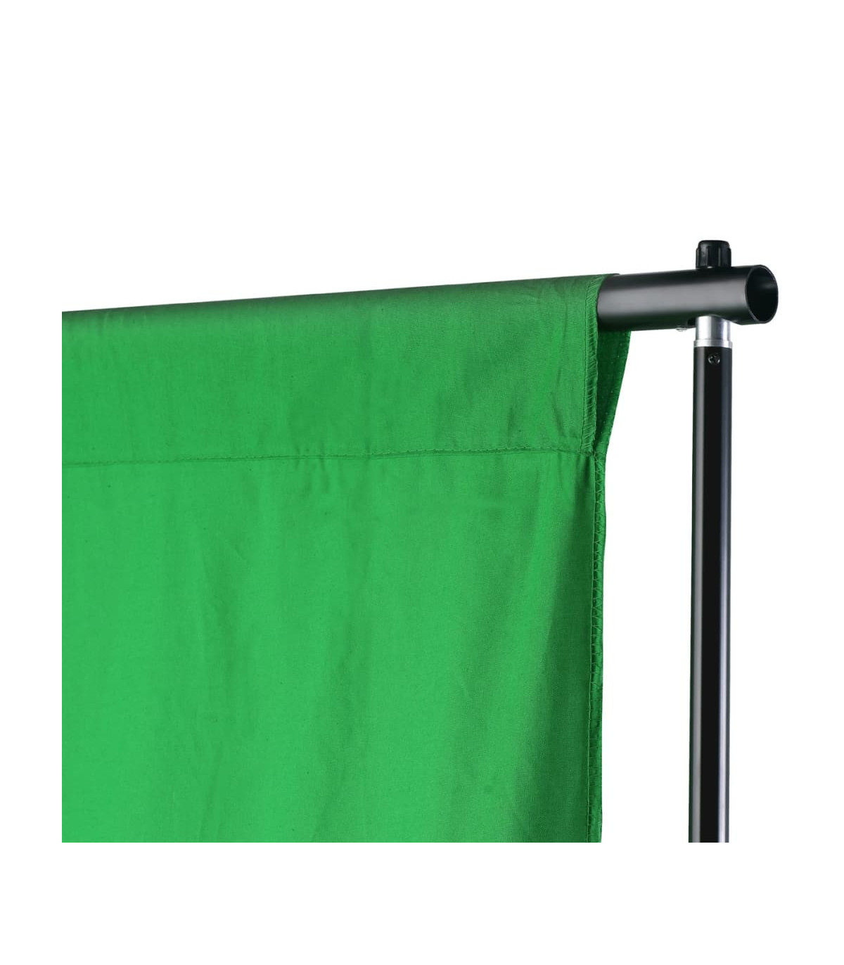 With this complete background system you can do whatever your imagination comes up with as a photographer, using it in the studio or on location. The lightweight system is easily and quickly built up and made of aluminium. One green cotton backdrop is included in this system giving you the option to use chroma-key. The system can also be used in combination with other backdrops and/or paper rolls. This flexible background system is suitable for portrait photography, commercial photography and table-top photography. The background has a maximum width of 300 cm and the height can vary between 75 to 210 cm. If you wish to use the system on location, this should not pose any problems. It is easily unassembled and assembled very quickly. Transportation is simple with the carrying bag of approximately 85 x 15 x 15 cm which is included in delivery. Chroma key: By filtering out the green colour of the background, you can project any picture or image you can imagine on your background. A known example of chroma key is the weather man who is actually standing in front of a green wall, while the charts and forecasts can be seen behind his back.
