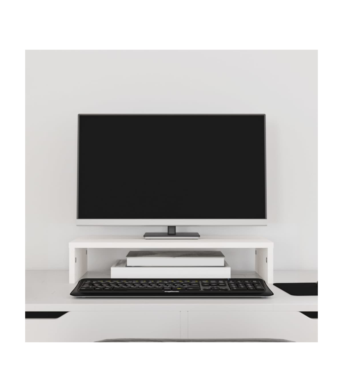This classic wooden monitor stand featuring a minimalist design adds a beautiful touch to your current living space. Solid pinewood: Solid pine wood is a beautiful natural material. Pine wood has a straight grain, and the knots give the material its signature, rustic look.Stable frame: The wooden frame of this computer stand ensures sturdiness and stability.Storage space: The space under the computer monitor stand can accommodate your keyboard, DVD player, gaming console, streaming device, receivers, media carriers, notebooks, pens, and similar items.Stress-reducing function: This keyboard stand can be used as a riser for your desktop monitor and other multimedia devices. Raising your screen will reduce the strain on your neck and back. Note:Each product comes with an assembly manual in the box for easy assembly.