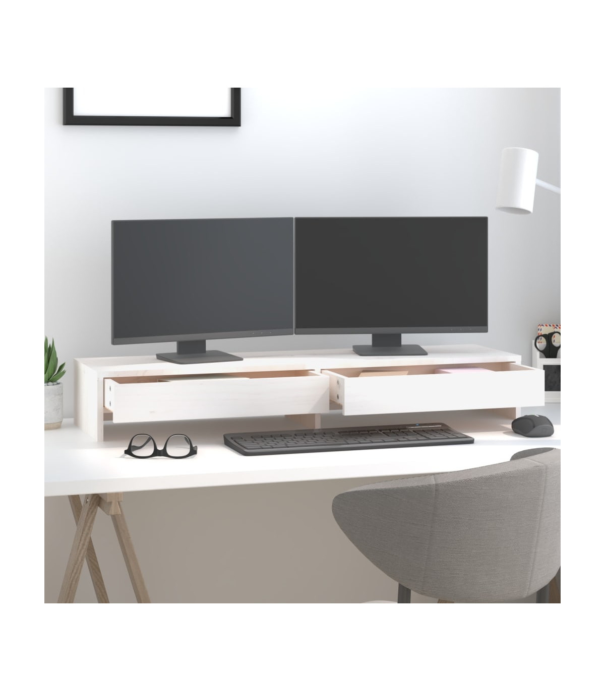 Monitor Stand White 100x27x15 cm Solid Wood Pine
