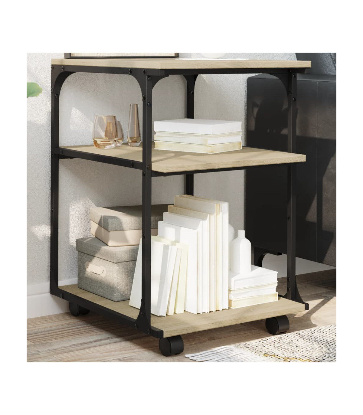 This 3-tier printer stand provides easy access to everything, keeping your workplace organised and tidy. Durable material: The engineered wood is of exceptional quality with smooth surface and also features strength, stability and resistance to moisture. The steel frame ensures sturdiness and stability. 3-tier printer stand: The top shelf is designed for printers, and fax machines, with storage space underneath for files, paper, books, and other office supplies. Keep everything easily reached and make your workplace organised and tidy. Easy to move: This printer table has 4 wheels and 2 of them are lockable, making it move flexibly and park stably at any time. Multifunctional organiser: The file organiser can be used not only as a printer stand but also as a bookshelf, nightstand, coffee stand, side table, etc. It can also be widely used in the kitchen to arrange condiment jars, kitchenware, plates, and dishes. Flexible installation: This computer printer stand can be used in two ways. You can place it on the floor with foot mats or attach the wheels for easy movement. Warning:To prevent it from tipping over, this product must be used with the provided wall attachment device.