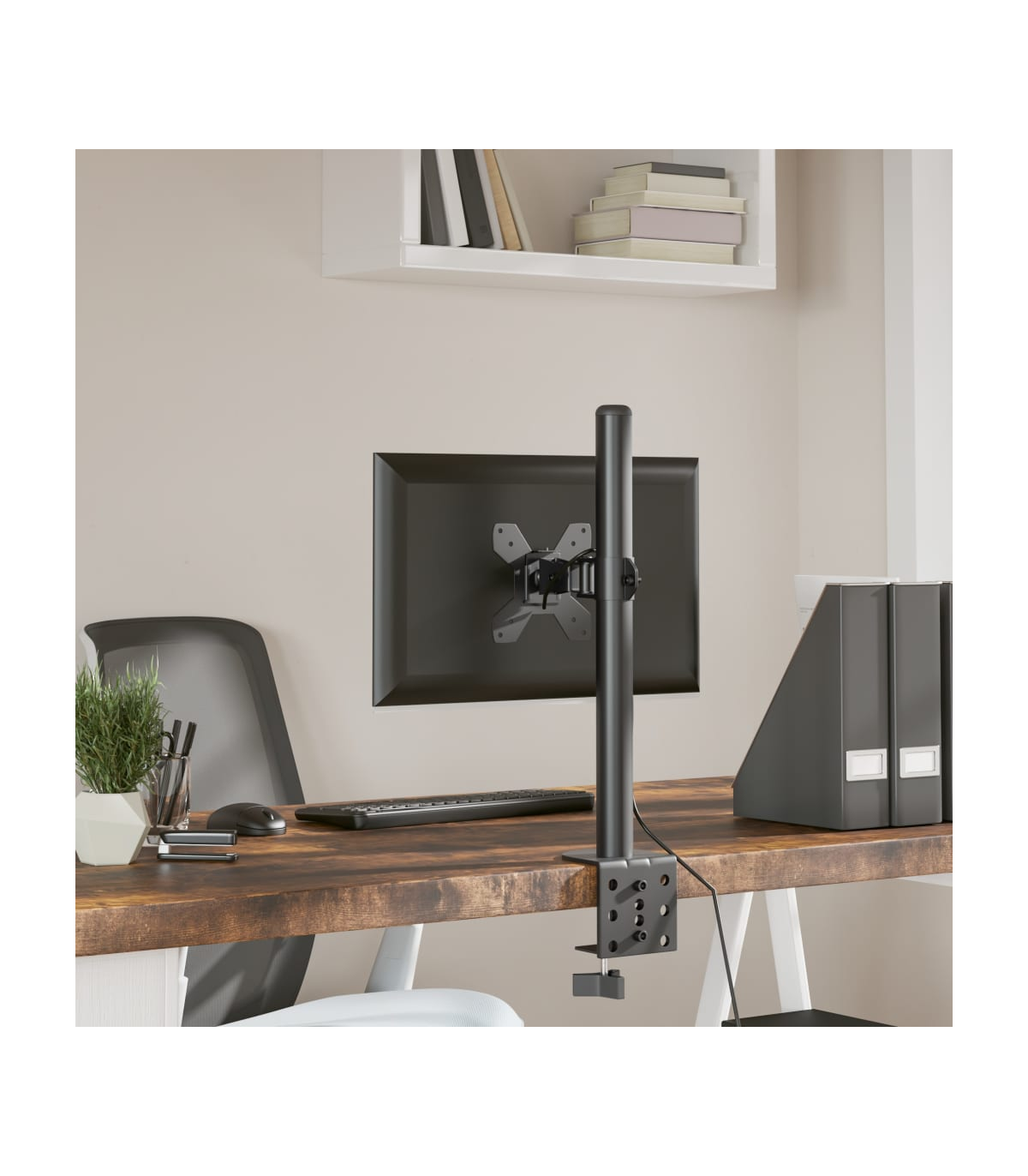 Have you ever complained about limited desktop space? Have you ever experienced neck and shoulder strain from sitting for long periods of time? Then this adjustable monitor mount is your best choice! Adjustable in many ways: This monitor stand can tilt up or down by 15°, swivel left or right by 45°, and rotate 360°. You can also adjust its height for the best viewing. Two install options: This monitor desk mount can be installed in two different ways, using a C-clamp or grommet mount. It works for desks that are between 10 mm and 88 mm thick. You can pick the way you prefer to install it and free up your desk space. Cable organiser: The monitor holder has a hidden clip to organise cables and a storage slot for Allen keys, helping to keep your desk neat and tidy. Easy installation: This monitor stand for desk comes complete with instructions and all the fixtures and fittings needed for easy installation. Sturdy material: Steel is an exceptionally hard and strong material. It offers sturdiness and stability. Constructed from steel, this vesa monitor stand is sturdy for years of use!