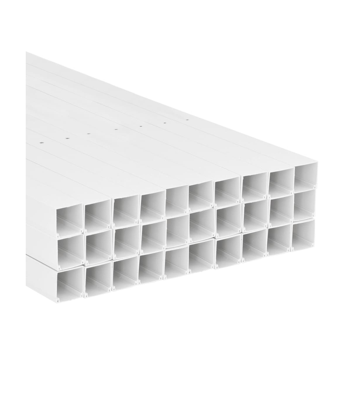 The cable trunking design to hide and protect cables makes your home and office look greatly organised and safe. Durable and safety: The cable cover is made of PVC, making it durable and hard to break. Additionally, it can protect your family by safely concealing your cables and allowing you to use them for a long time. Cuttable and paintable: The cable management features a slim design, allowing you to paint it any colour to match your room. You can easily customise its size by cutting it to your desired length. Easy to use: Our white cable cover includes 30 cable channels, providing flexibility to accommodate any home or office. Multiple applications: The cable protectors have holes in the back to screw them onto the wall, floor, or ceiling. It is suitable for hiding small cords, such as phone cables, speaker wires, and camera wires.