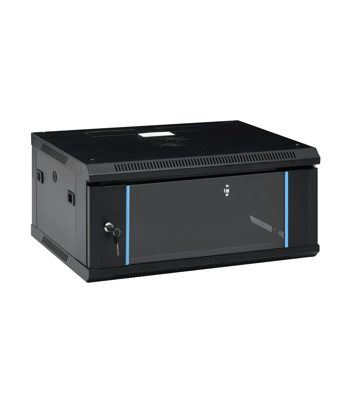 This 4U network cabinet is specially designed for placing network accessories in order, such as a router or fibre optic modem. This data cabinet, featuring a solid structure, is made of premium cold-rolled steel, making it strong and durable to use. It is compatible with 19" standard equipment. The removable side panels make it easy for the installation and maintenance of network accessories. Thanks to the included lock and key, the lockable front door prevents unwanted opening and keeps the items safe. You can either attach the cabinet to the wall or put it on the table. Please note: The cooling fan is not included.
