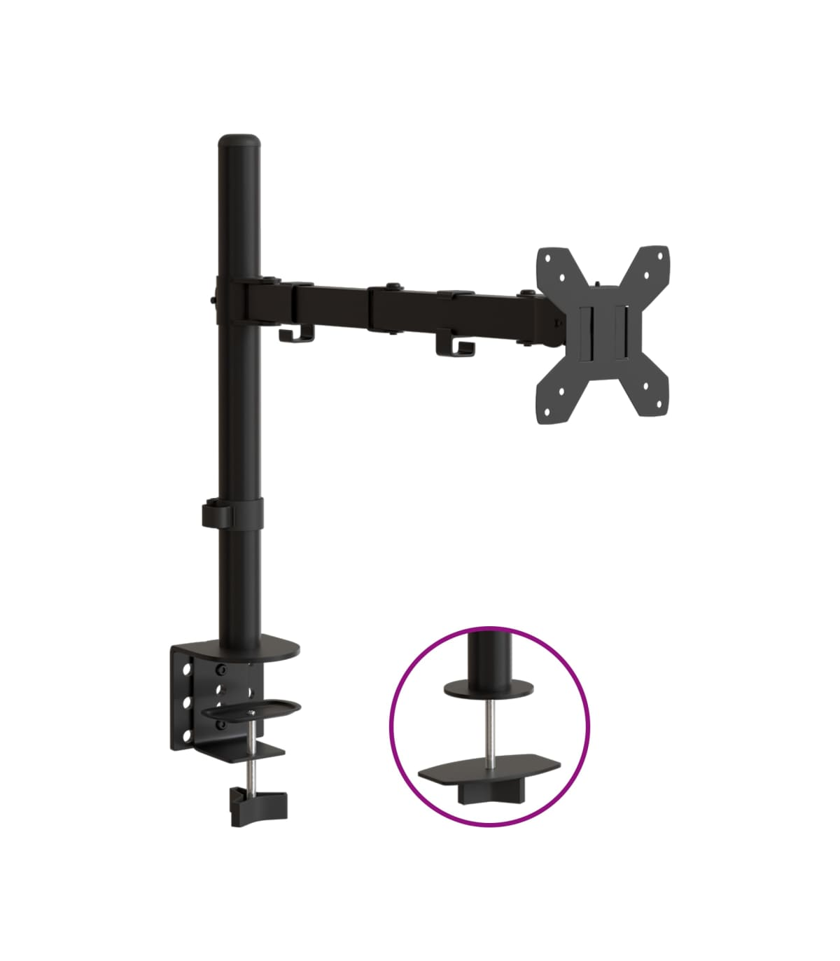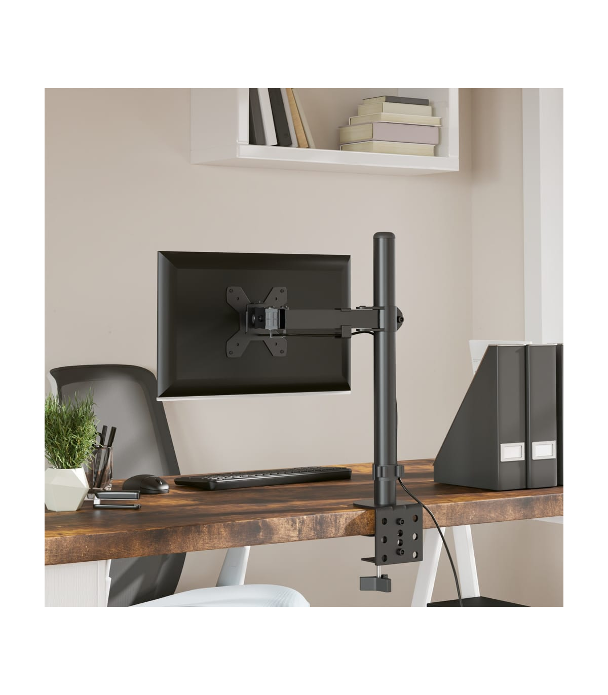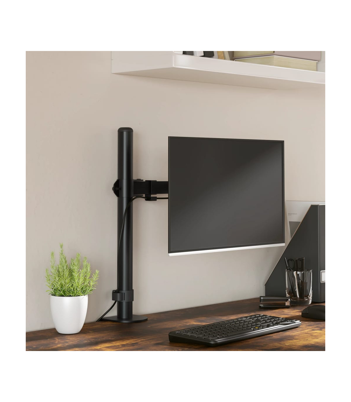 Have you ever complained about limited desktop space? Have you ever experienced neck and shoulder strain from sitting for long periods of time? Then this adjustable monitor mount is your best choice! Adjustable in many ways: This monitor stand can tilt up or down by 15°, swivel left or right by 45°, and rotate 360°. You can also adjust its height for the best viewing. Two install options: This monitor desk mount can be installed in two different ways, using a C-clamp or grommet mount. It works for desks that are between 10 mm and 88 mm thick. You can pick the way you prefer to install it and free up your desk space. Cable organiser: The monitor holder has a hidden clip to organise cables and a storage slot for Allen keys, helping to keep your desk neat and tidy. Easy installation: This monitor stand for desk comes complete with instructions and all the fixtures and fittings needed for easy installation. Sturdy material: Steel is an exceptionally hard and strong material. It offers sturdiness and stability. Constructed from steel, this vesa monitor stand is sturdy for years of use!
